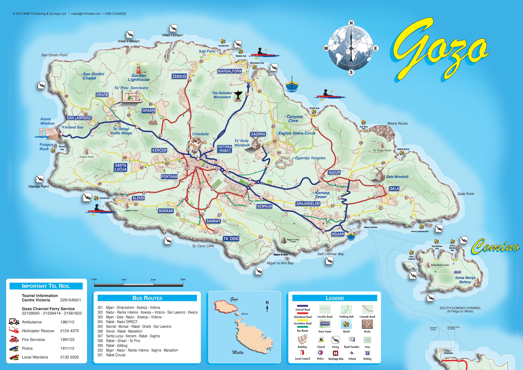 Getting to Gozo: From Valletta to Cirkewwa take a bus 41 or 42 (schedule). Here is the schedule of the ferry between the islands. Bus schedule on the island of Gozo is here.
