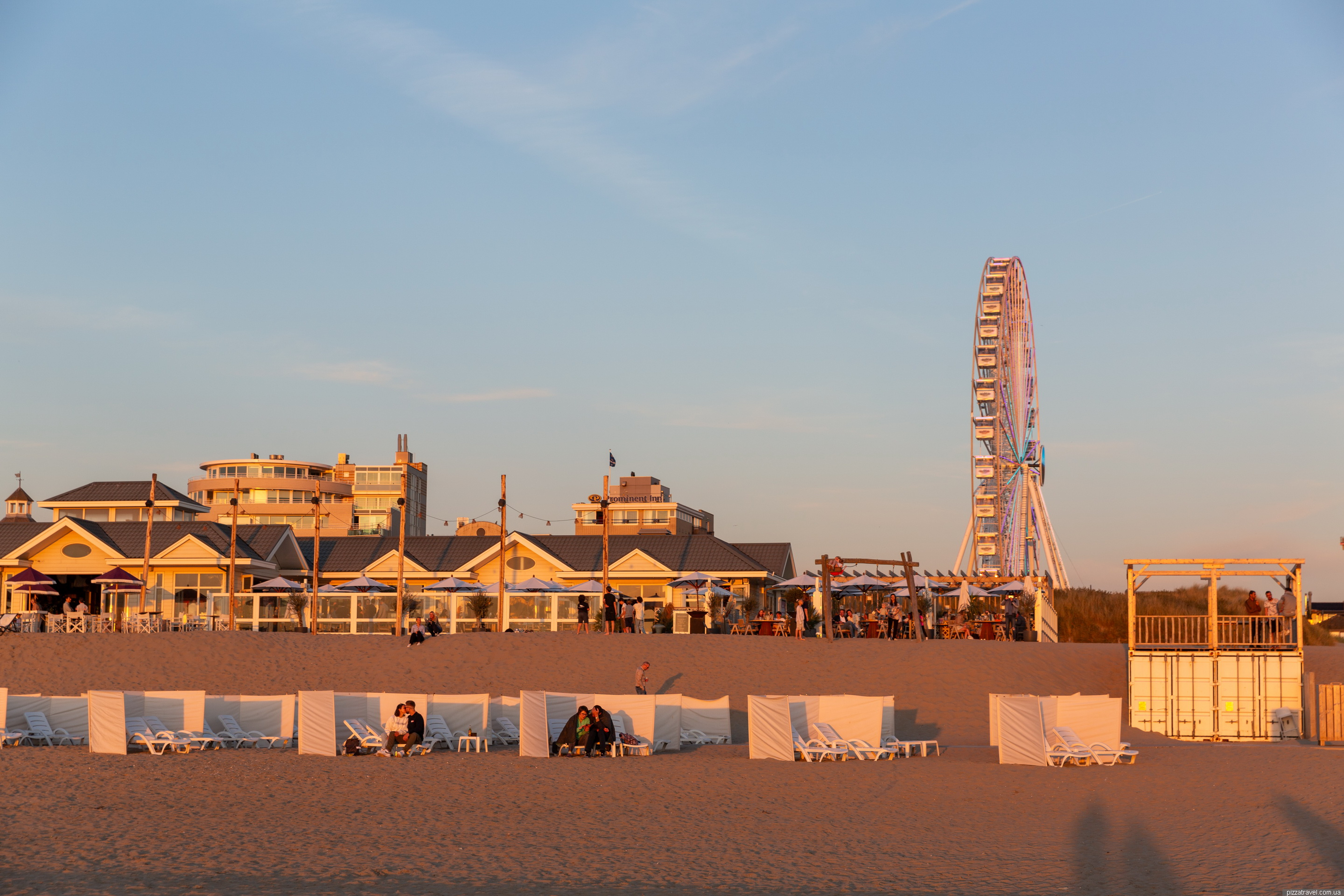 A beach in the Netherlands, well suited for sunsets. The total length of the beach is 13 km and it is quite wide. There is a promenade, restaurants, clubs, shops, showers and toilets. We stopped by because we saw the Ferris wheel, which is located right next to the car park.