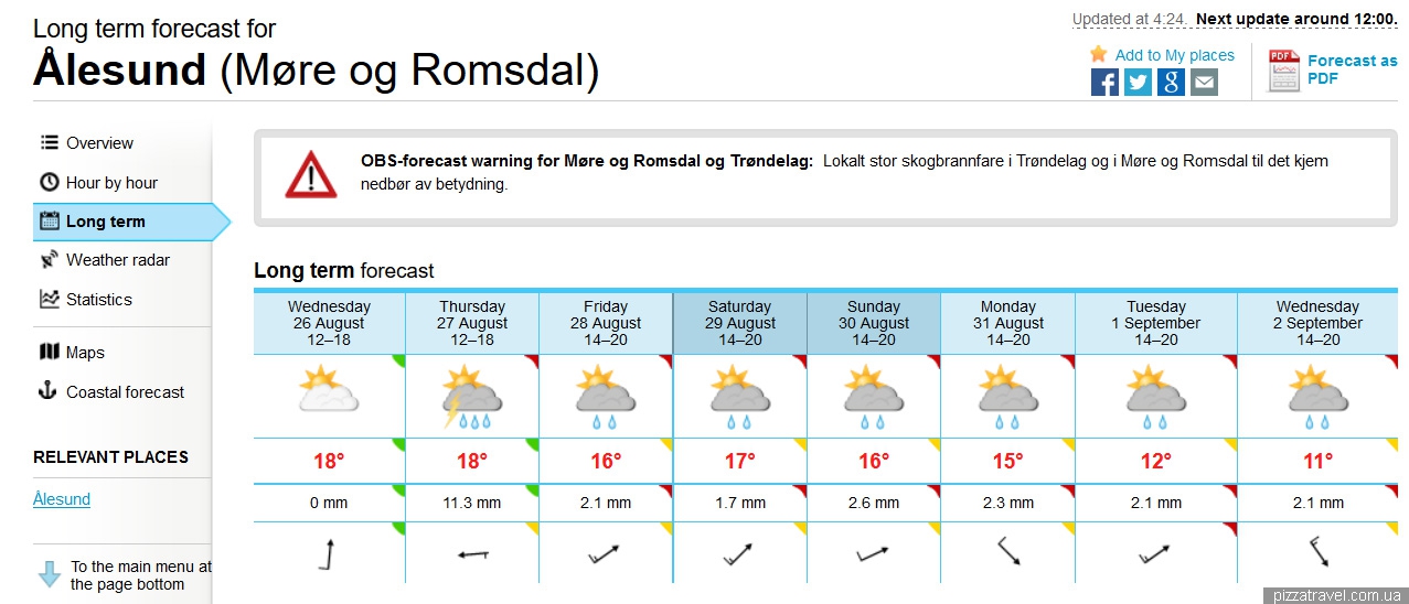 We have to admit that weather in Alesund is not so nice always. We were there on 22-24 August and here is the weather for the next days.
