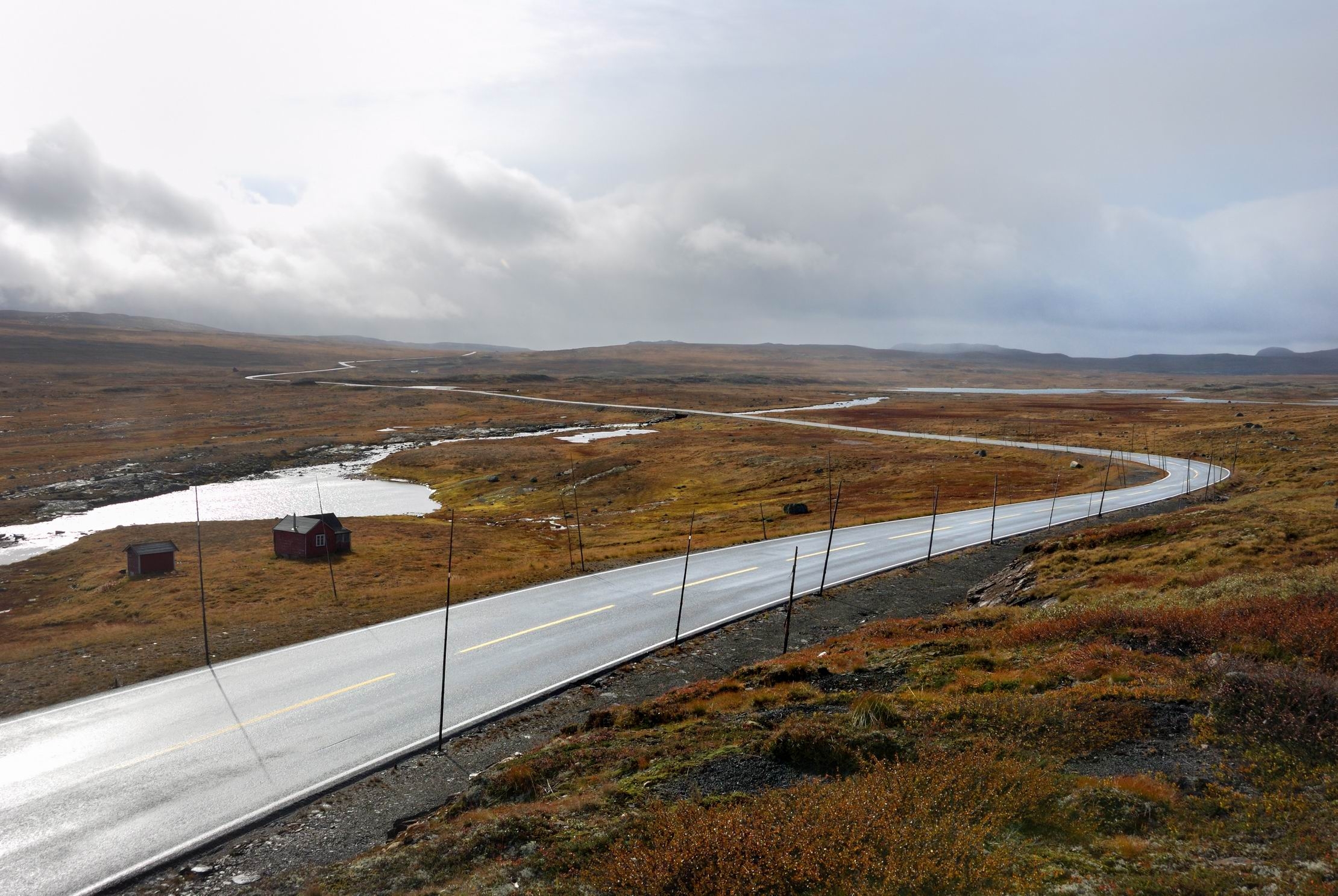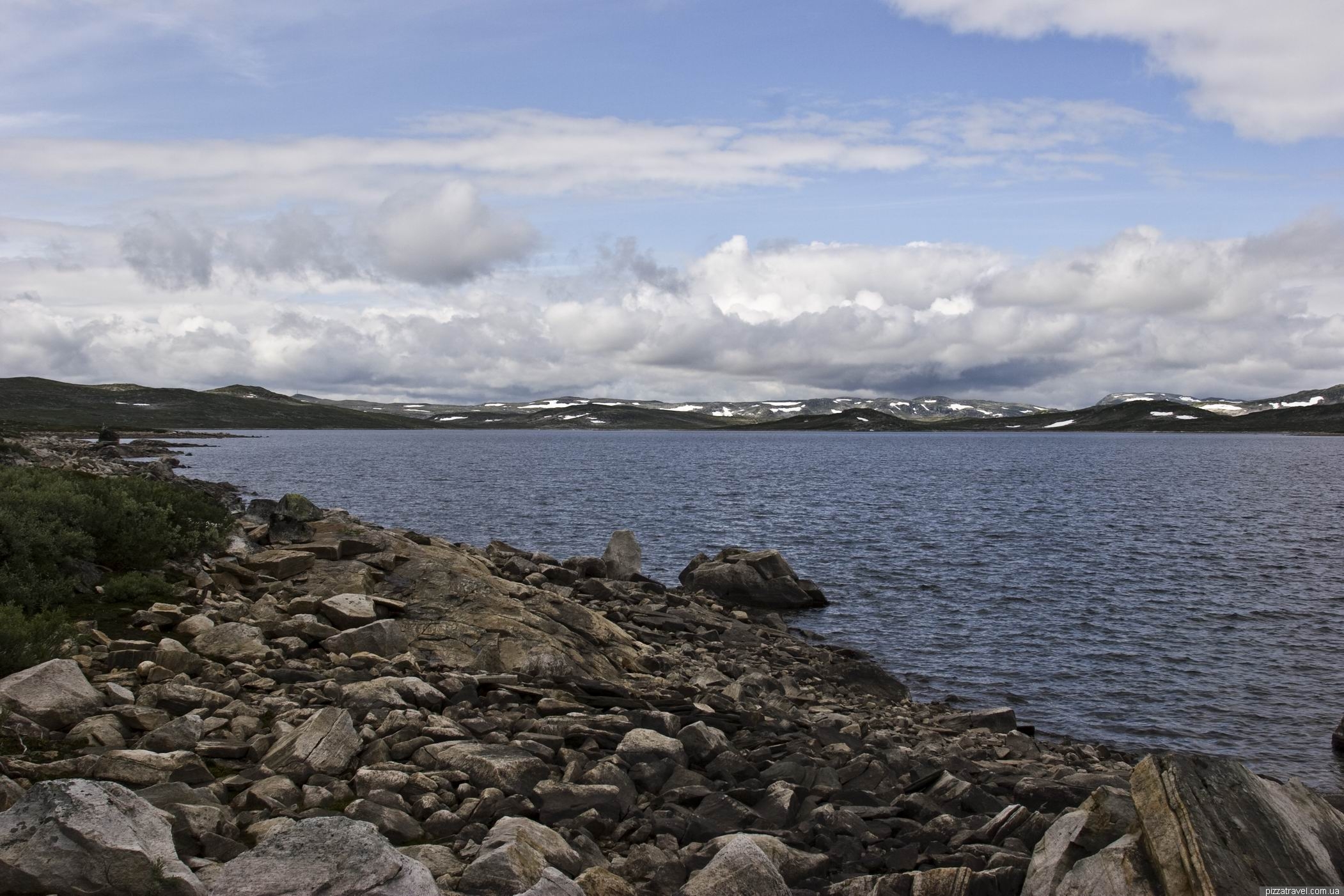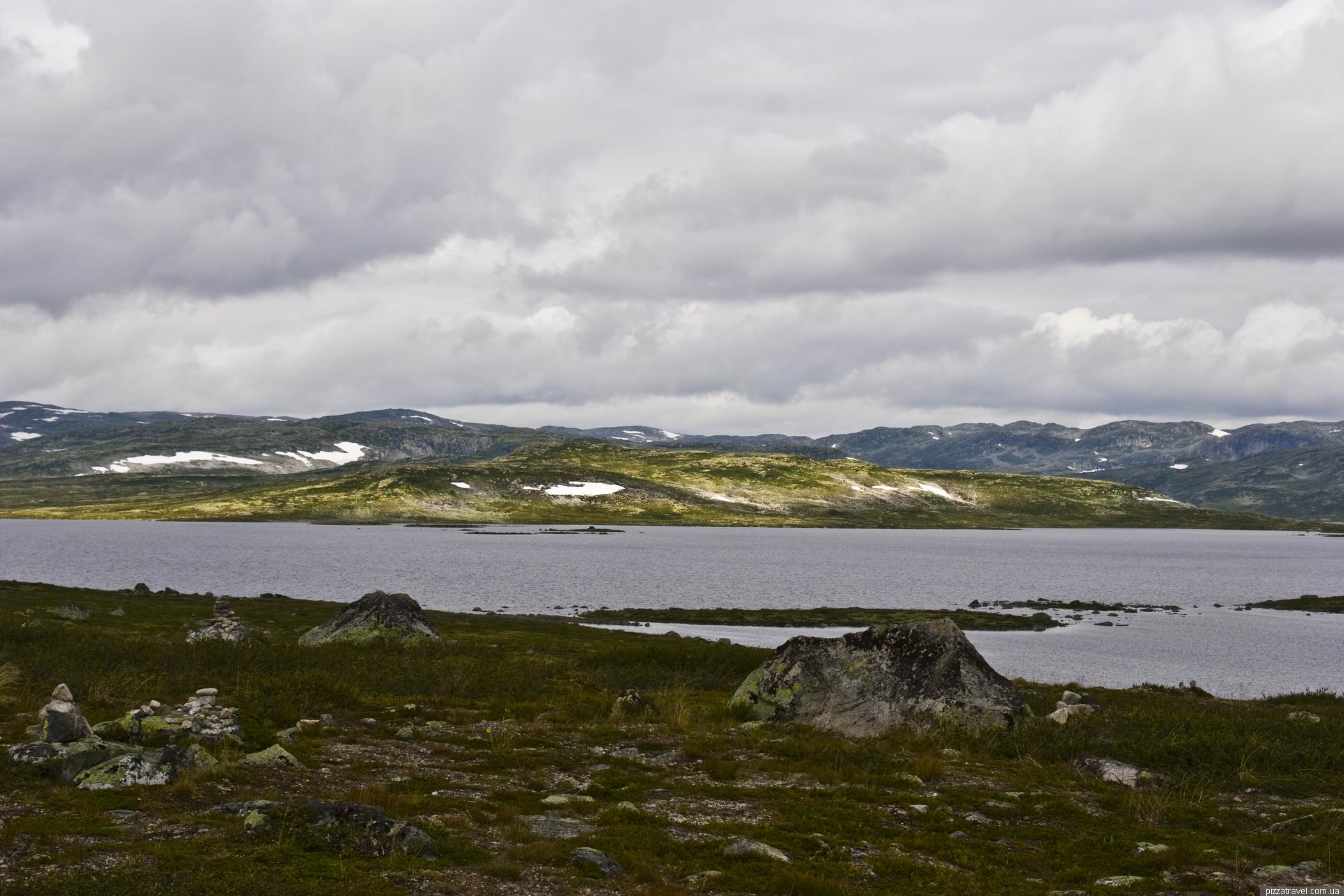 Hardangervidda is the largest mountain plateau in Europe, which is located at an altitude of 1,200 to 1,600 meters. Its alpine climate ensures the presence of many species of arctic animals and plants further south than anywhere else in Europe. Its wild reindeer herds are among the largest in the world. Although we didn't see them from the road.
