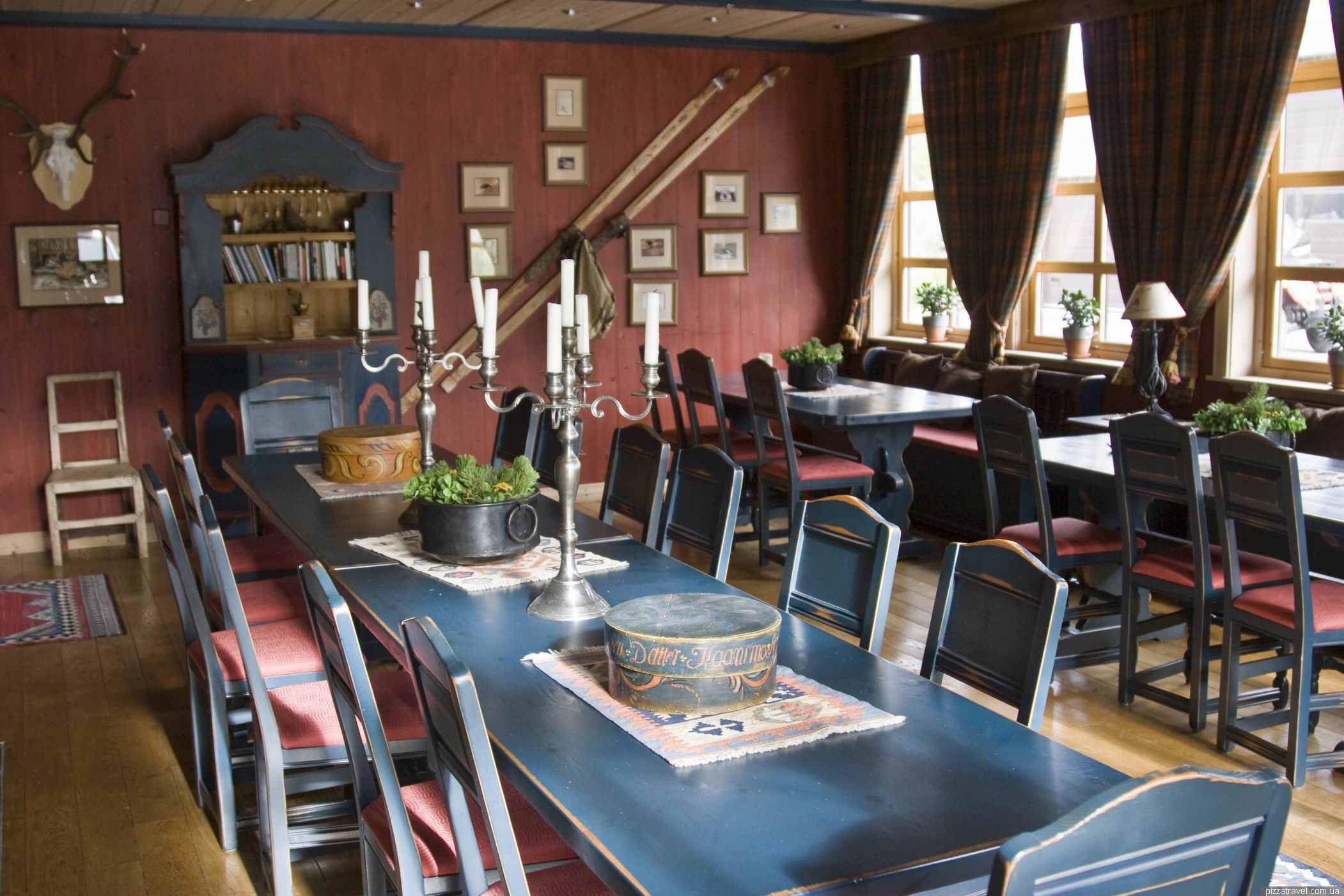 Imagine that you are driving on a lonely road in the mountains, at an altitude of about 1 km above sea level and around the extremely harsh terrain, but near one of the lakes stands a lone hotel (booking.com). The first building on this site was erected in 1870 during the construction of the road from Skjåk to Stryn and Geiranger. When the road was completed, Grotli became a transit point on the crossroads between the east and west of the country, with post office, telephone and bus station. The hotel was built in 1903-1905. For over a hundred years it's been managed by representatives of one family. Inside there are beautiful interiors and, curiously, free WiFi. Where do they get Internet in such places ? :)