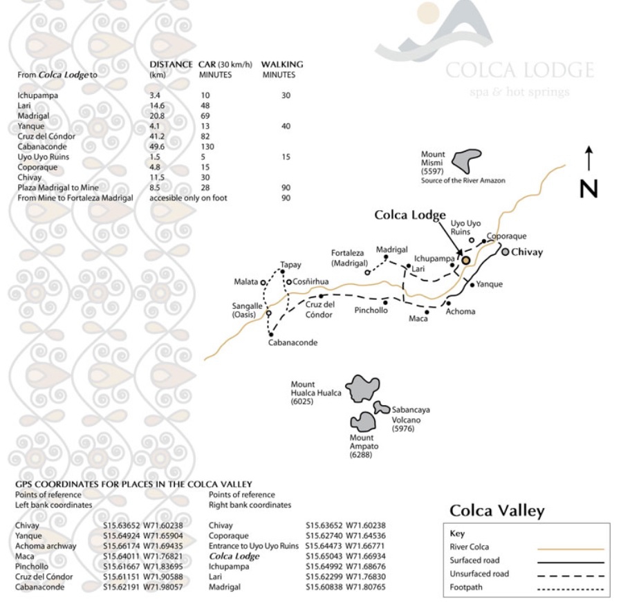 /Getting there: The last 3 kilometers from the village of Yanque to the hotel is unpaved road, public transportation does not go there. Of course, it is better to go by car, but you can use 4M-Express bus Arequipa - Chivay (http://www.4m-express.com) and then take a taxi to the hotel. These buses run from Arequipa, Puno and Cusco. There are 4-5 bus companies that have buses from Arequipa to Chivay, but you need to visit a bus station for information.