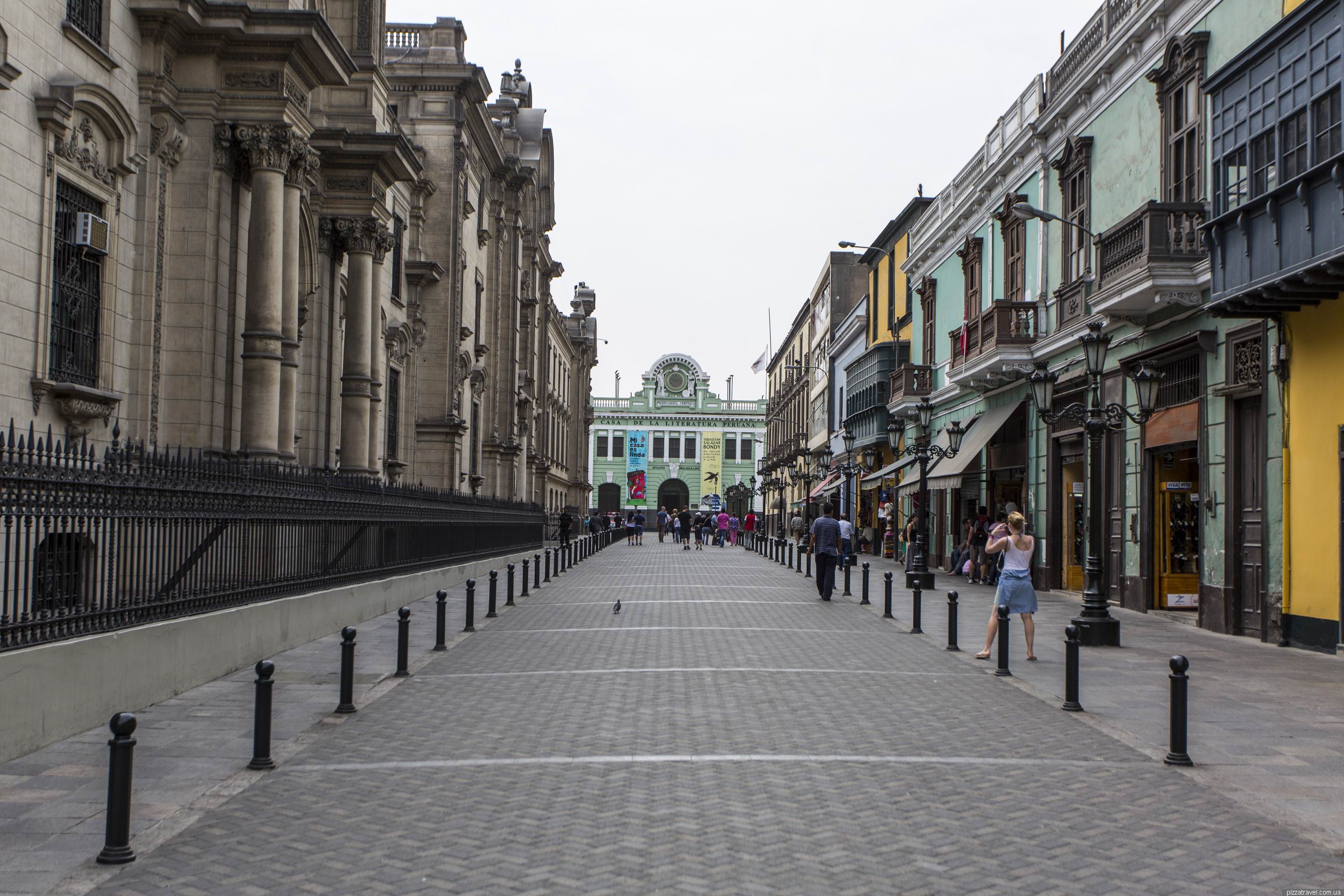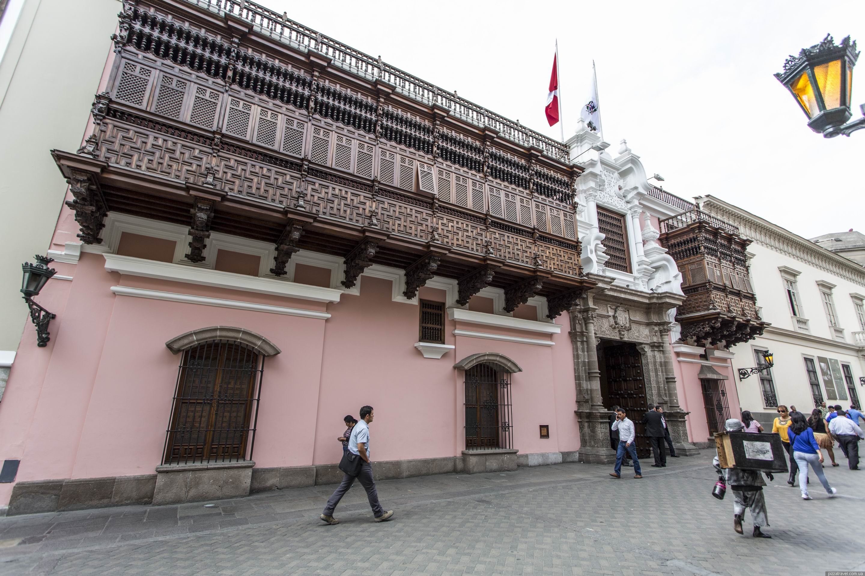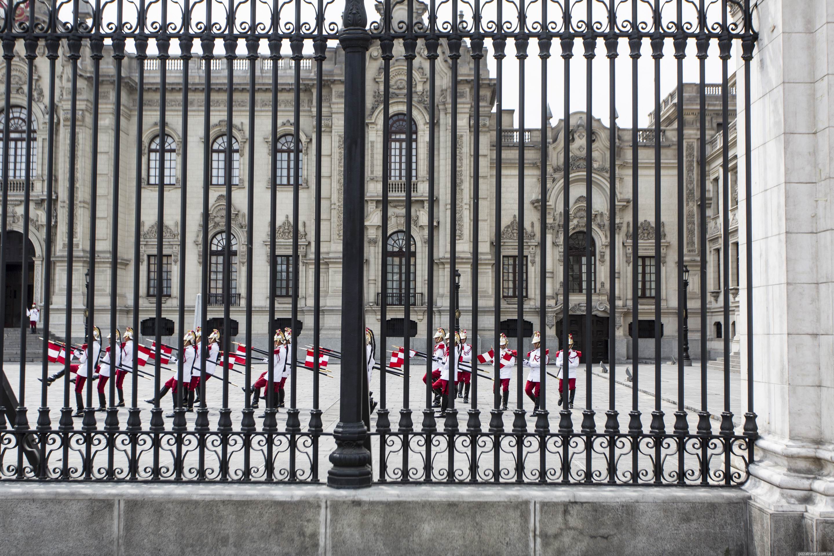 It is located around the central square Plaza de Armas (Plaza Mayor). If you come there at 12, you can see the changing of the guard near the palace of the government, but only from behind the fence.