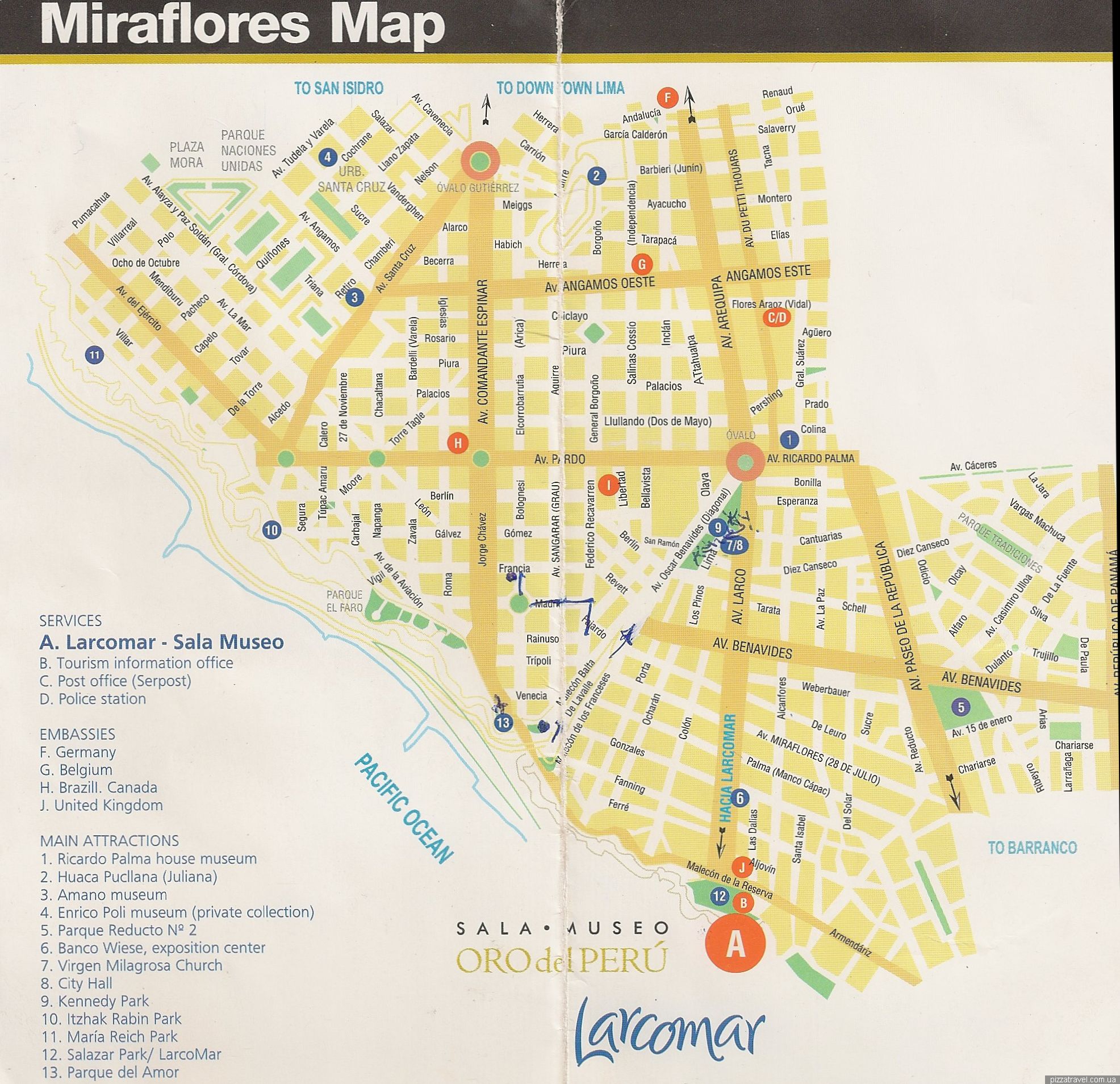 You can start your walk around Miraflores from the shopping center Larcomar. Move along the coast to the north.