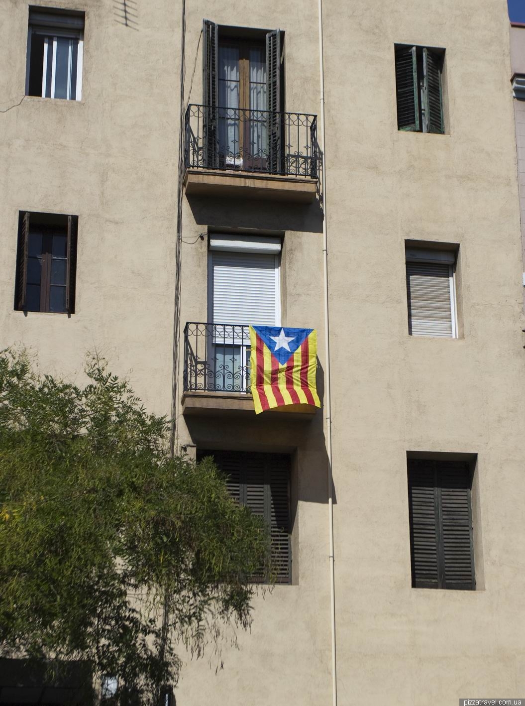 Catalonia currently (Sep 2014) is trying to hold a referendum about independence. That's why many windows have flags of Catalonia.
