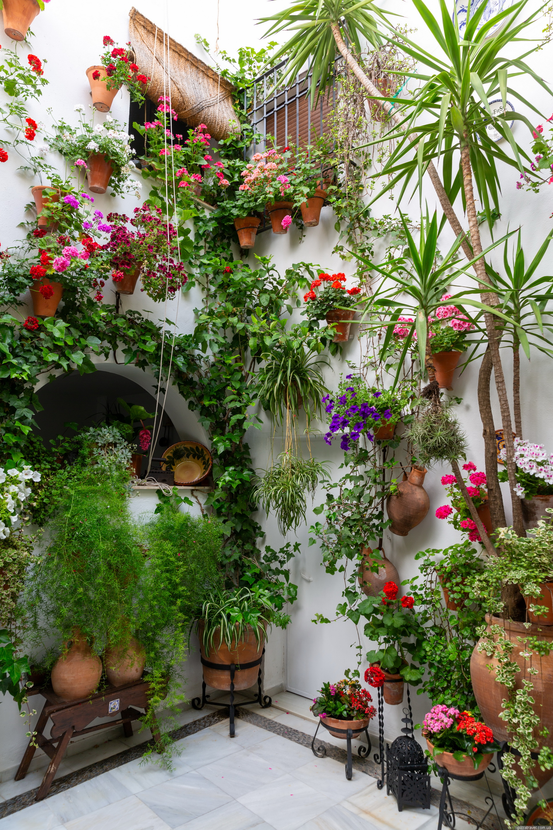 In May, the city hosts the Córdoba Patio Festival, when you can visit dozens of colourfully decorated courtyards. Look for information on the internet, for example here https://patios.cordoba.es/mapa/concurso. We weren't there in May, but we saw a couple of courtyards. If you walk around the city, you will find them. You can also book a tour of the courtyards (37.876920, -4.783500).