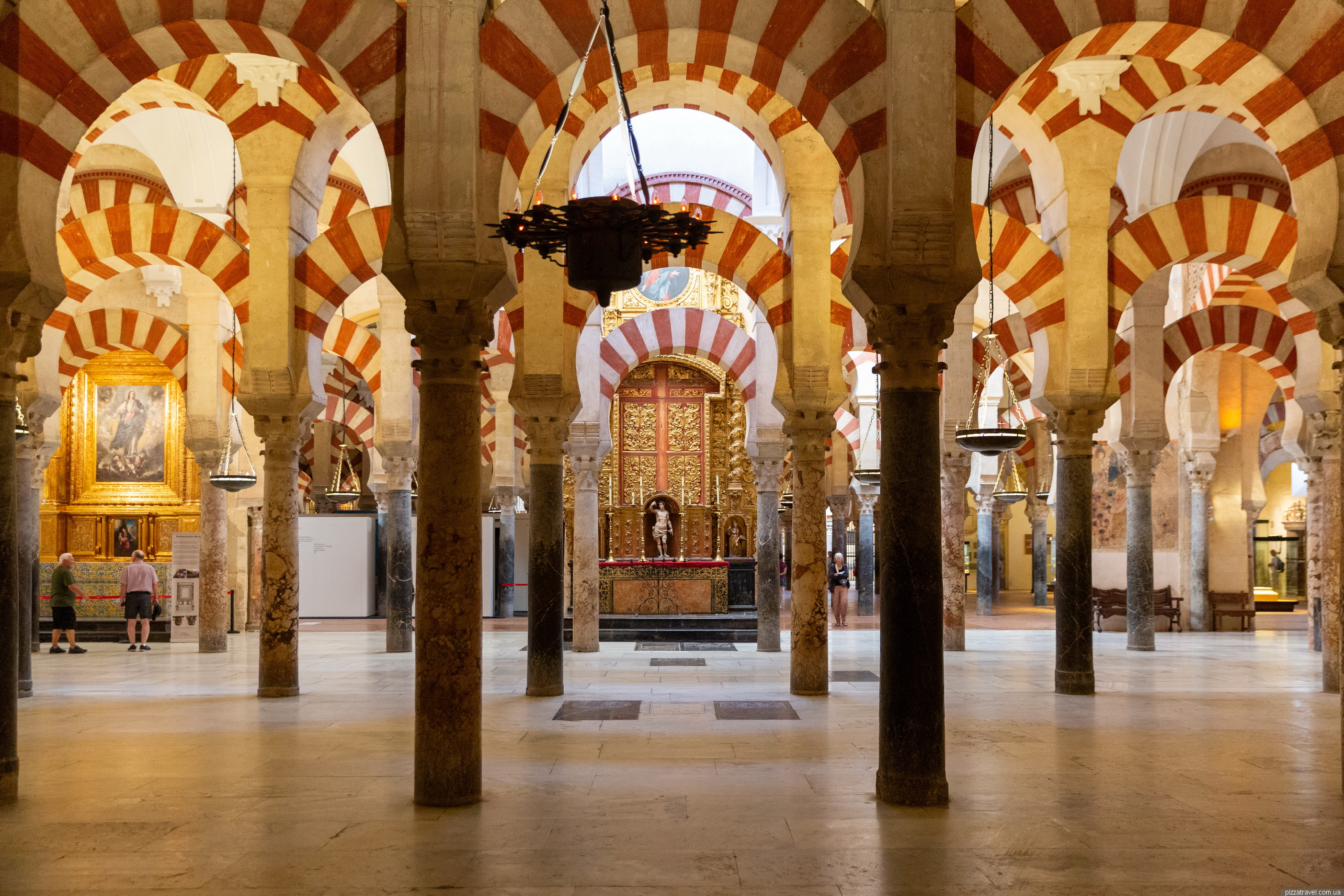 The third symbol of the city is the Mezquita-Catedral de Córdoba, a huge mosque dating from the 8th to 10th centuries. There are many mosques around the world, so what is so unusual about this one? Construction began in 785, and by 1000, the mosque had become one of the largest in the Islamic world. After the Reconquista, in the 16th century, Gothic, Renaissance and Baroque naves were built inside the mosque, forming the core of the Christian cathedral. It is truly remarkable and difficult to describe. It is best seen from the bell tower, which you can climb for a small fee, but tickets must be purchased in advance online. The lower part of the bell tower was built by the Moors, while the upper part is Christian.