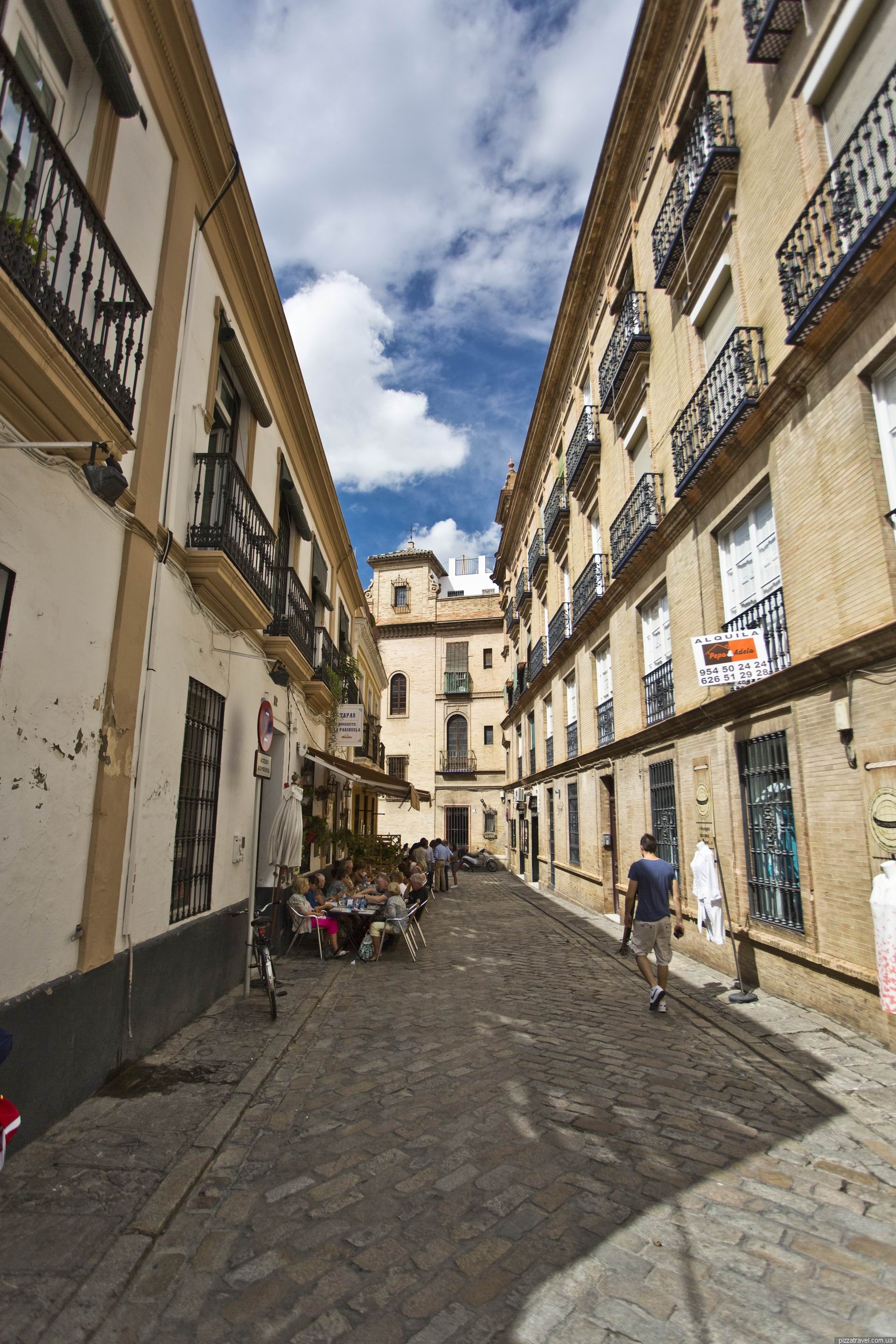 Sevilla is a nice and beautiful city. The most interesting in Spain after Barcelona. One of those cities where one day is not enough for a city tour. Old town of Seville is just huge, I can not imagine how not to get lost there. We lived in this yard.