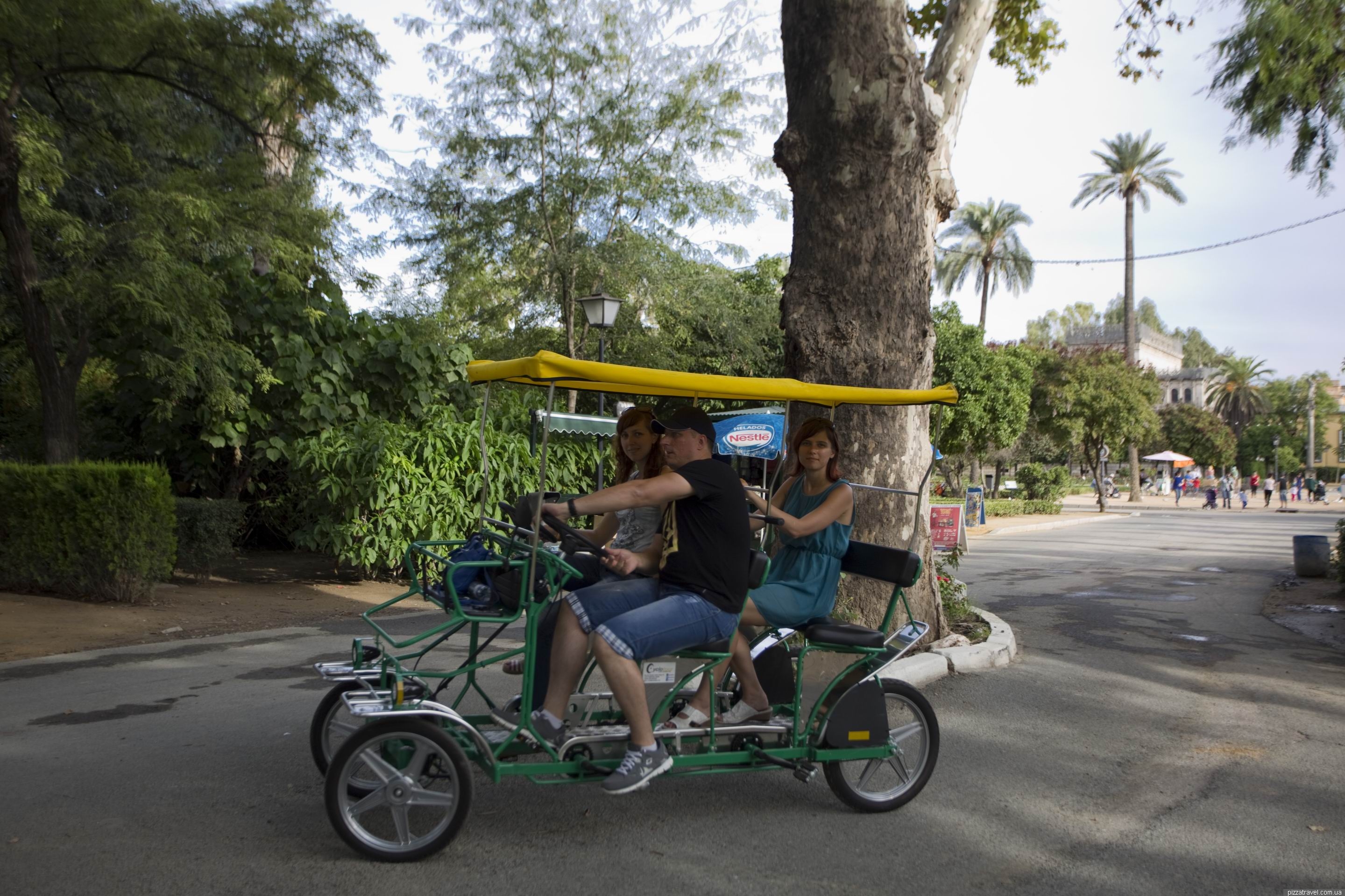Opposite the Plaza de España is a fairly large park of Maria Luisa, which also appeared in 1929. Here we rented a four-wheel bike.