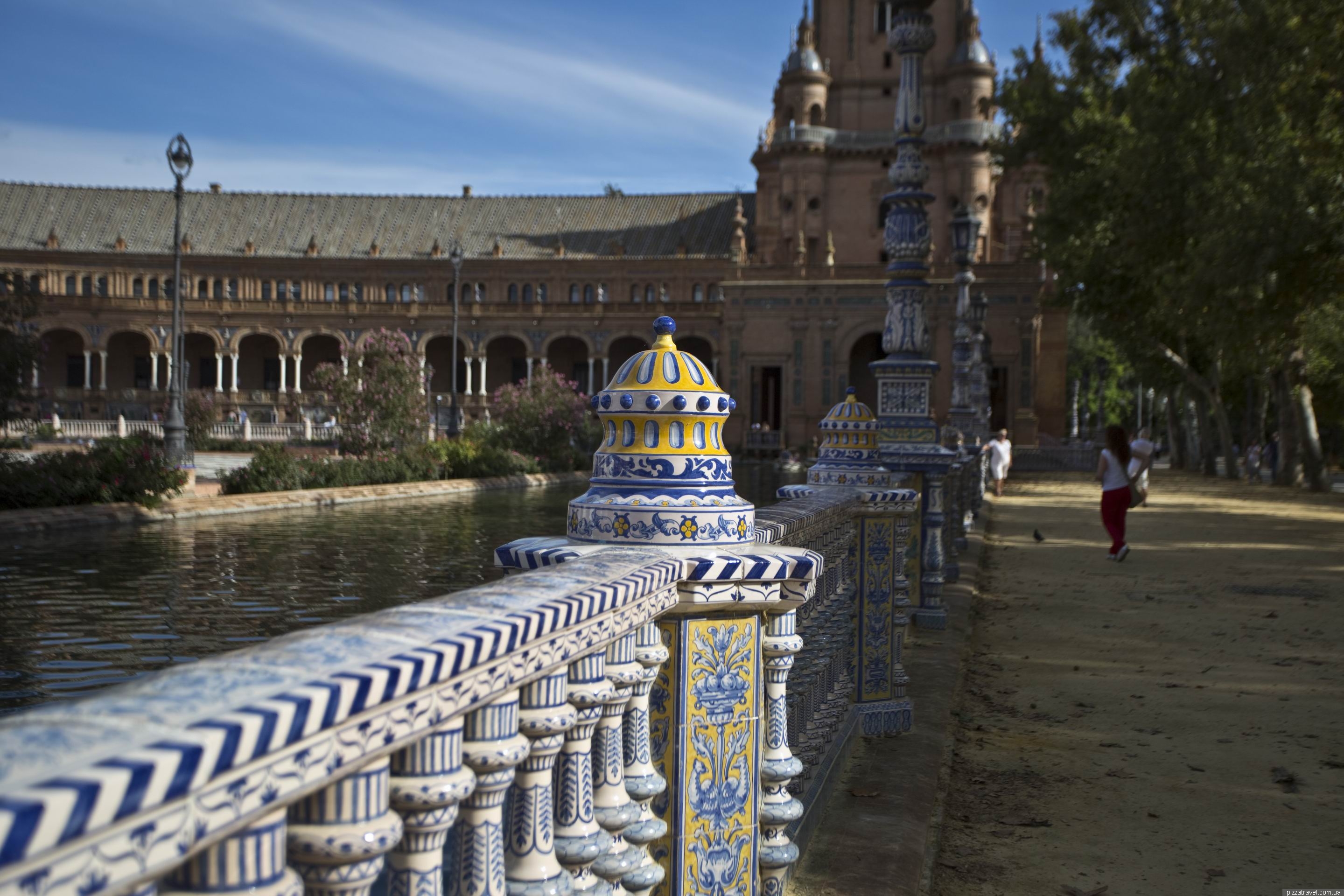 Next we came to the square of Spain, which was built for an exhibition in 1929. Perhaps it is the most beautiful square of ??the country. Now here is the town hall. You could see it in movies such as Lawrence of Arabia (video, 1962), Star Wars 1: The Phantom Menace (1999), Star Wars 2: Attack of the Clones (video, 2002), Dictator (video, 2012).