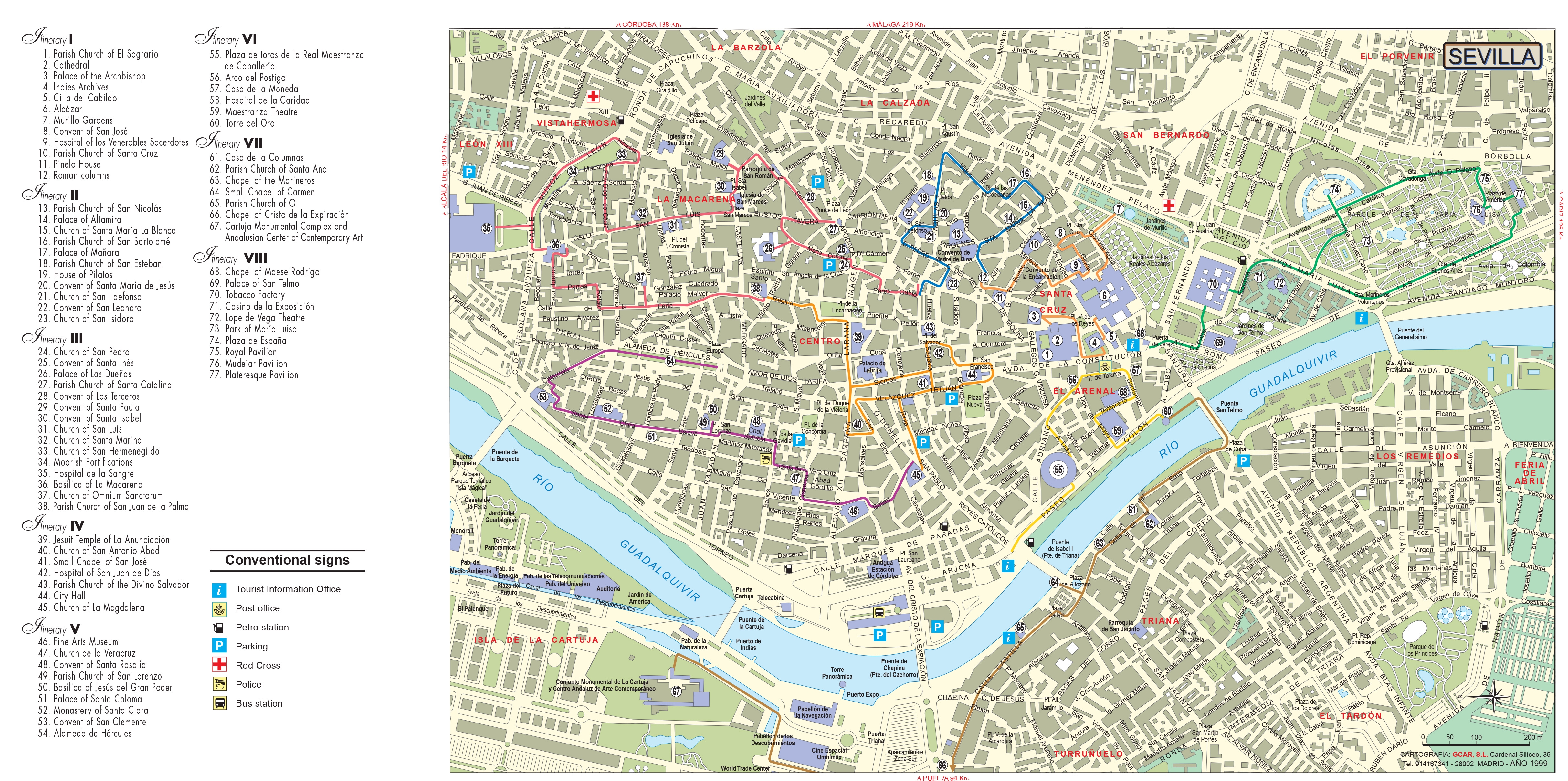 Good map of Seville with routes. We walked along the routes 1, 2 and 8.