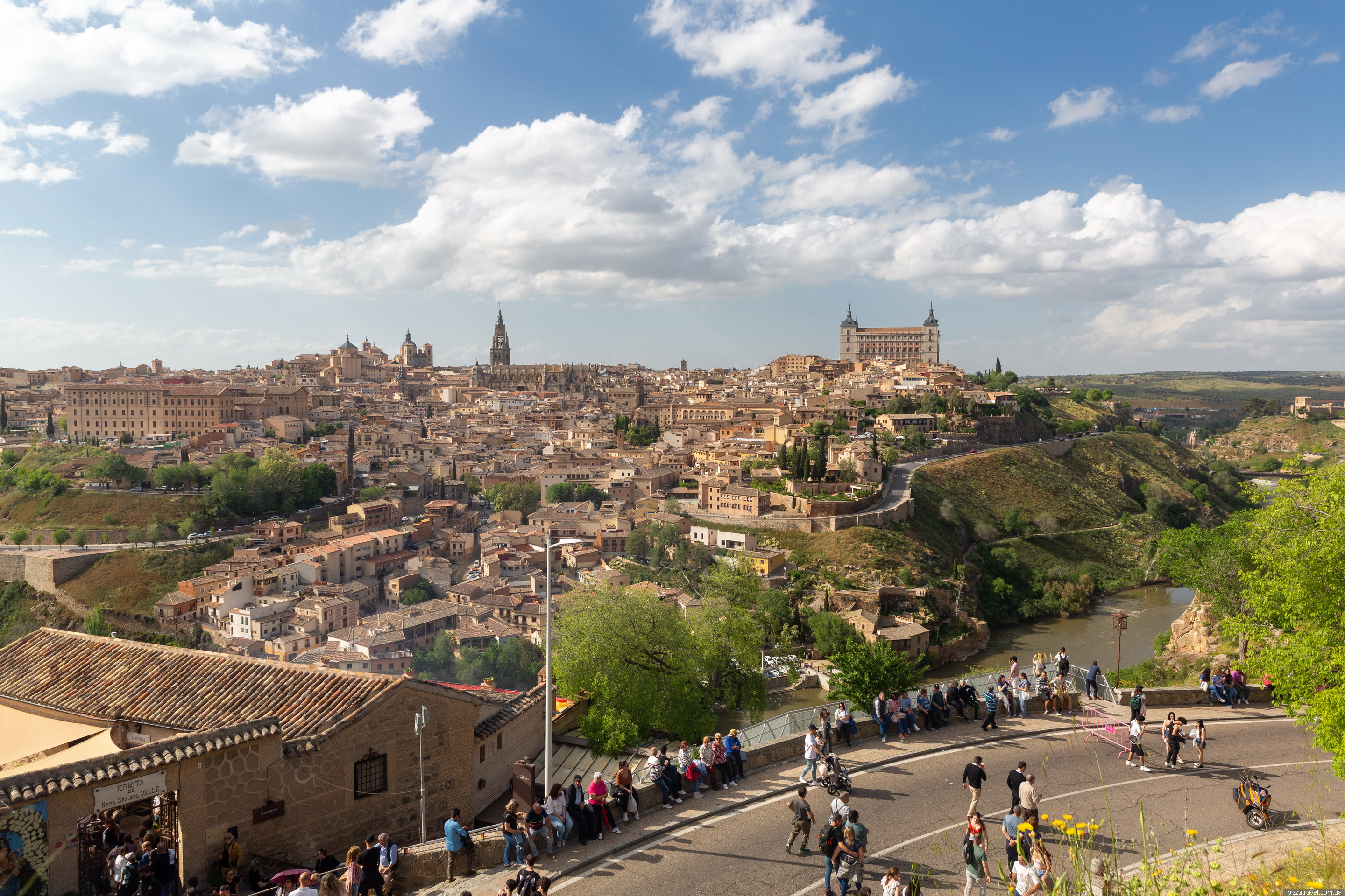 But where are the beautiful panoramic views? They are not in Toledo itself, but on the cliffs on the other side of the river. It's quite a long walk to get there, although we actually walked the whole way with our little daughter, as we had plenty of free time and traffic was blocked due to the festival. It's better to take a taxi or drive there in your own car.