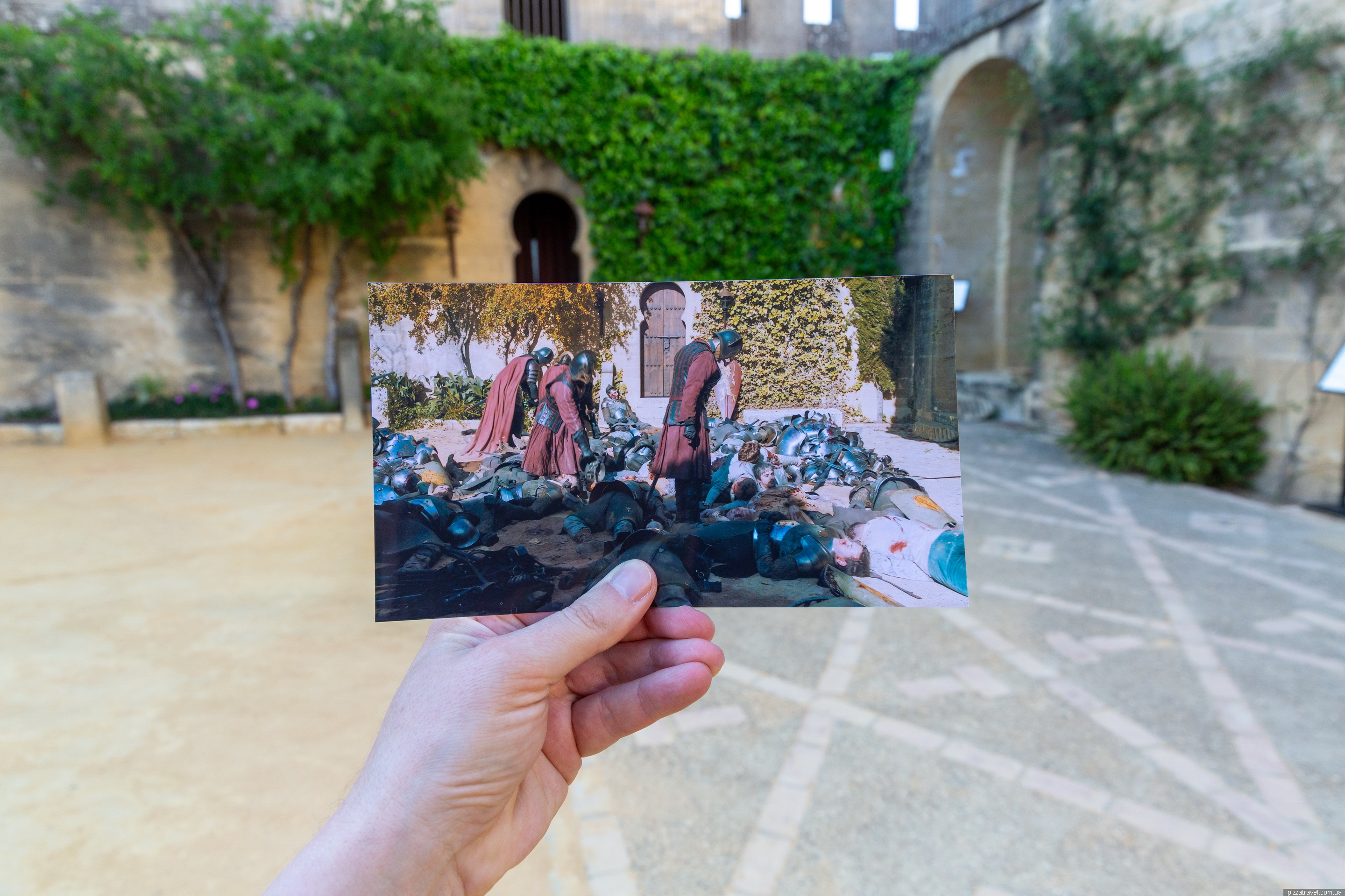 We were interested in the castle primarily as a filming location for Game of Thrones (S07E03 and S07E04). As in some other places in Spain, photographs with scenes from the series have been installed here.