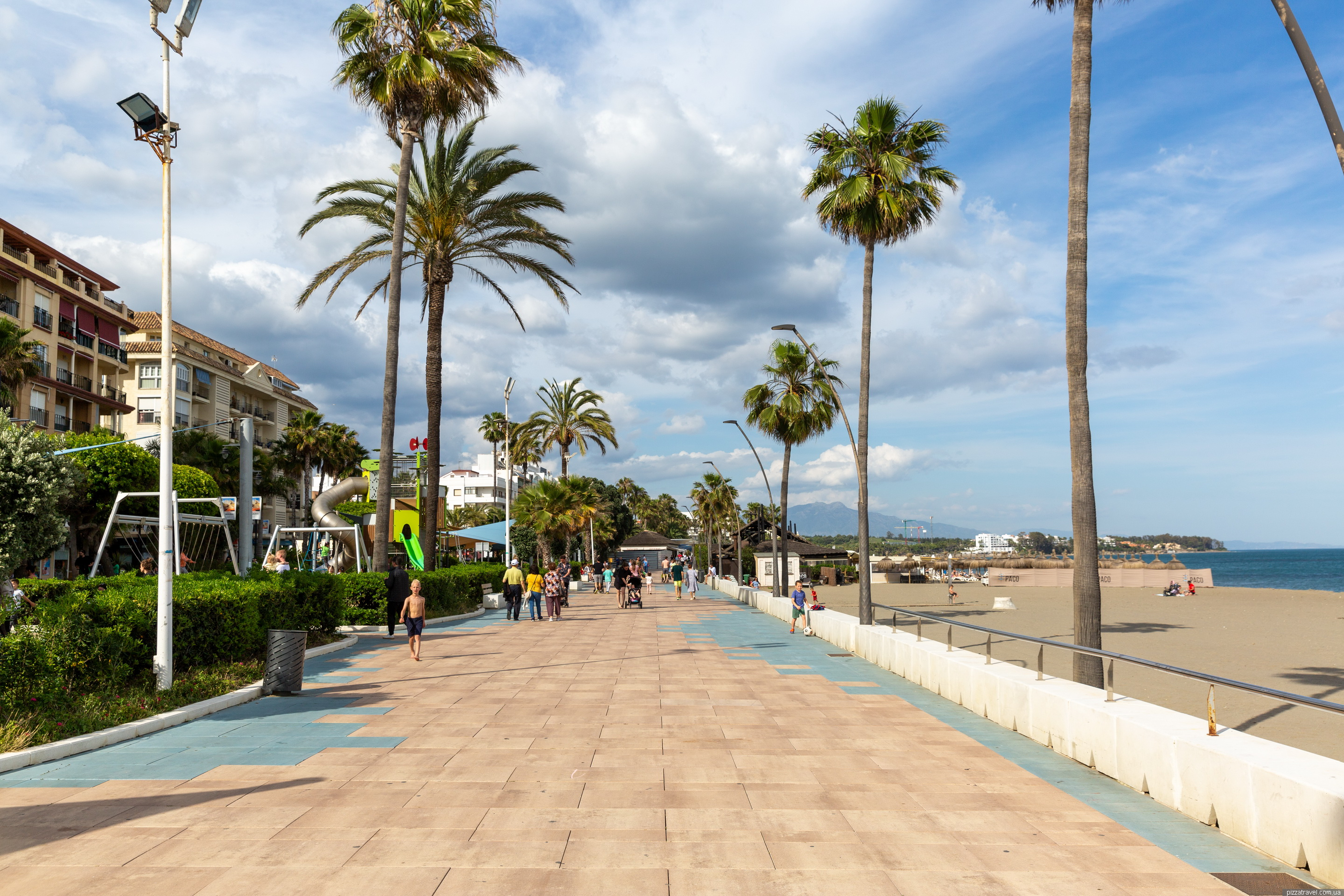 We came to Estepona to walk along the promenade; we haven't visited the old town yet. The promenade is excellent, with lots of greenery and restaurants, and there are good playgrounds. We recommend it, especially if you have children.