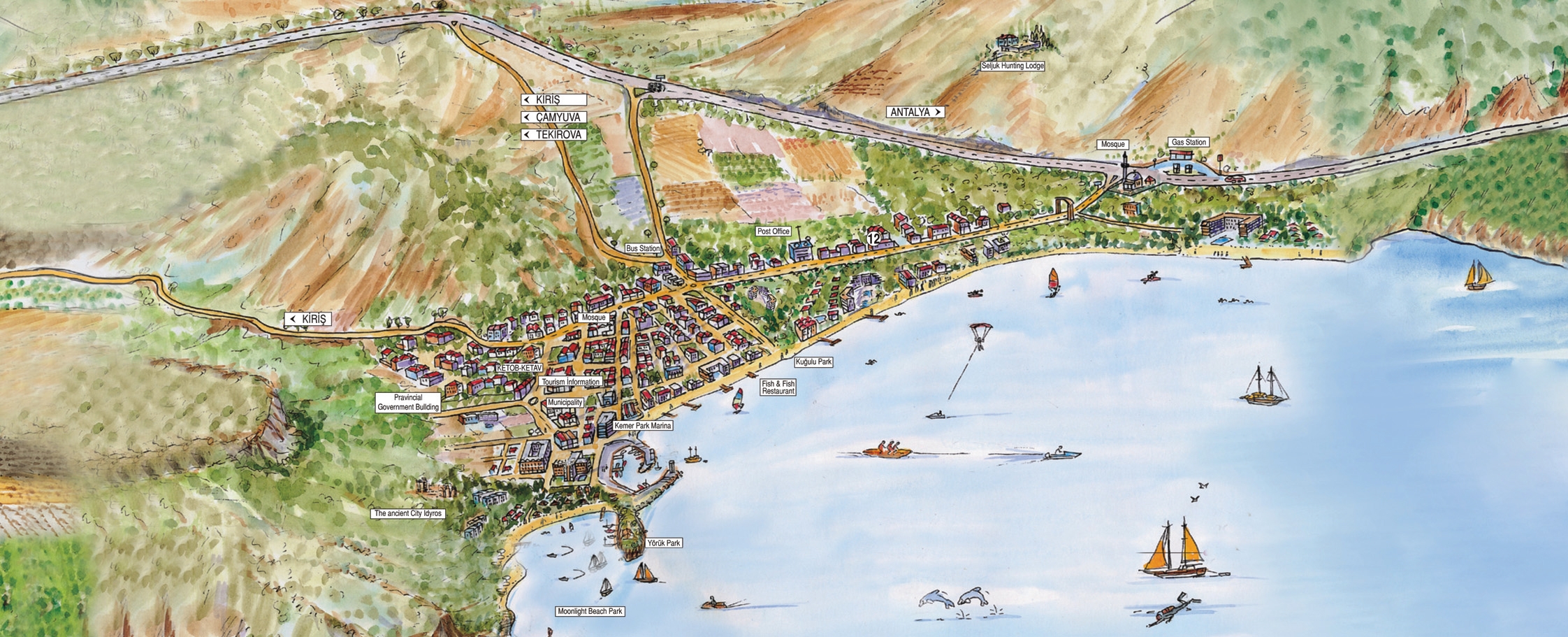 Getting there: The nearest airport is in Antalya (60 km). By bus go to Antalya bus station and transfer to bus in the direction of Kemer, they run frequently and cost 5 euros. Taxi from the airport to Kemer cost 65-70 euros.