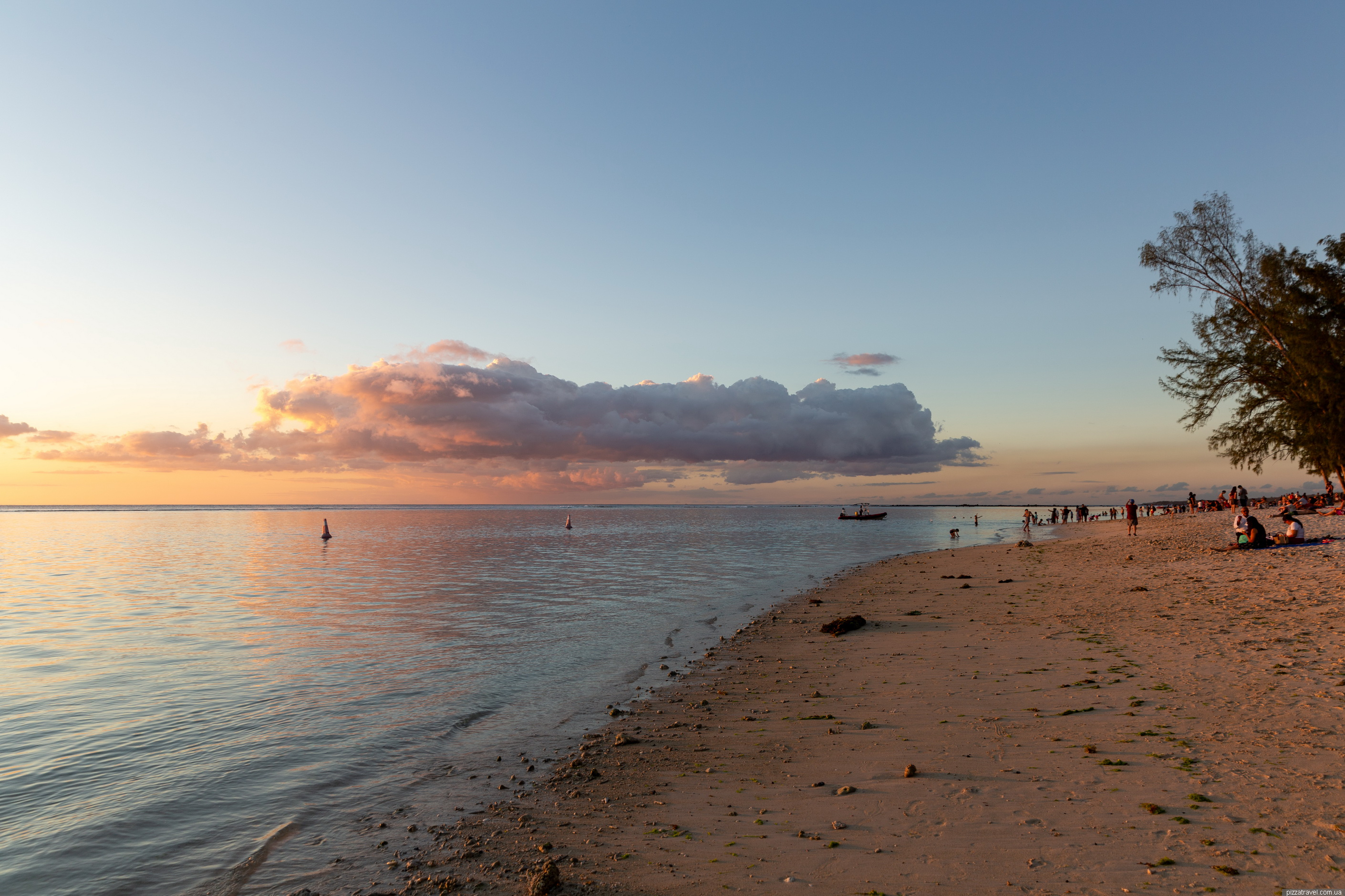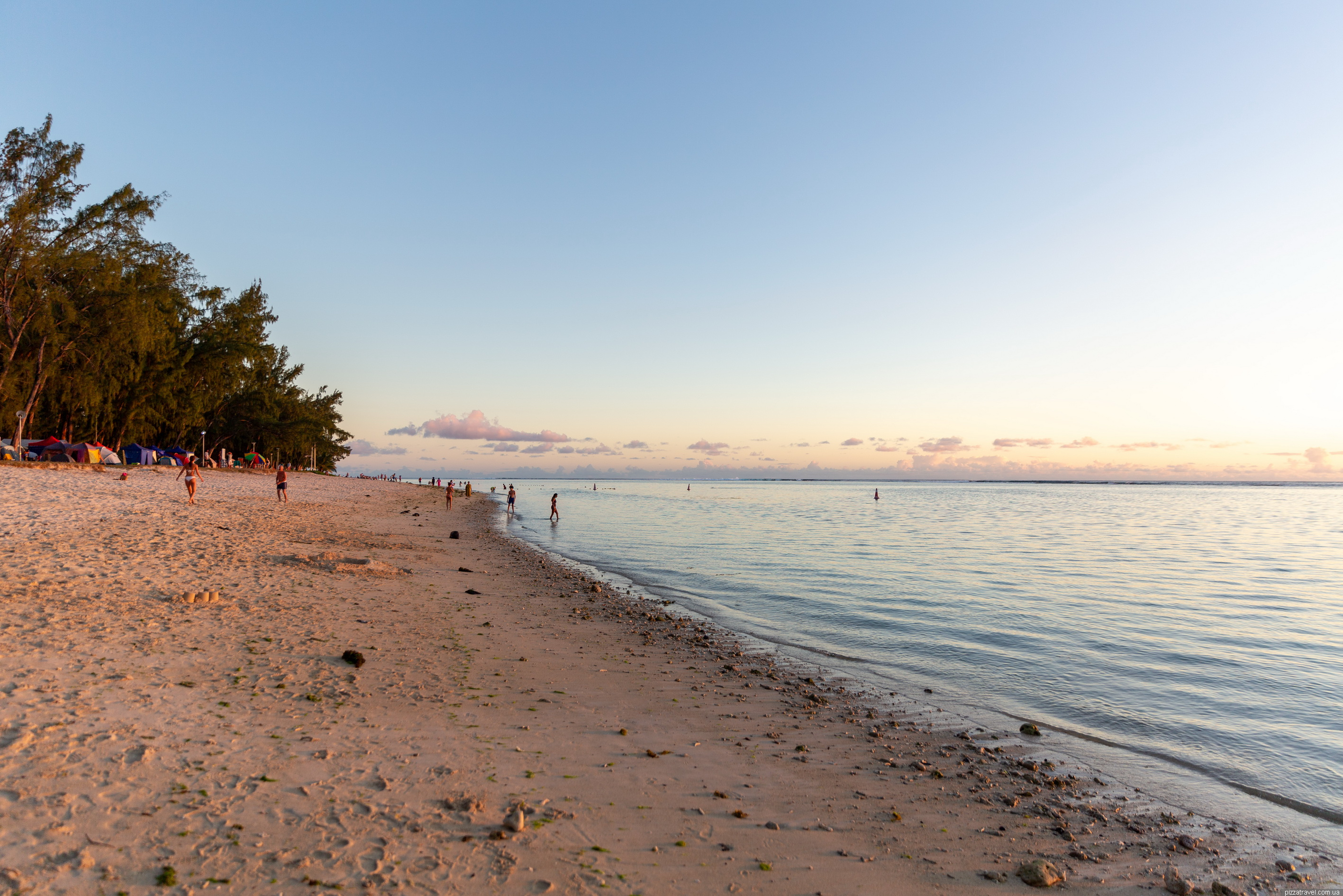 -20.301000, 57.364028), где берег чистят, он значительно лучше, чем в районе бесплатной парковки. Мы были как раз около парковки и наши дети не смогли тут купаться, только игрались в песке. Дело в том, что все дно покрыто камнями, по которым и взрослым ходить довольно непросто.