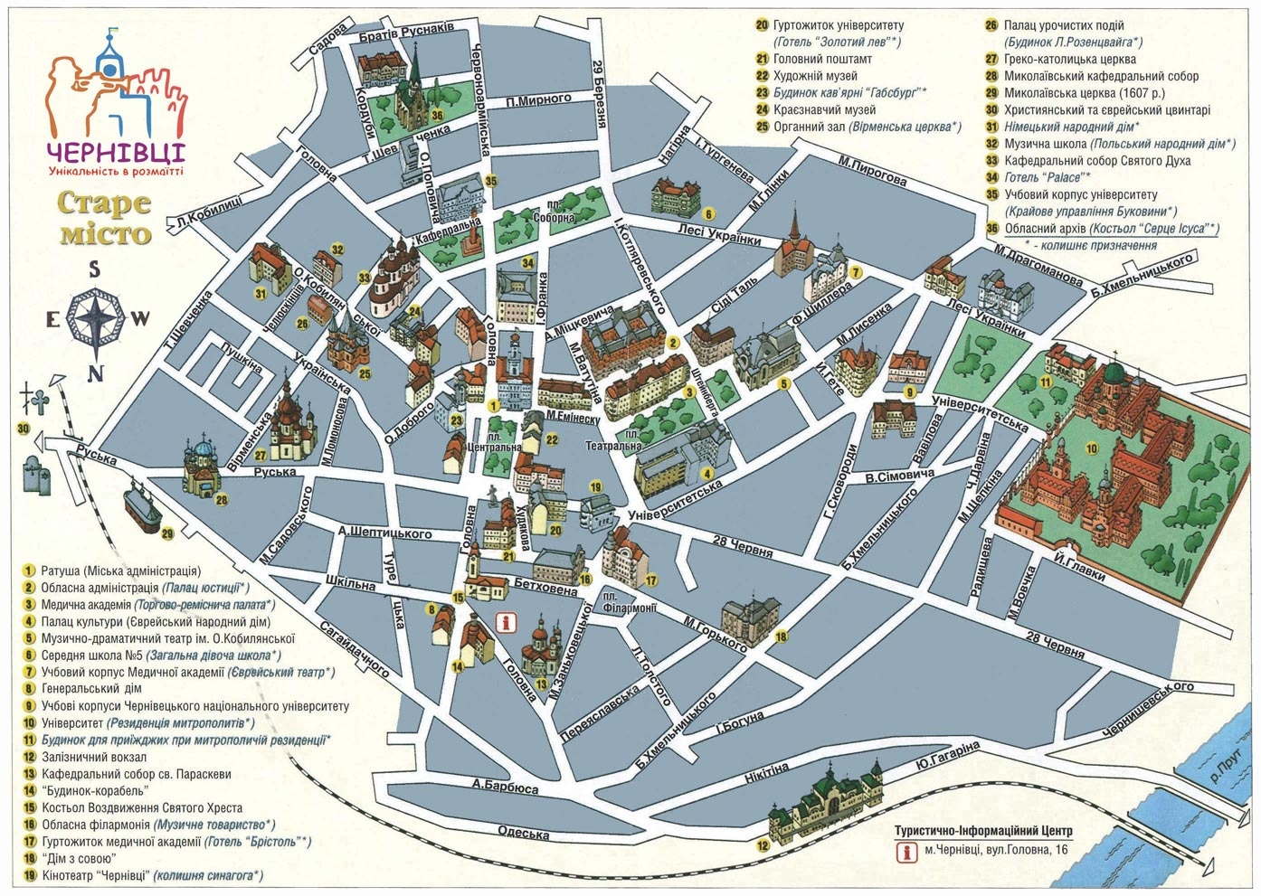 Центр міста дуже симпатичний, а пішохідна вулиця Кобилянської - одна з найкрасивіших в Україні. У вечірній час у місті включається різнобарвна підсвітка. Обов'язково прогуляйтеся ввечері Театральною площею та вулицею Кобилянської.