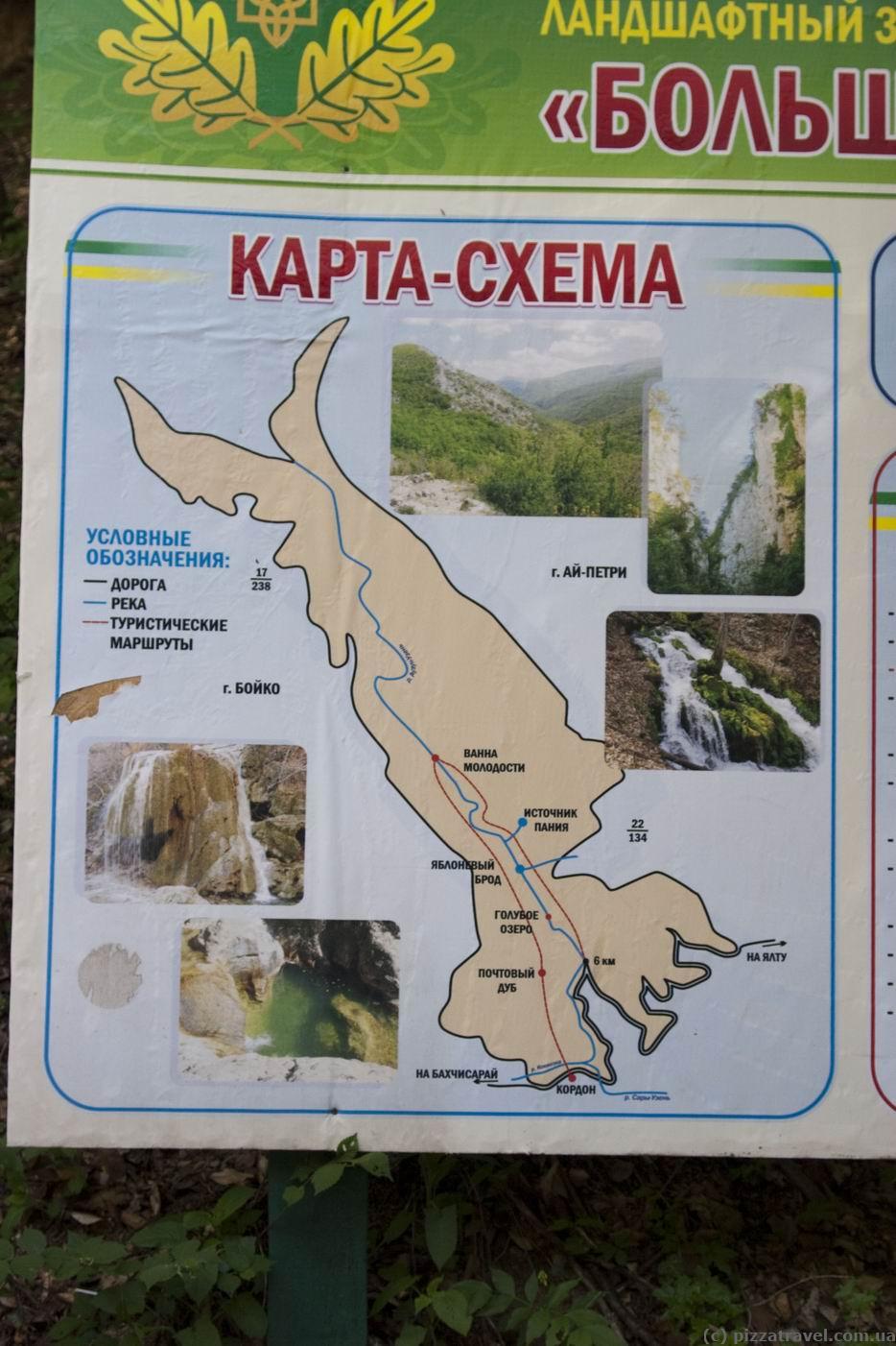 Як дістатися: До самого каньйону громадський транспорт не ходить. Можна доїхати до Соколиного з Бахчисарая й далі на таксі або пішки близько 5 кілометрів до каньйону. З Ялти два варіанти: таксі або екскурсія. Таксі ми навіть не розглядали, оскільки ціну ломлять занадто високу. Екскурсія коштує $25 і це оптимальний варіант.