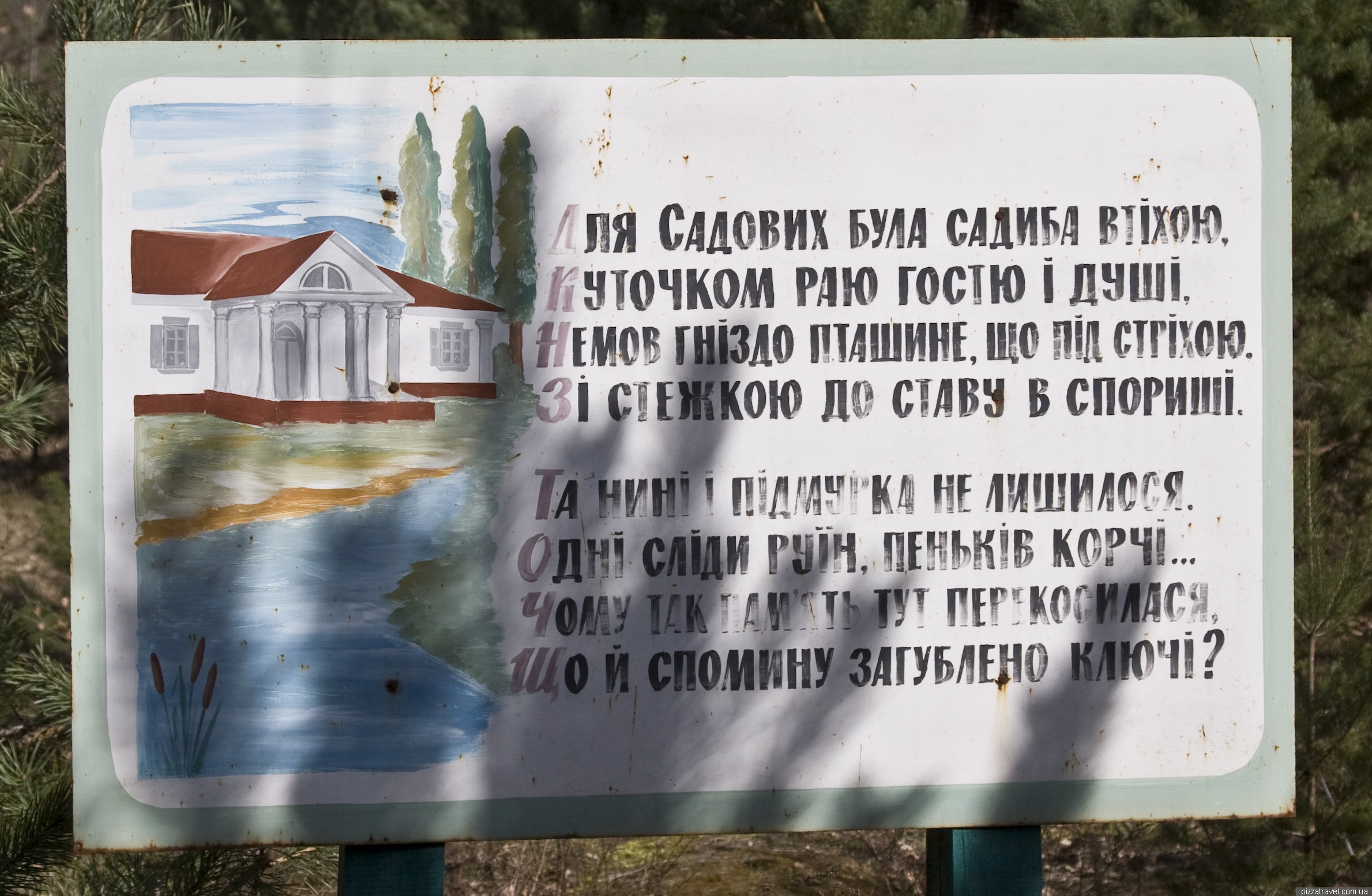 Назву екостежка отримала за прізвищем мешканців садиби, яка стояла тут 100 років тому. Зараз її немає, залишилася тільки покинута липова алея, яку і знайти-то непросто, вона знаходиться позаду табички. Було б непогано відновити садибу, тоді місце б отримало зовсім інший статус.