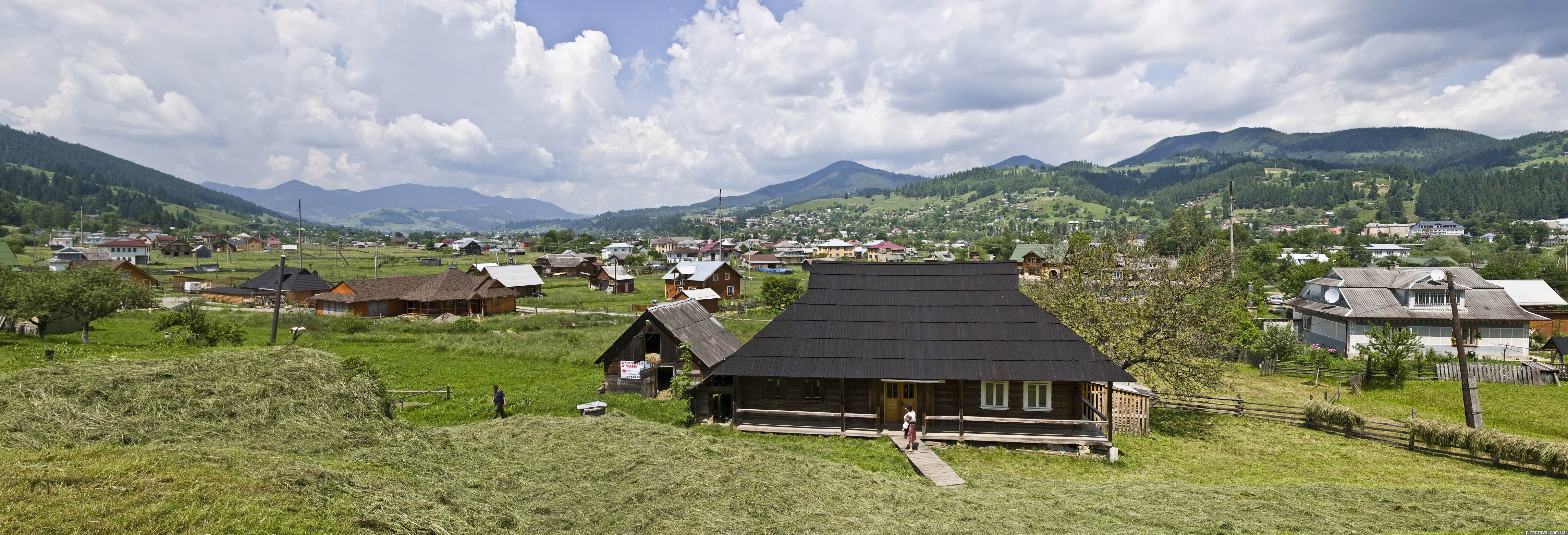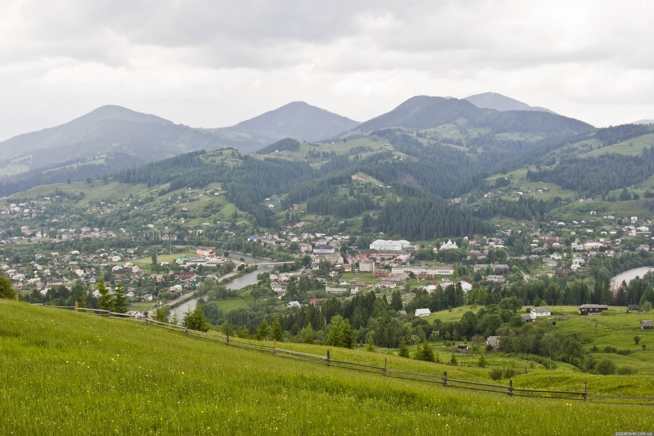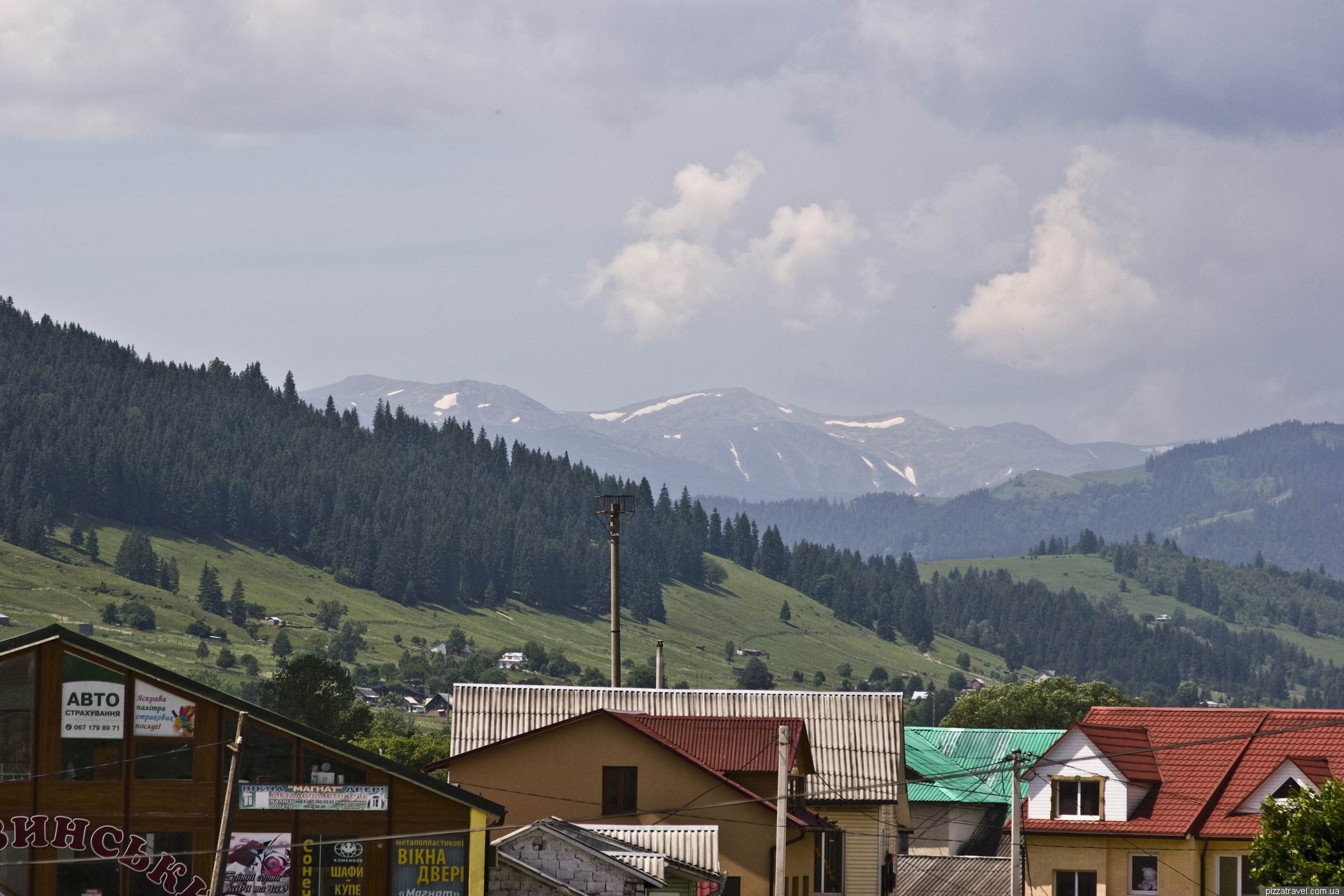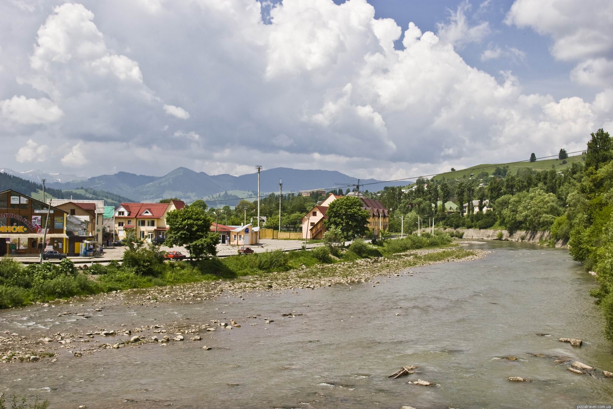 Верховина - це селище міського типу, розташоване в мальовничому місці, уздовж річки Чорний Черемош. Селище розташоване досить високо, нижня частина на висоті 620 метрів, а верхня доходить до 1250 метрів. Розвивається туризм, приїжджати сюди варто для прогулянок по красивих місцях, рафтингу (у селищі є школа рафтингу) і для знайомства з культурою гуцулів. Ми до речі познайомилися досить добре, навіть пообідали в справжній гуцульській хаті. Спробували відразу кілька місцевих страв: