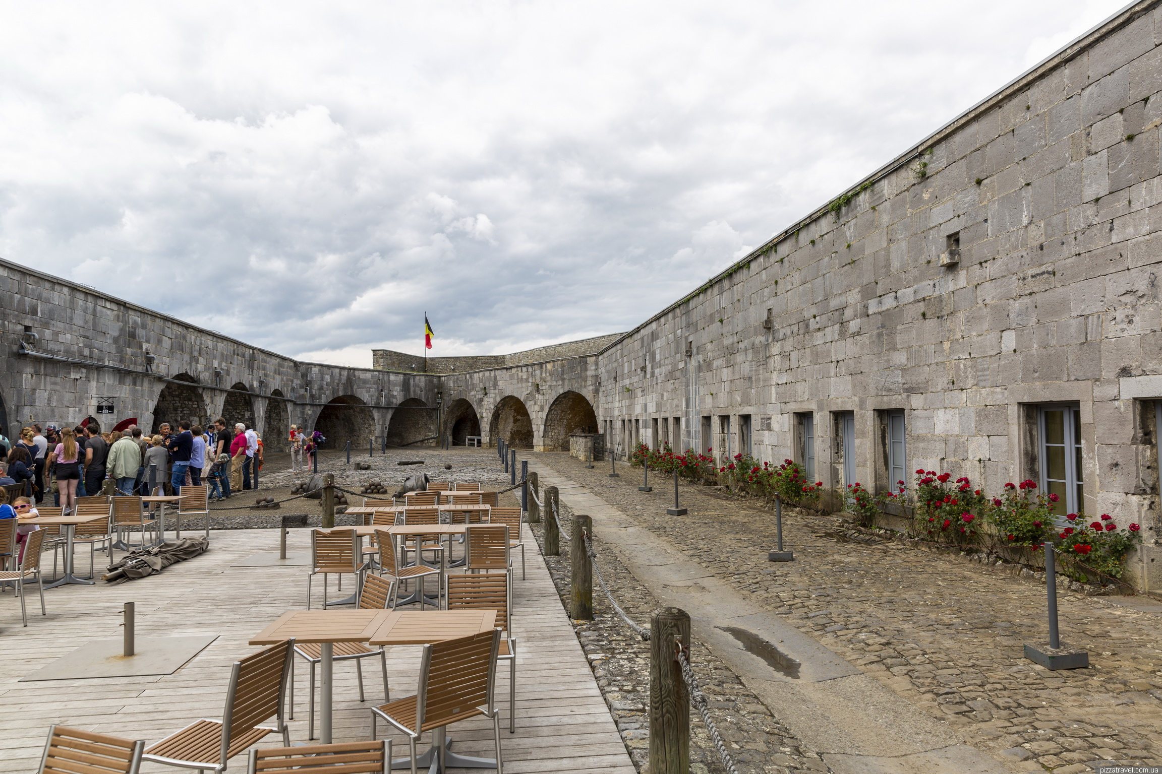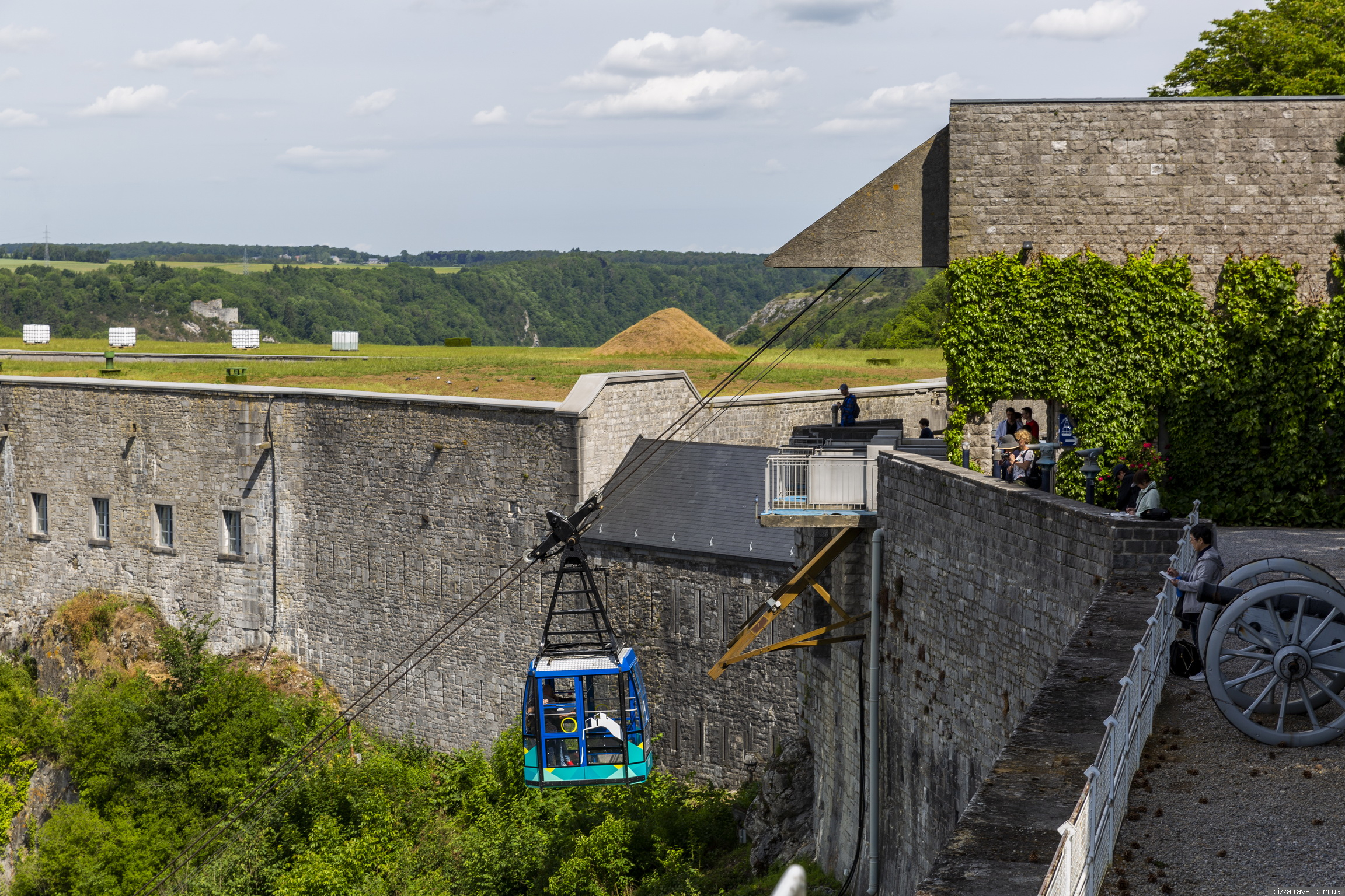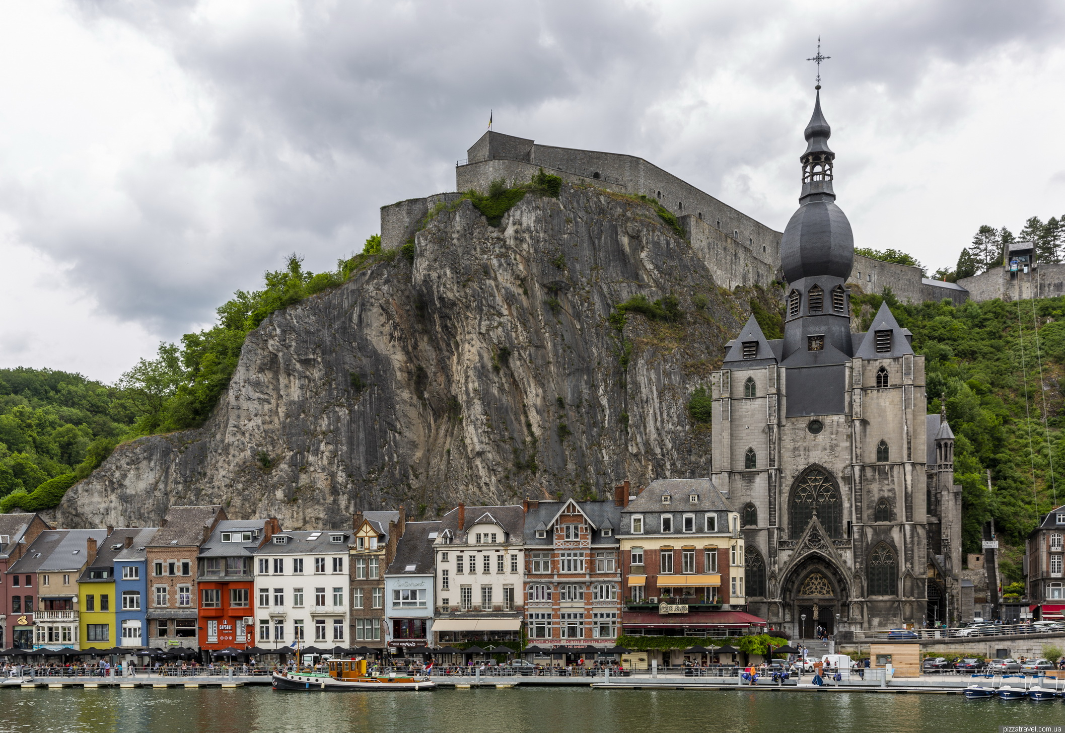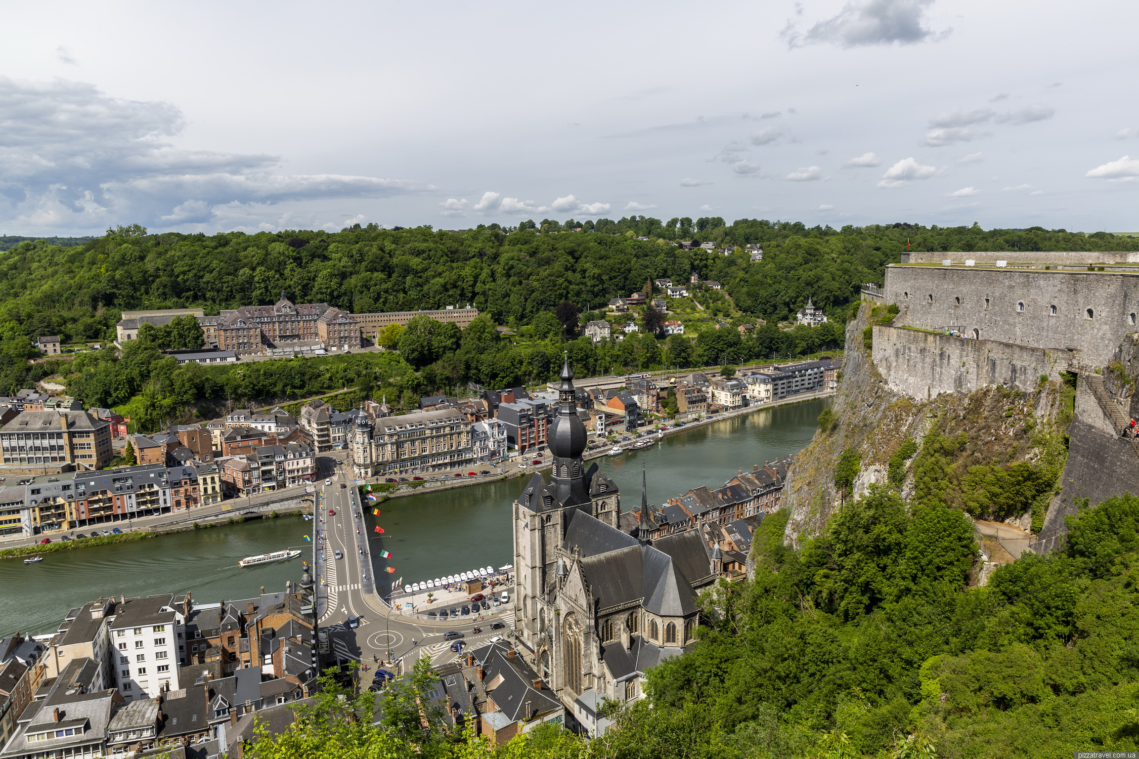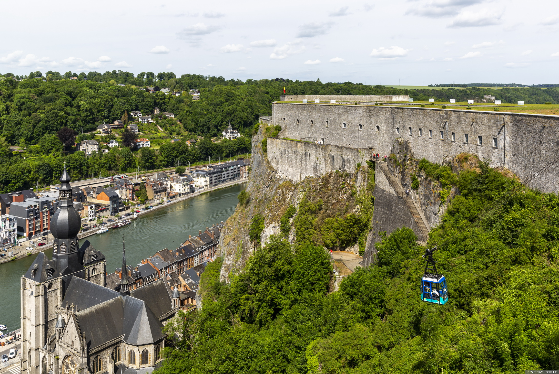 І потужна фортеця (Citadelle de Dinant), високо на скелі, побудована в 1815 році. З набережної до фортеці можна піднятися канатною дорогою. Ми ж навпаки, припаркувались нагорі, подивилися фортецю та мальовничі краєвиди з оглядових майданчиків, а потім спустилися вниз.