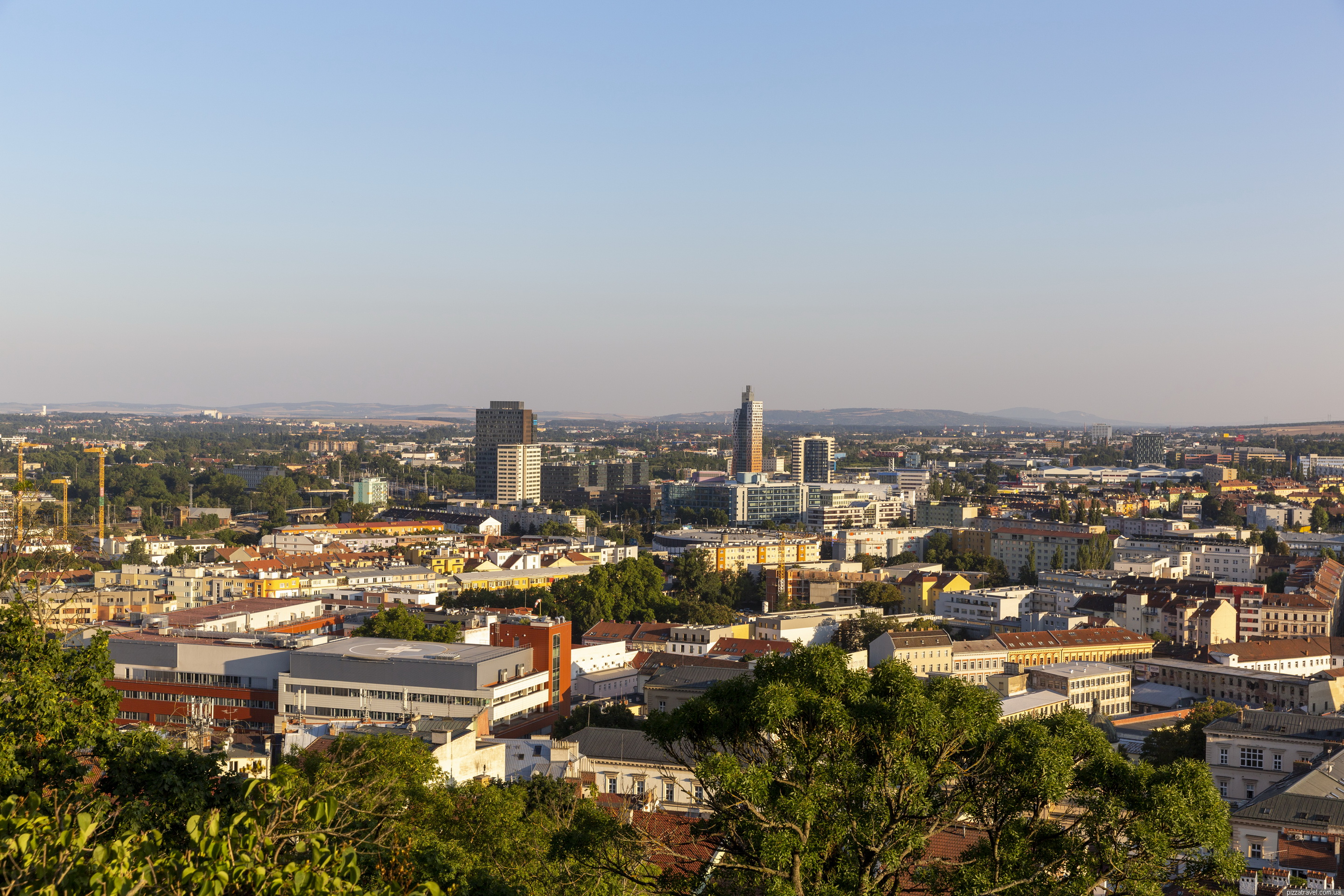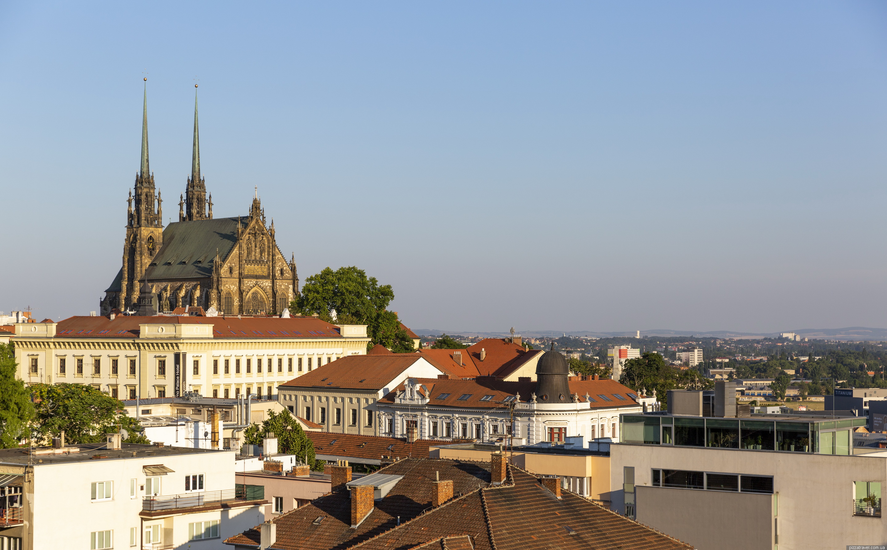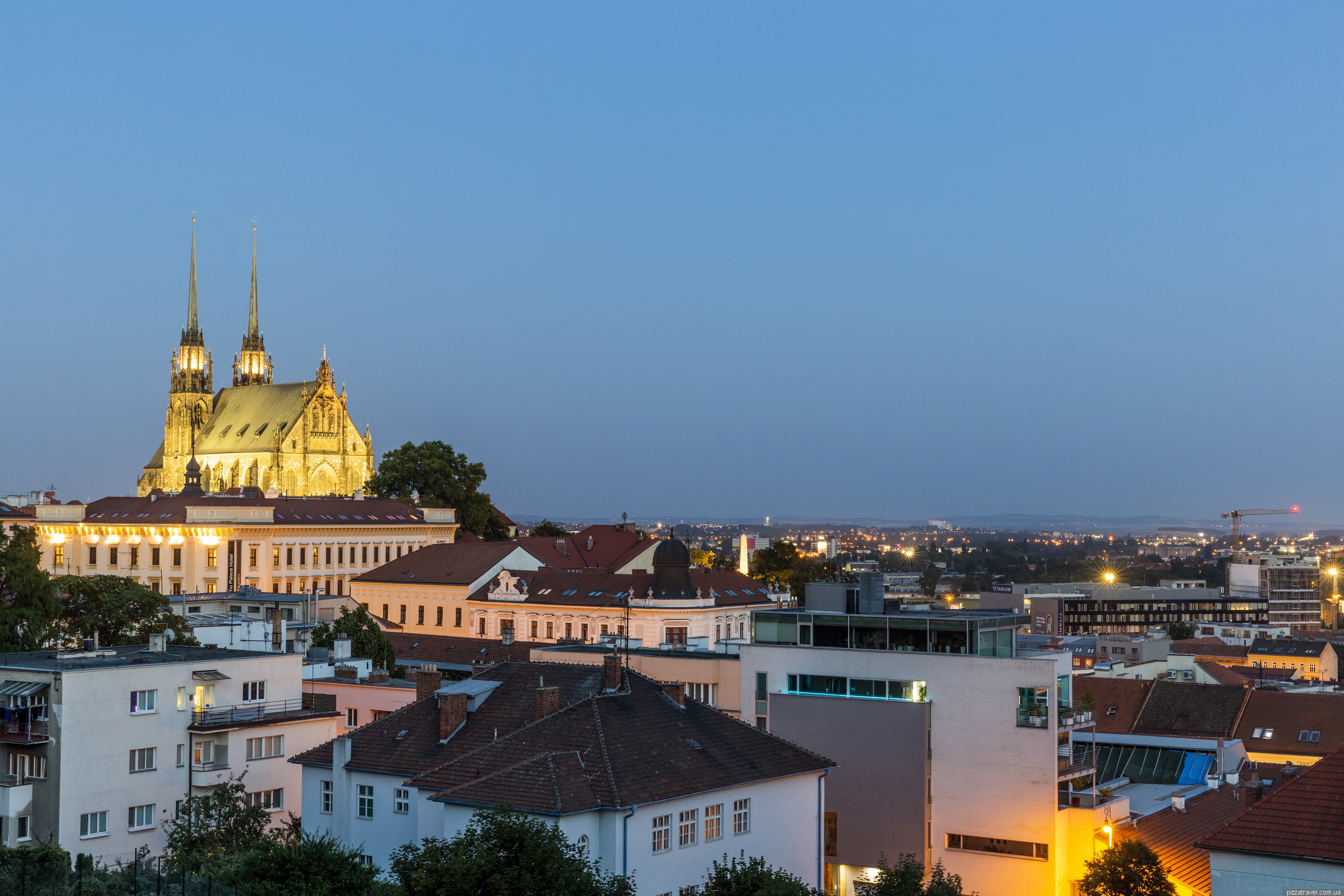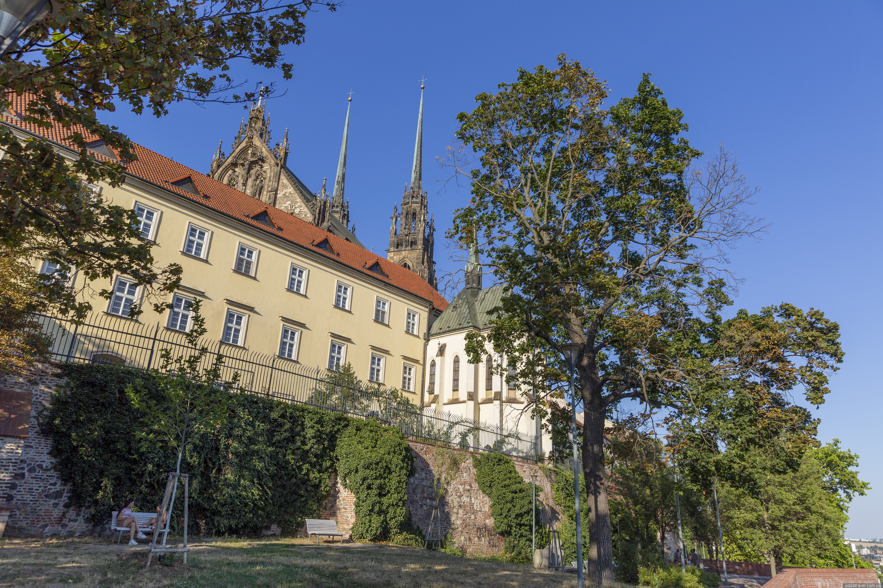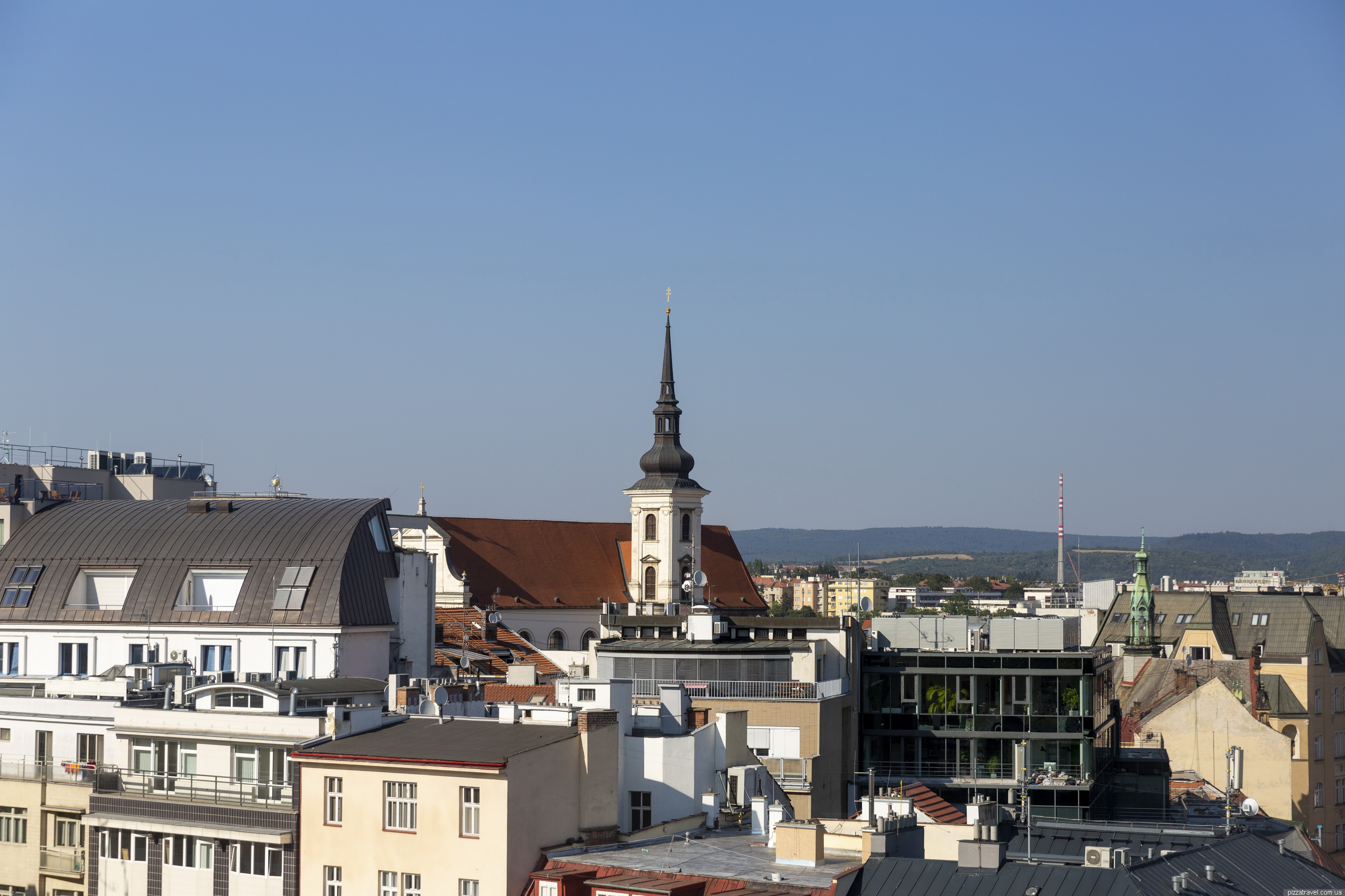 З висоти відкриваються краєвиди на Брно та Собор Святих Петра та Павла.