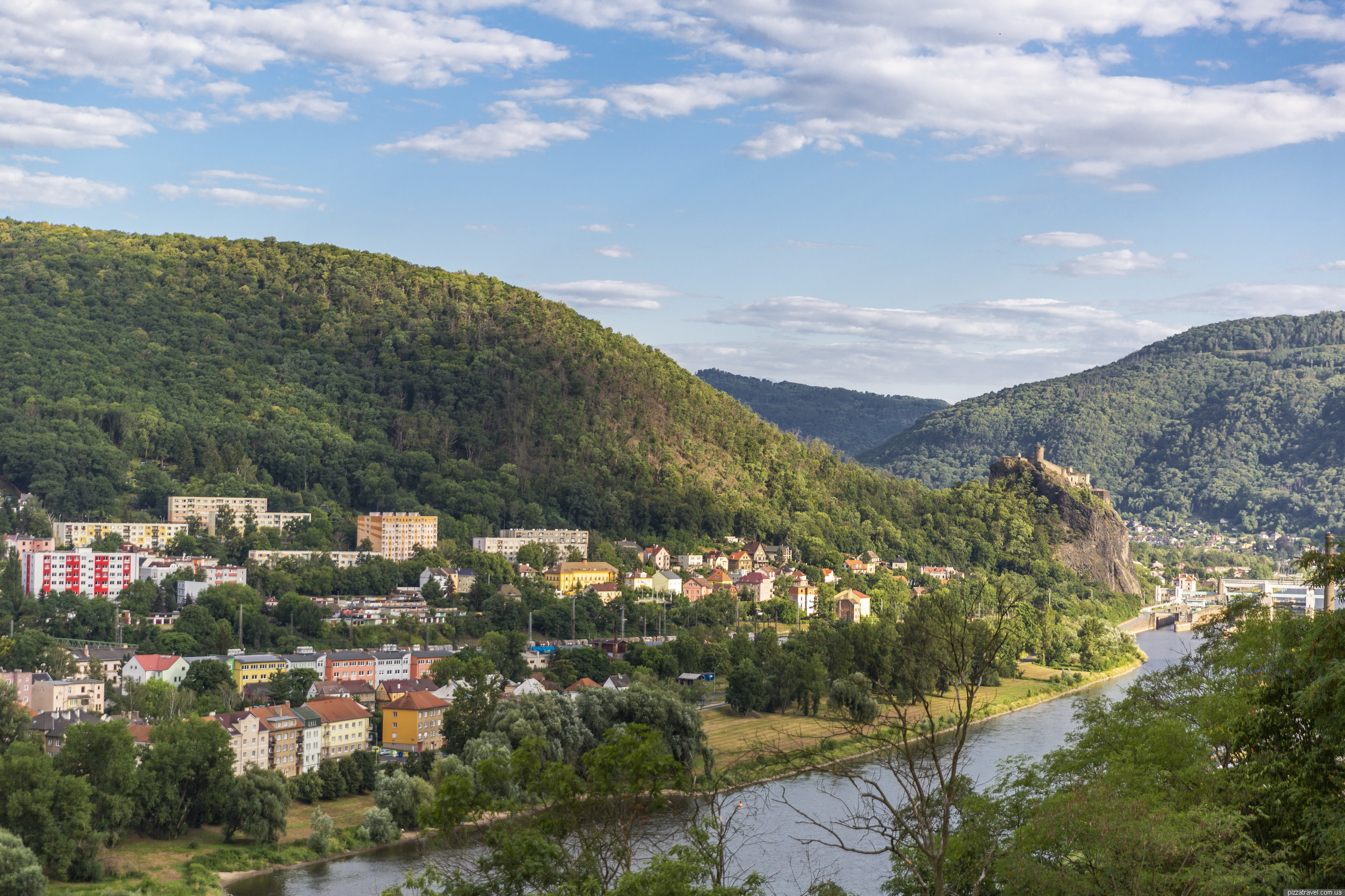 Від готелю, по горах, йде досить довгий пішохідний маршрут. Ми прогулялися тільки до першої виглядки Humboldtova vyhlídka, мапу пішохідних стежок можна подивитися тут https://www.openstreetmap.org/#map=17/50.65232/14.03884. З виглядки відривається вид на Замок Стржеков (Hrad Strekov), який контролював шлях по Ельбі з XIV століття. Якщо піти ще далі, то вигляд, швидше за все, буде кращим.