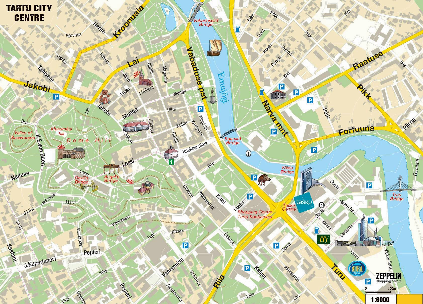 Основні визначні пам'ятки знаходяться в районі великої зеленої зони в центрі, розташованій на пагорбі Домська гірка або Тоомем'яги. Через стратегічне розташування, цей пагорб був заселений ще найдавніших часів і місто розвивалося навколо нього.