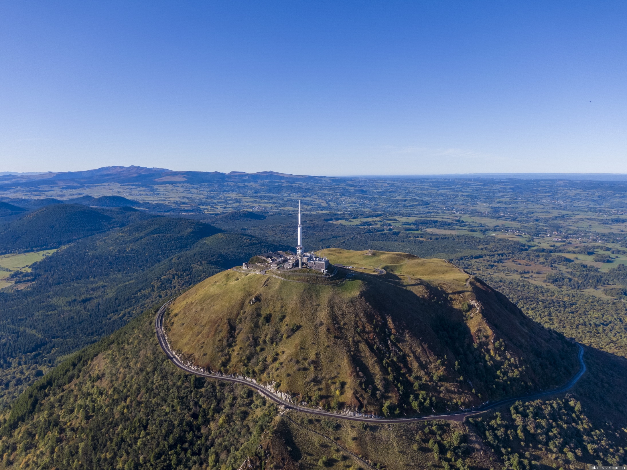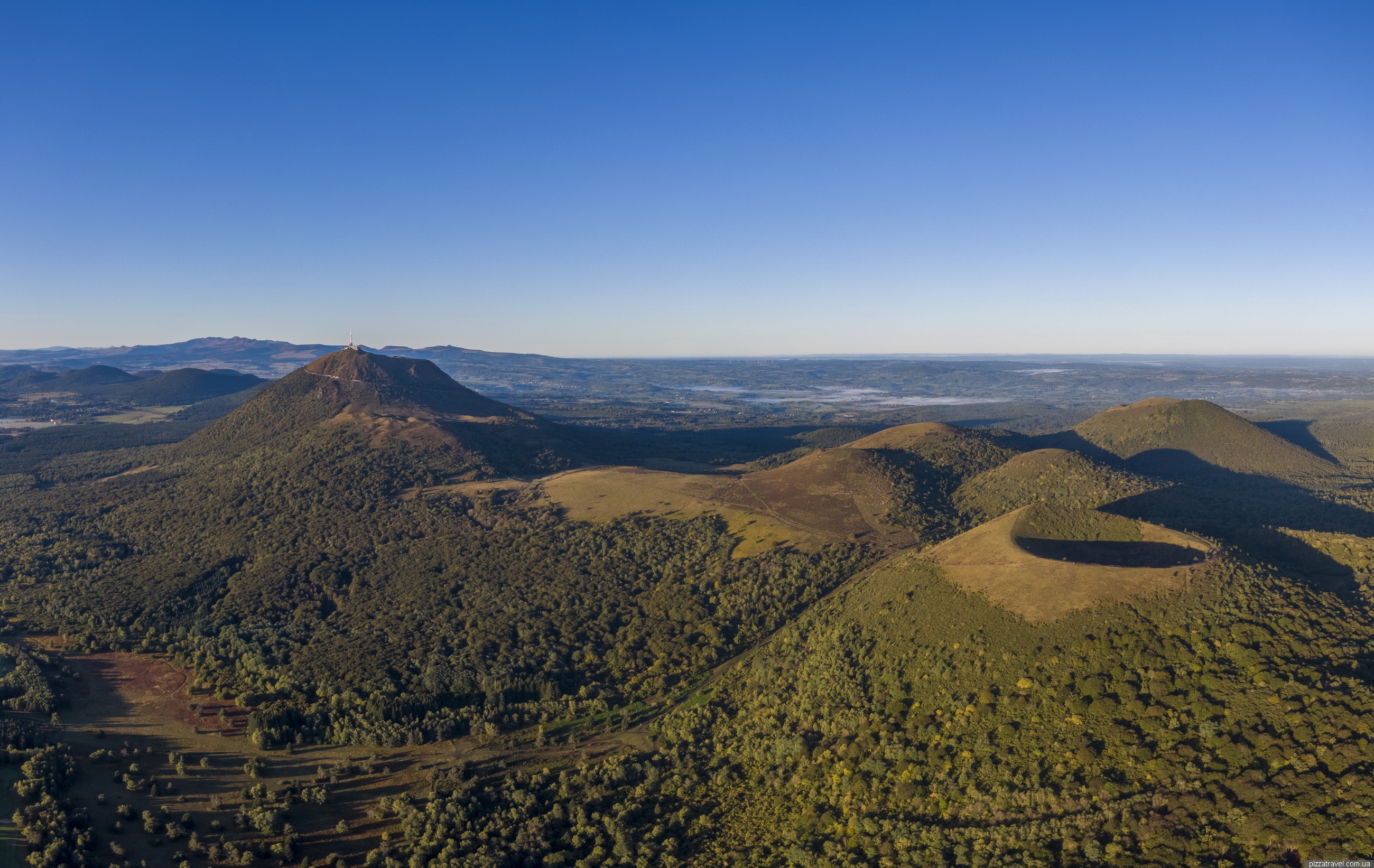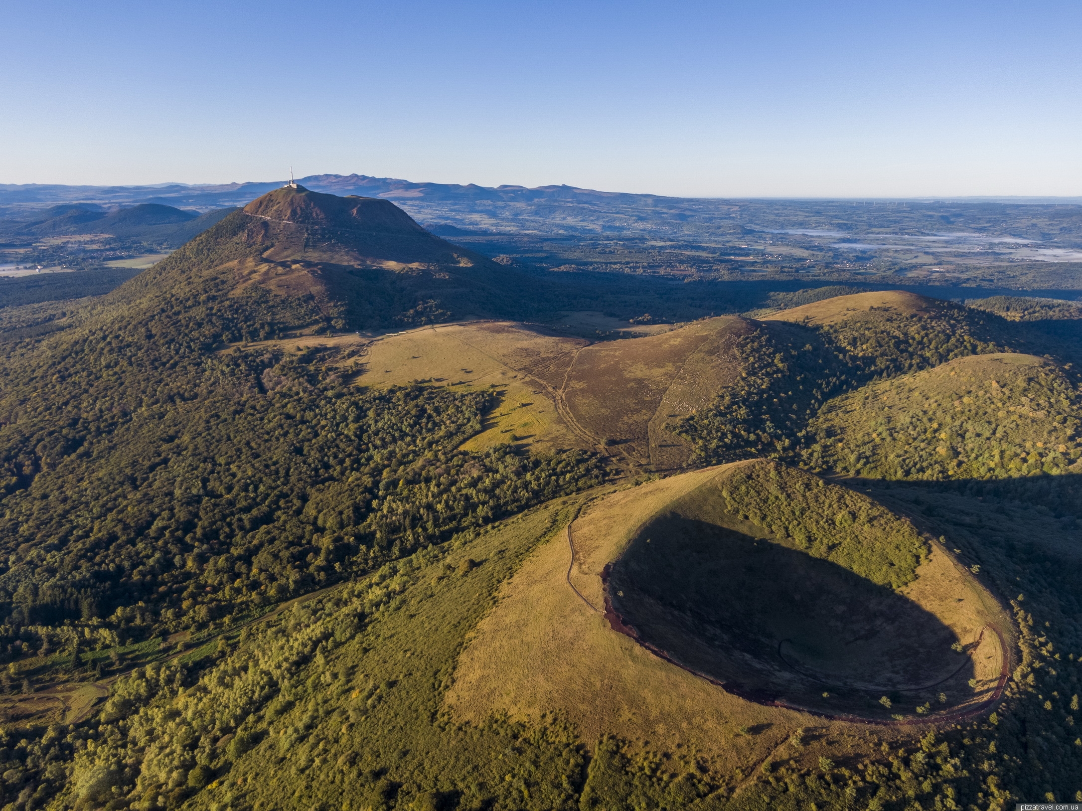 Він виділяється через свій ідеальний кратер. На наступному фото з дрона на передньому плані Puy de Pariou, а на задньому Puy de Dome.