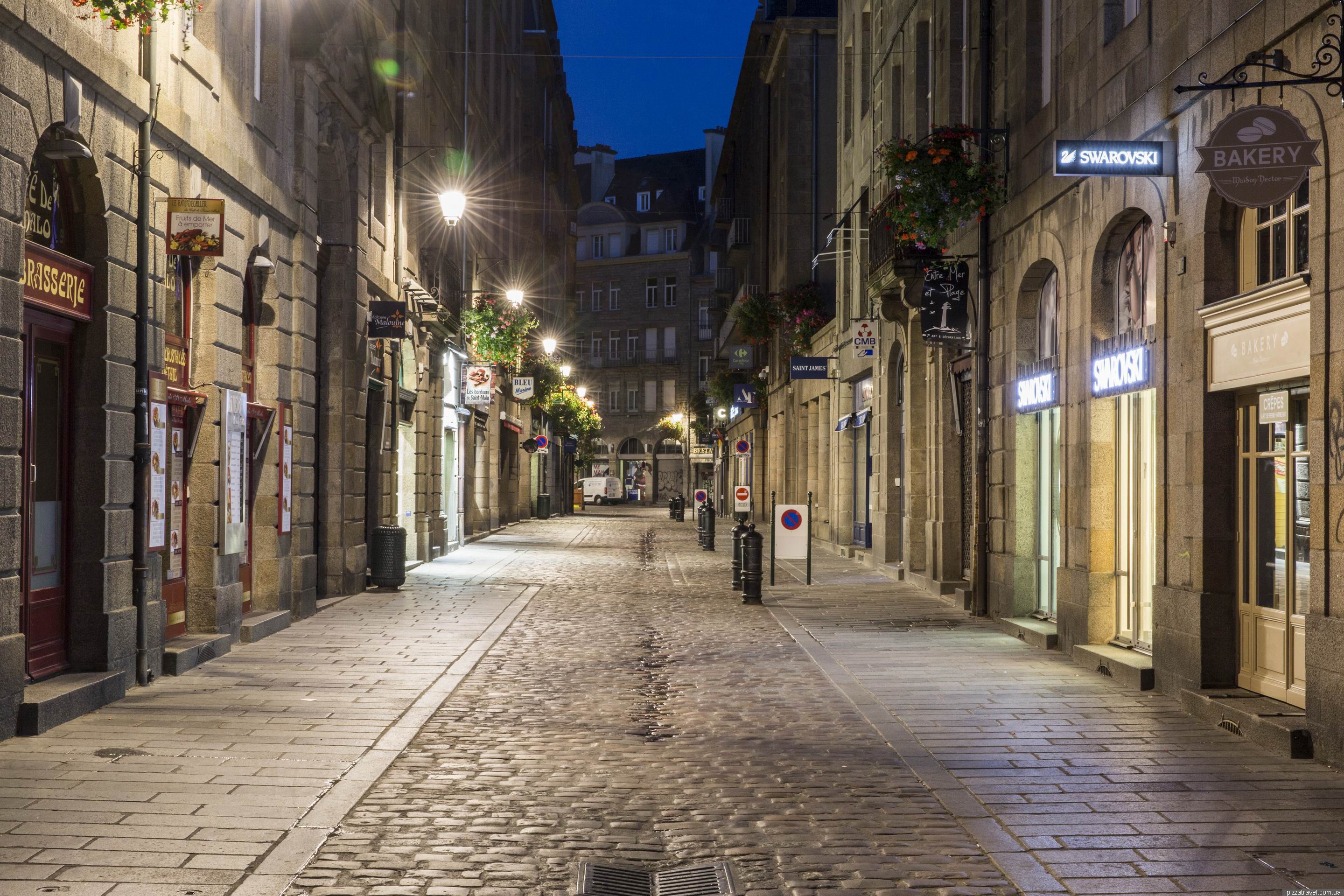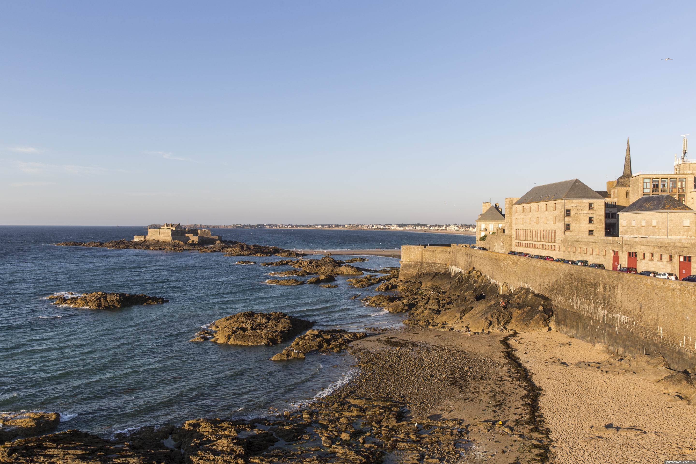 Як дістатися: /В Сен-Мало є залізничний вокзал, куди ходять потяги з Парижа і Ренна (http://www.sncf.com/). Найближчий аеропорт Dinard-Pleurtuit-St-Malo Airport, куди літає Ryanair (13 км). З нього тільки на таксі (20-25 євро). Якщо хочете заощадити, то потрібно пройти 2.8 кілометри до Pleurtuit і там сісти на автобус до Dinard, далі на автобус до Saint-Malo.