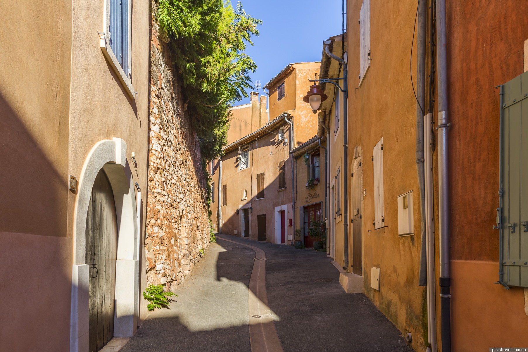 Містечко маленьке і його можна обійти за півгодини. Як ви вже здогадалися, через специфічний колір, приїжджати сюди потрібно тільки вранці або ввечері, в інший час колір загубиться. Колір будинків обумовлений охрою (окис заліза з глиною), яка у великій кількості залягає в цій місцевості і добувалася промисловим способом на протязі століть.