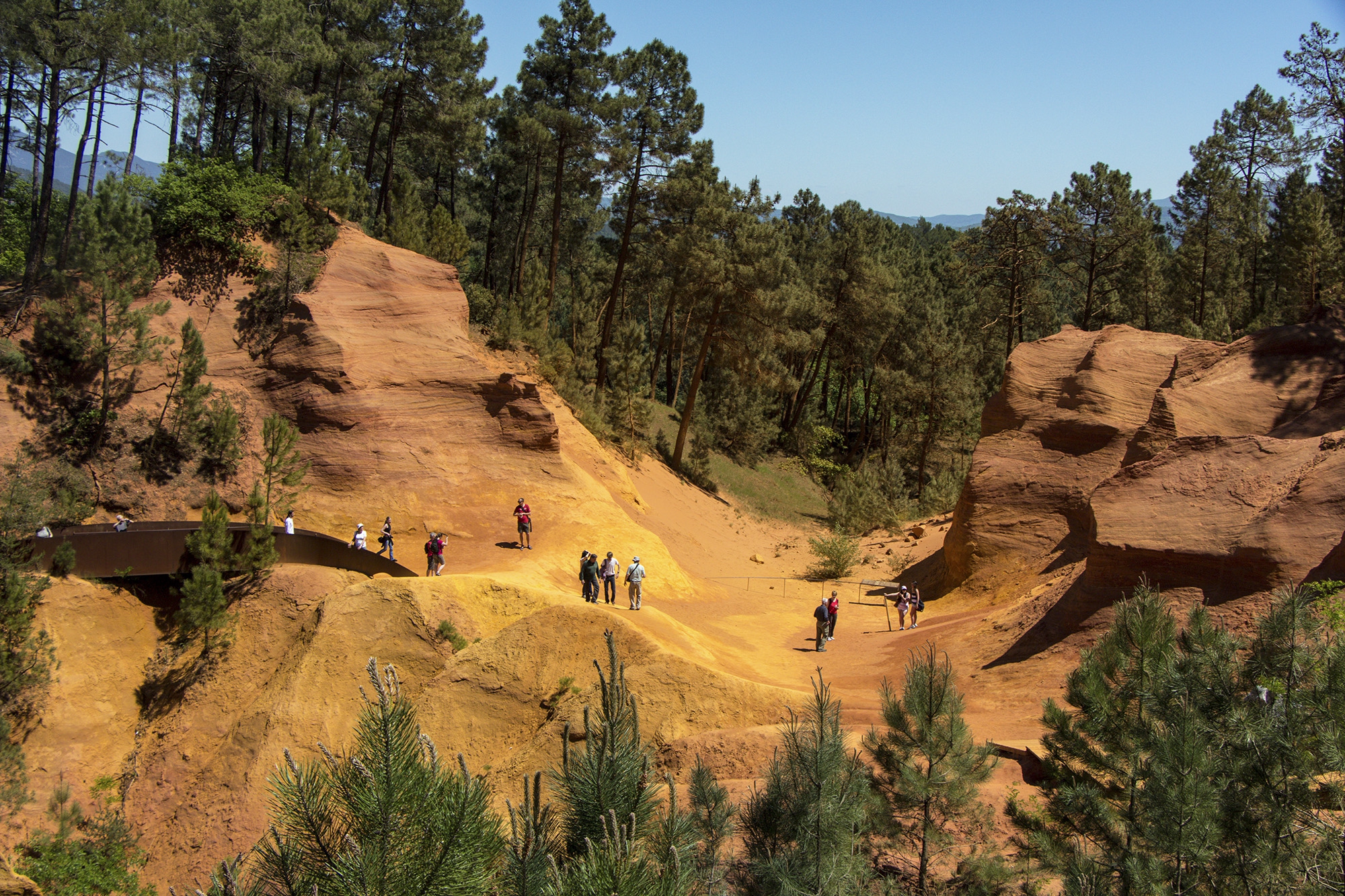 Прямо біля автомобільної стоянки, починається охряна стежка (Sentier des Ocres). Це легкий маршрут через колишній кар'єр.