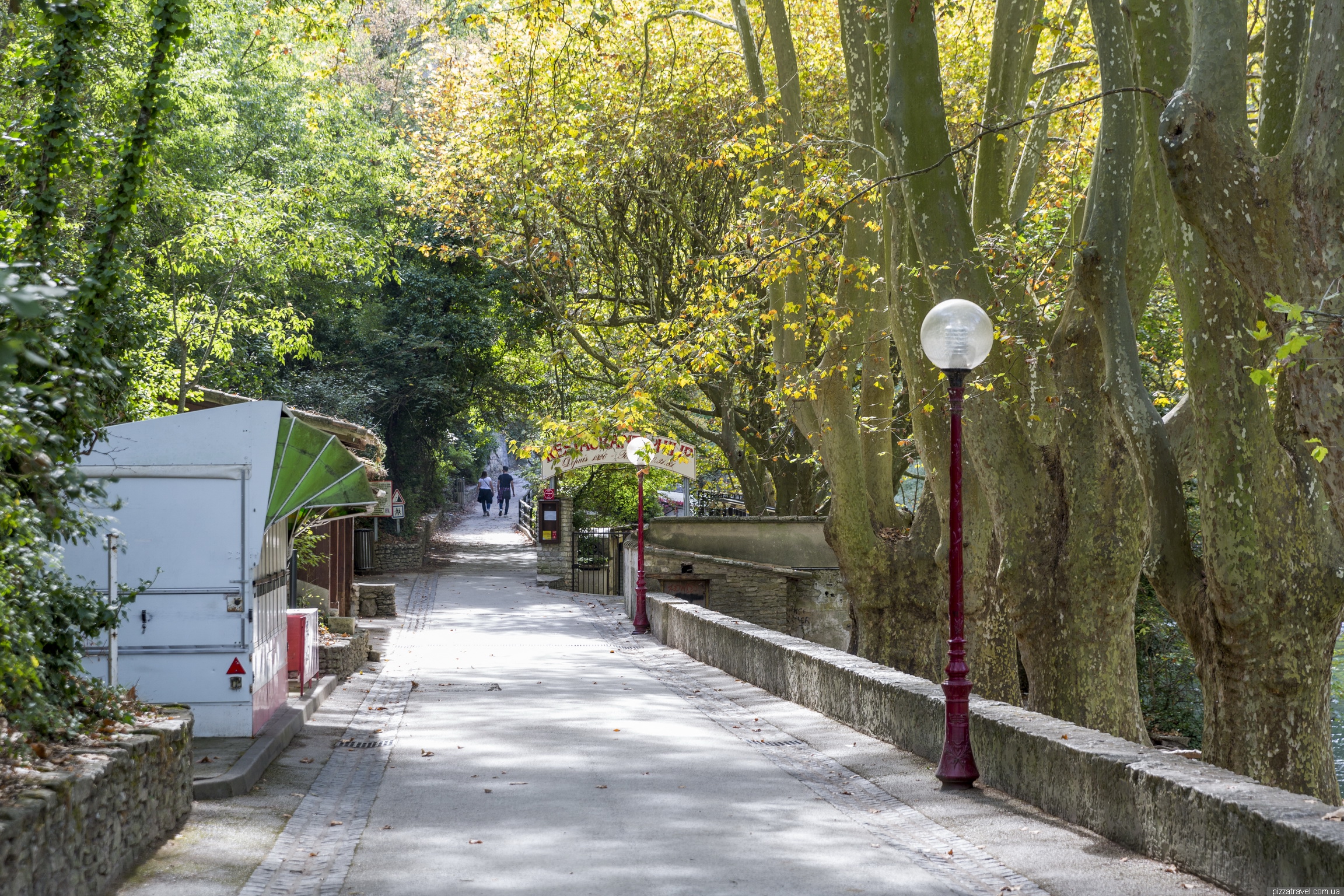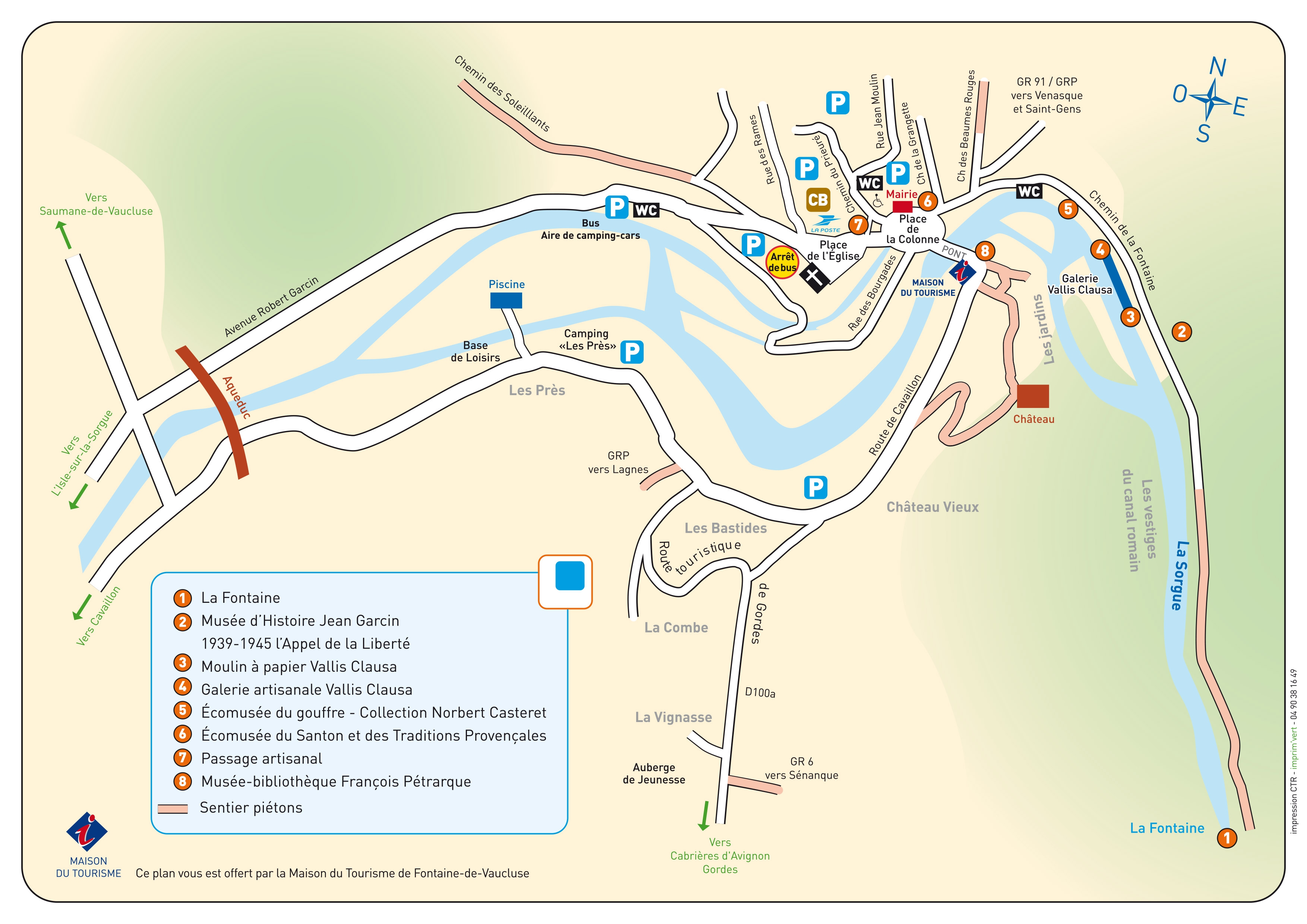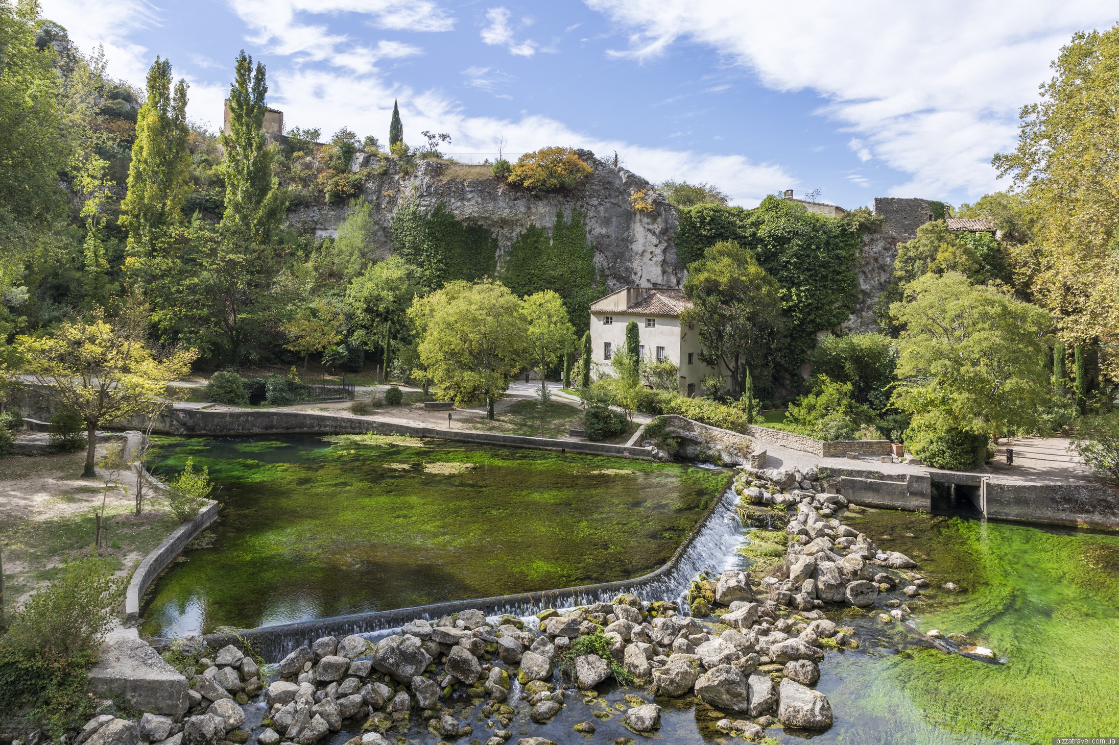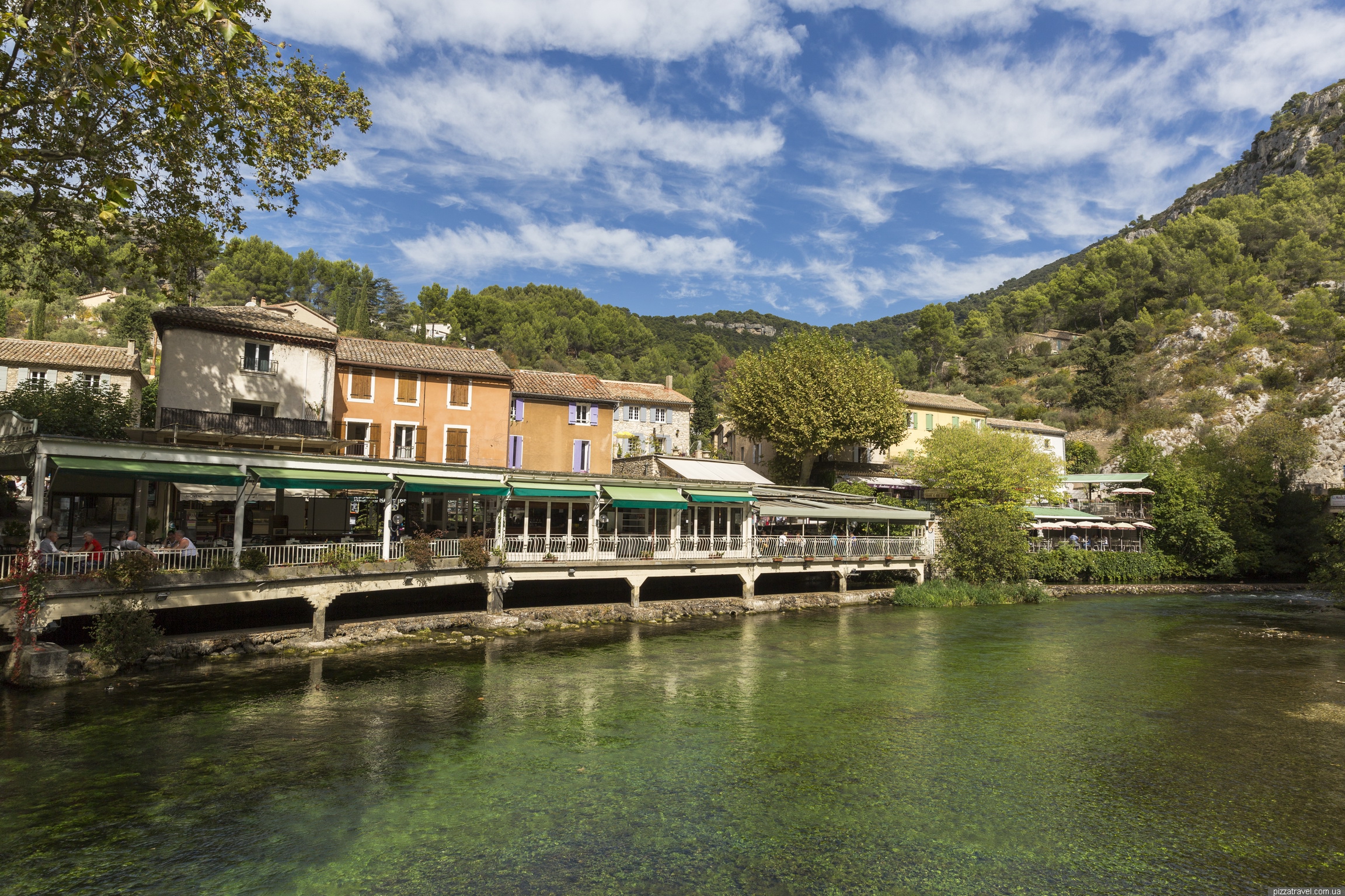 Як дістатися: Перед в'їздом до міста є велика платна парковка, але ми паркувалися тут N 43 55.332 E 5 07.595, це практично в центрі. На громадському транспорті добиратися досить непросто. Спочатку на автобусі 6 Avignon - L'Isle-sur-la-Sorgue Robert (сюди можна доїхати і на поїзді), потім пересадка на автобус 21 і їхати до Fontaine-de-Vaucluse Centre. Другий варіант: автобус 15 Avignon - Maubec Coustellet Place du, потім пересадка на автобус 21 і їхати до Fontaine-de-Vaucluse Centre. Розклад автобусів дивіться на сайті компанії TransVaucluse (інтерактивна карта).