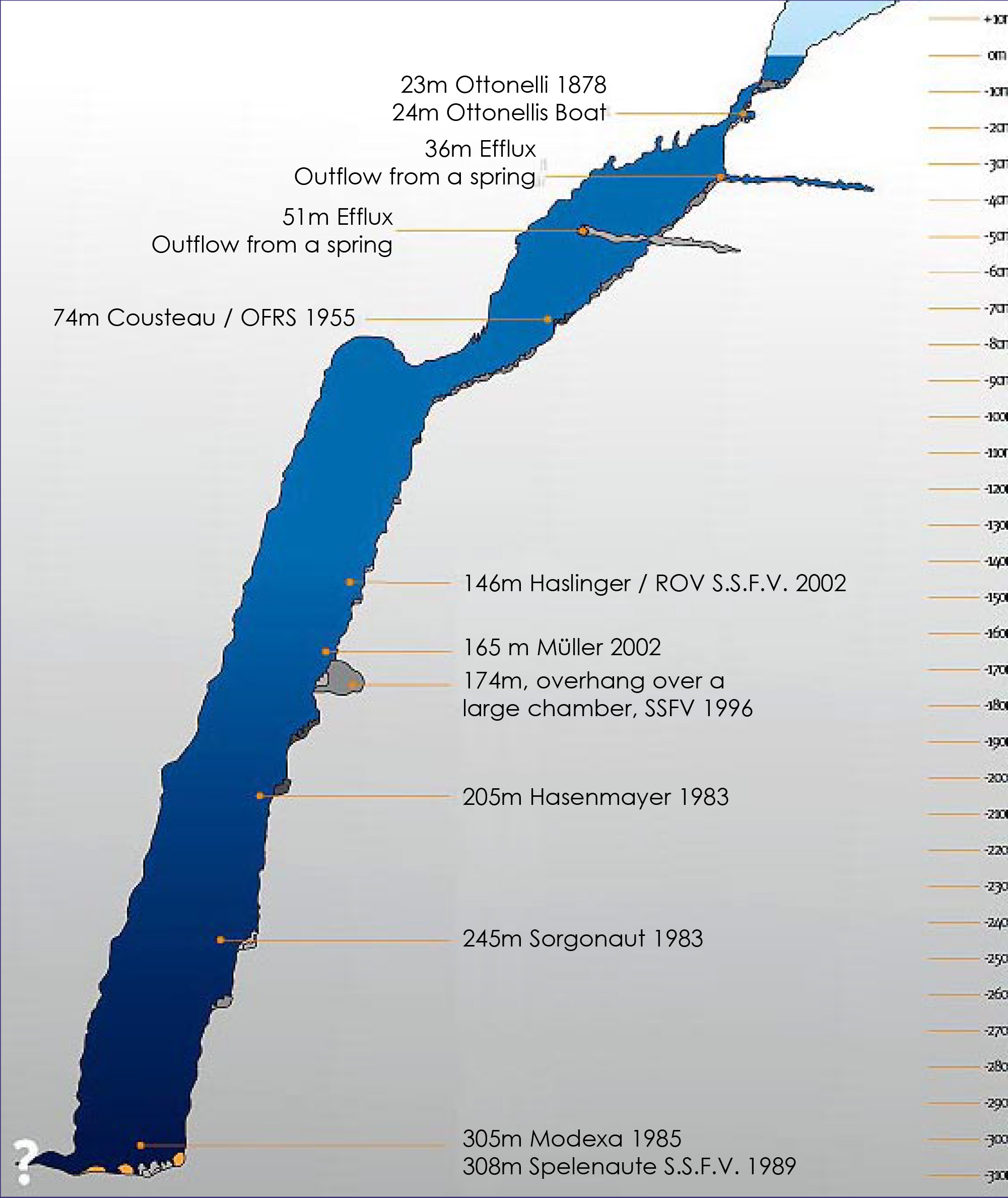 Причина, по якій Воклюз вивергає воду раз на рік, була незрозумілою. Знайти джерело можна було тільки через занурення. І такі занурення були здійснені десь 20 разів. Перший раз в 1878 році на 23 метри - безрезультатно.