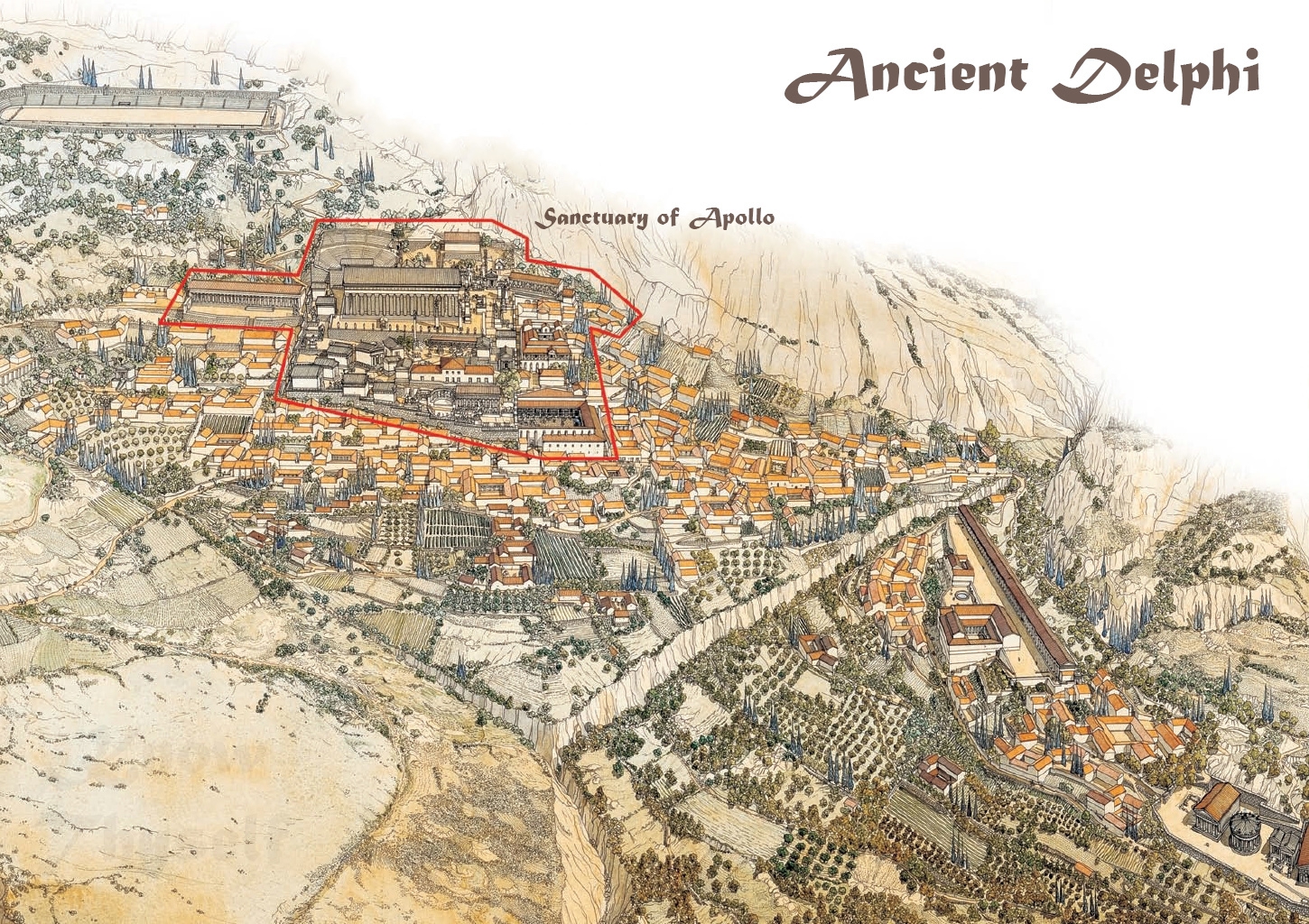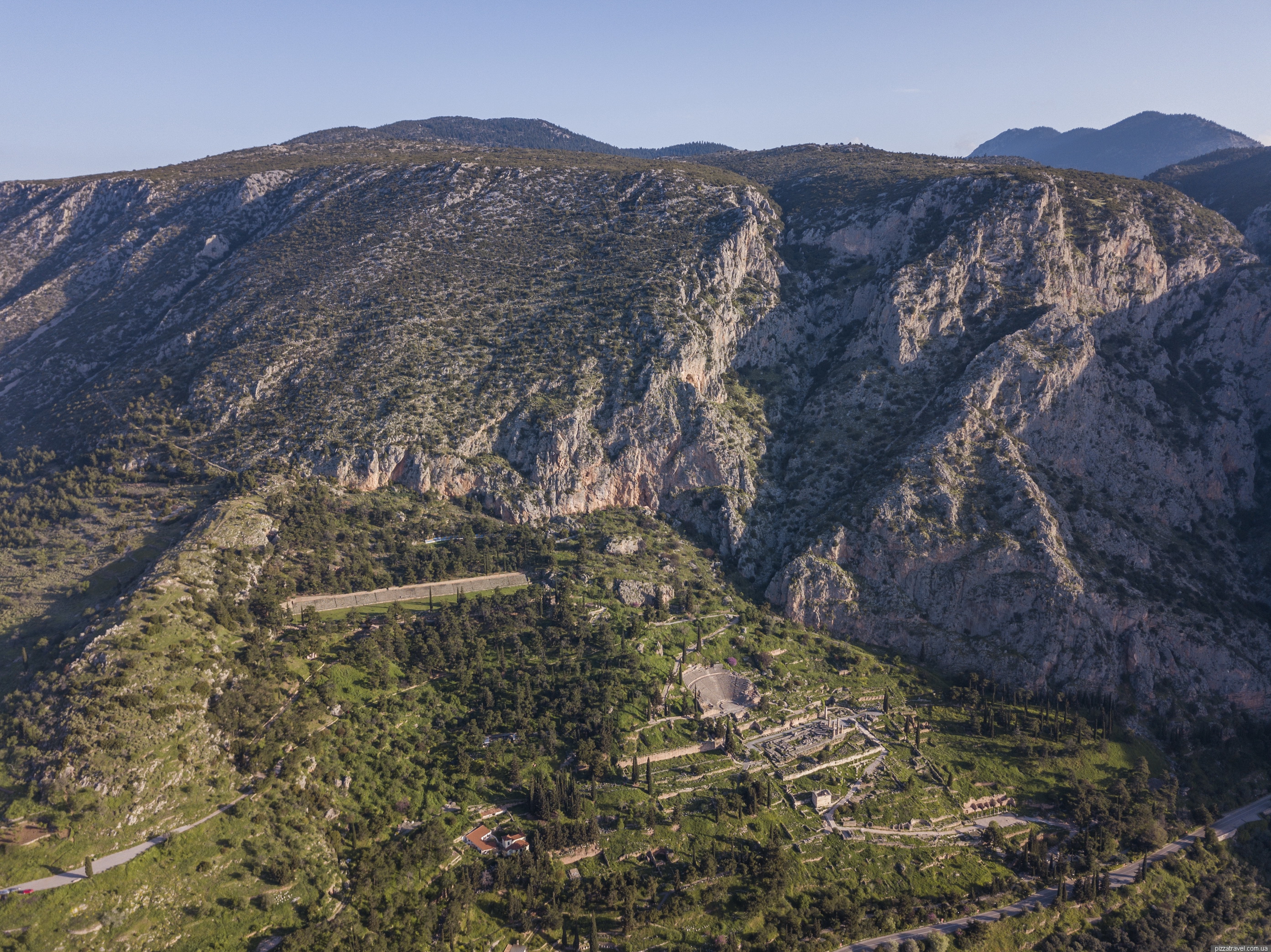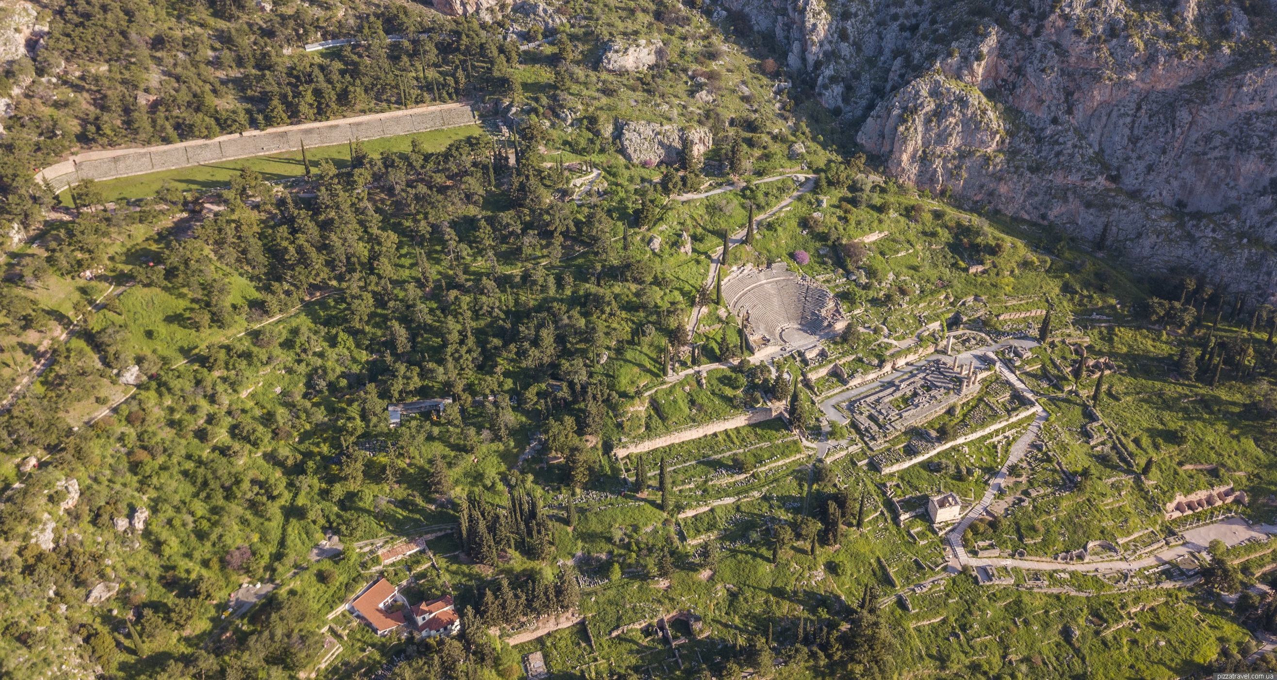 Згори видно, що найбільш збереглися театр і величезний стадіон. У місті проходили Піфійські гри - другі за значимістю після Олімпійських.