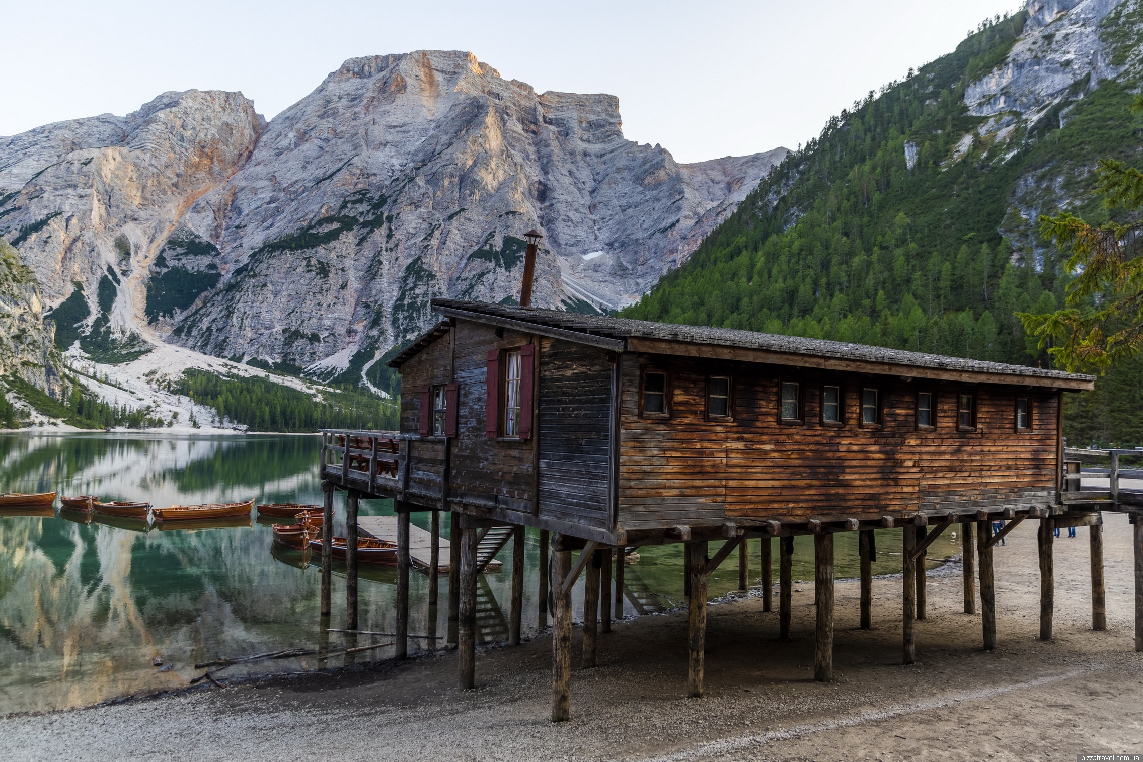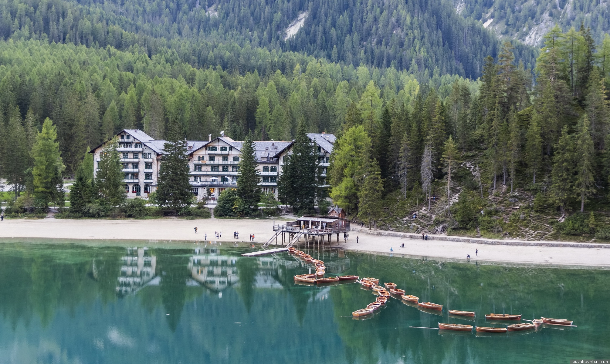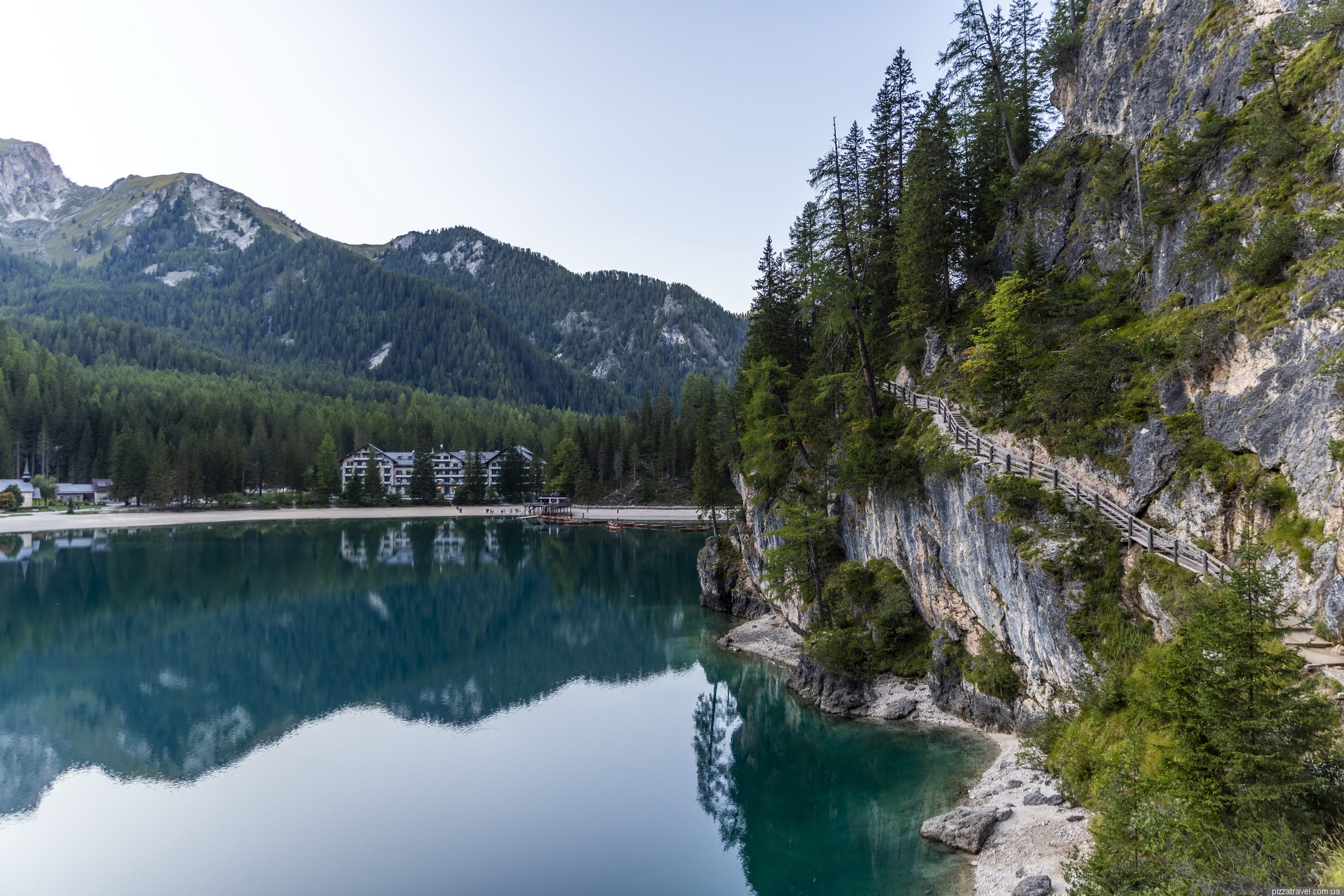 Так як ми приїхали ввечері, то заночували в готелі біля озера Hotel Lago di Braies (booking.com). Це пафосний готель, в якому з початку 20-го століття відпочивало вище аристократичне суспільство. Зокрема, тут був з сім'єю спадкоємець престолу Австро-Угорщини Франц Фердинанд, чиє вбивство привело до початку Першої світової війни.
