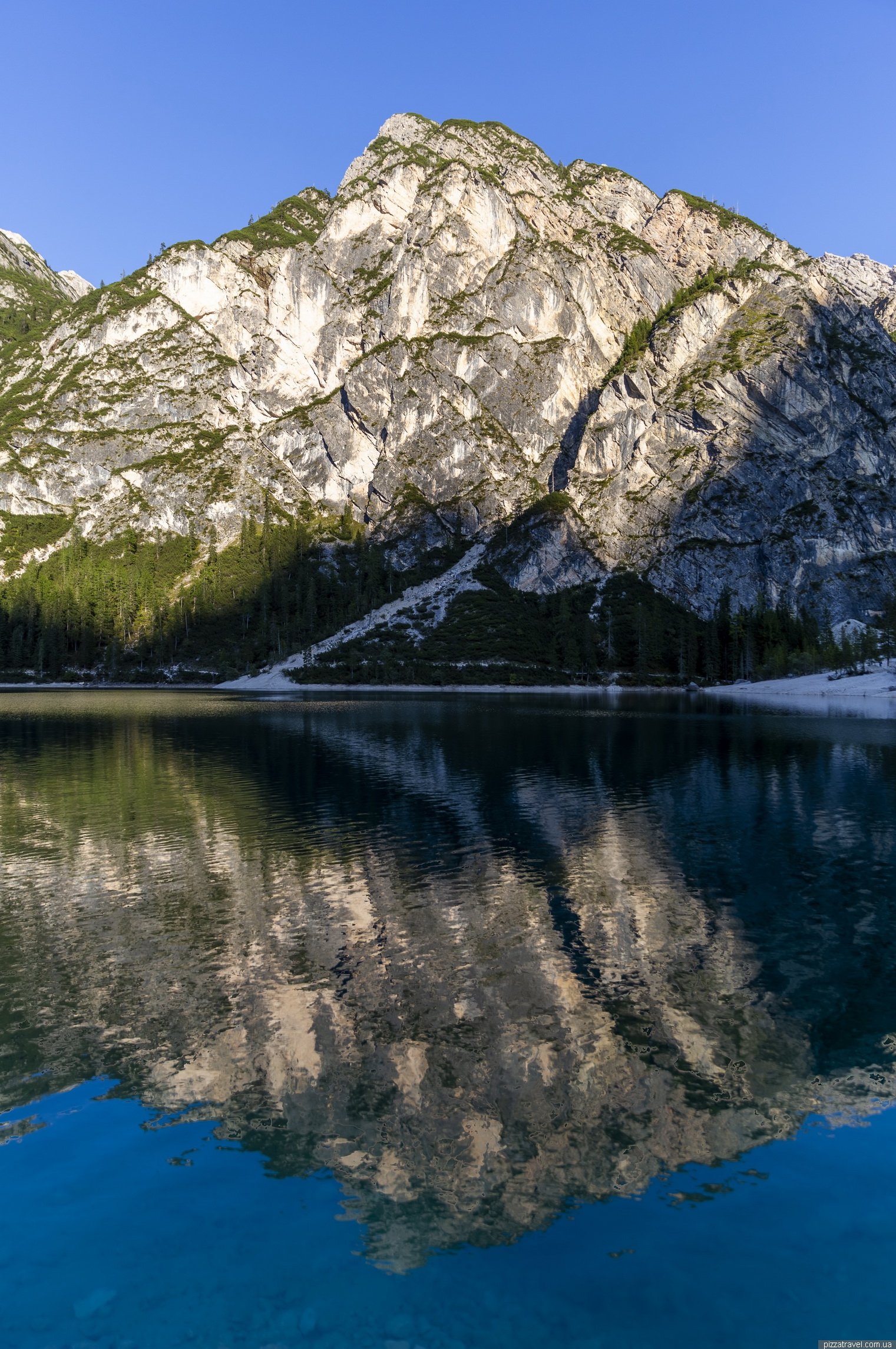 Але саму красу зазвичай можна застати вранці, коли в воді відображаються верхівки гір, освітлені вранішнім сонцем. Ми вийшли ще до світанку але, як виявилося, були далеко не одні: на березі зібралося вже близько 50 осіб.