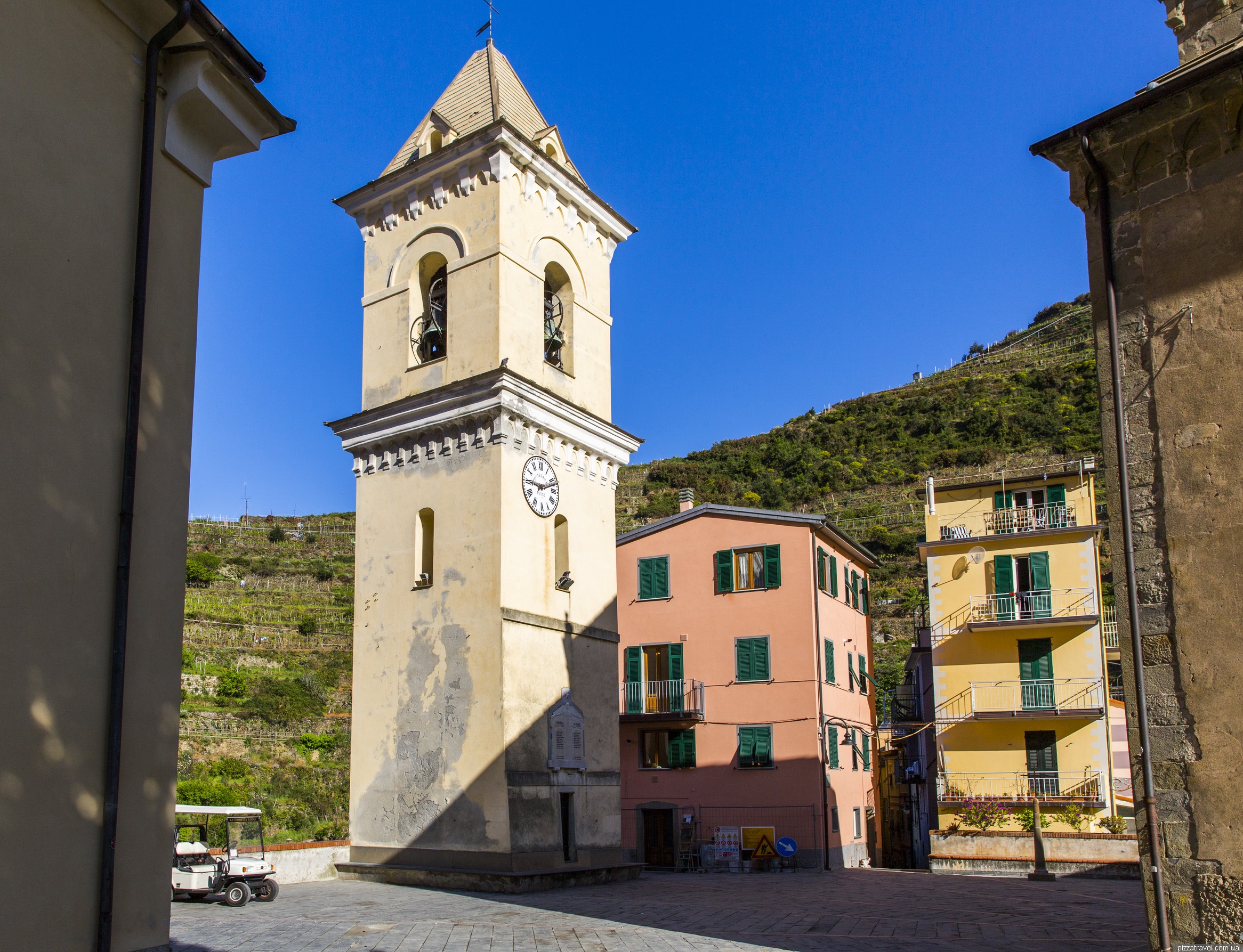 Вибираючи місце для ночівлі, ми вирішили зупинитися, якраз в Манаролі, в апартаментах Casa Di Mezzo (booking.com). Вони знаходяться відразу за дзвіницею головною історичної пам'ятки міста - Церкви святого Лаврентія (Chiesa di San Lorenzo), закладеної в 1338 році. Завдяки цій церкві Манарола є найстарішим містечком в Чінкве Терре.