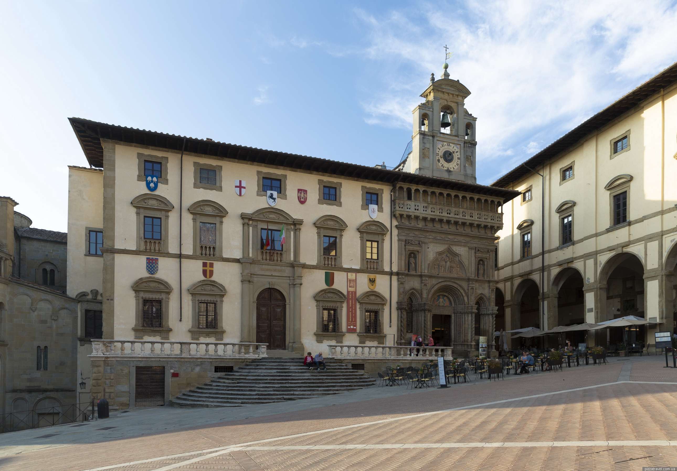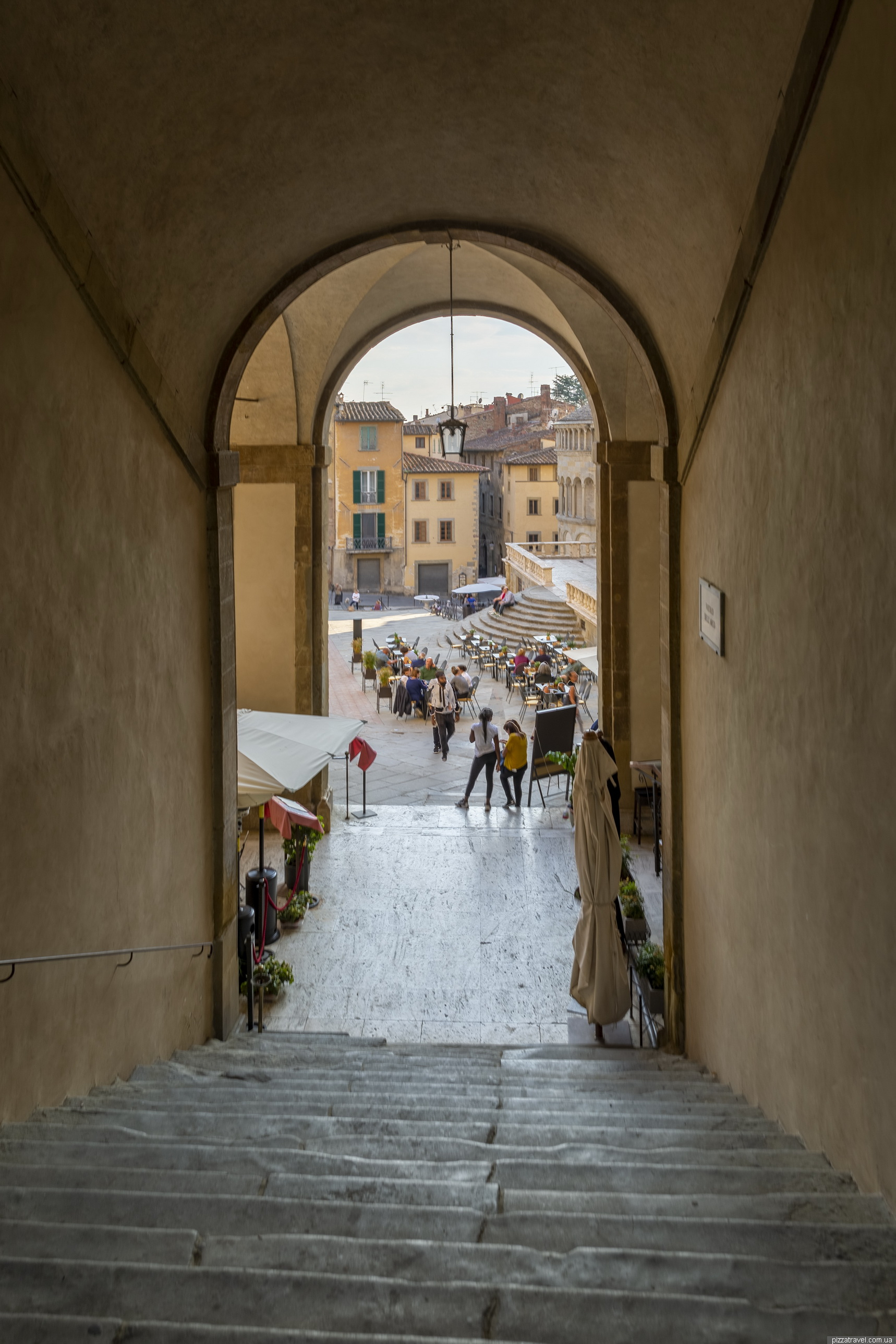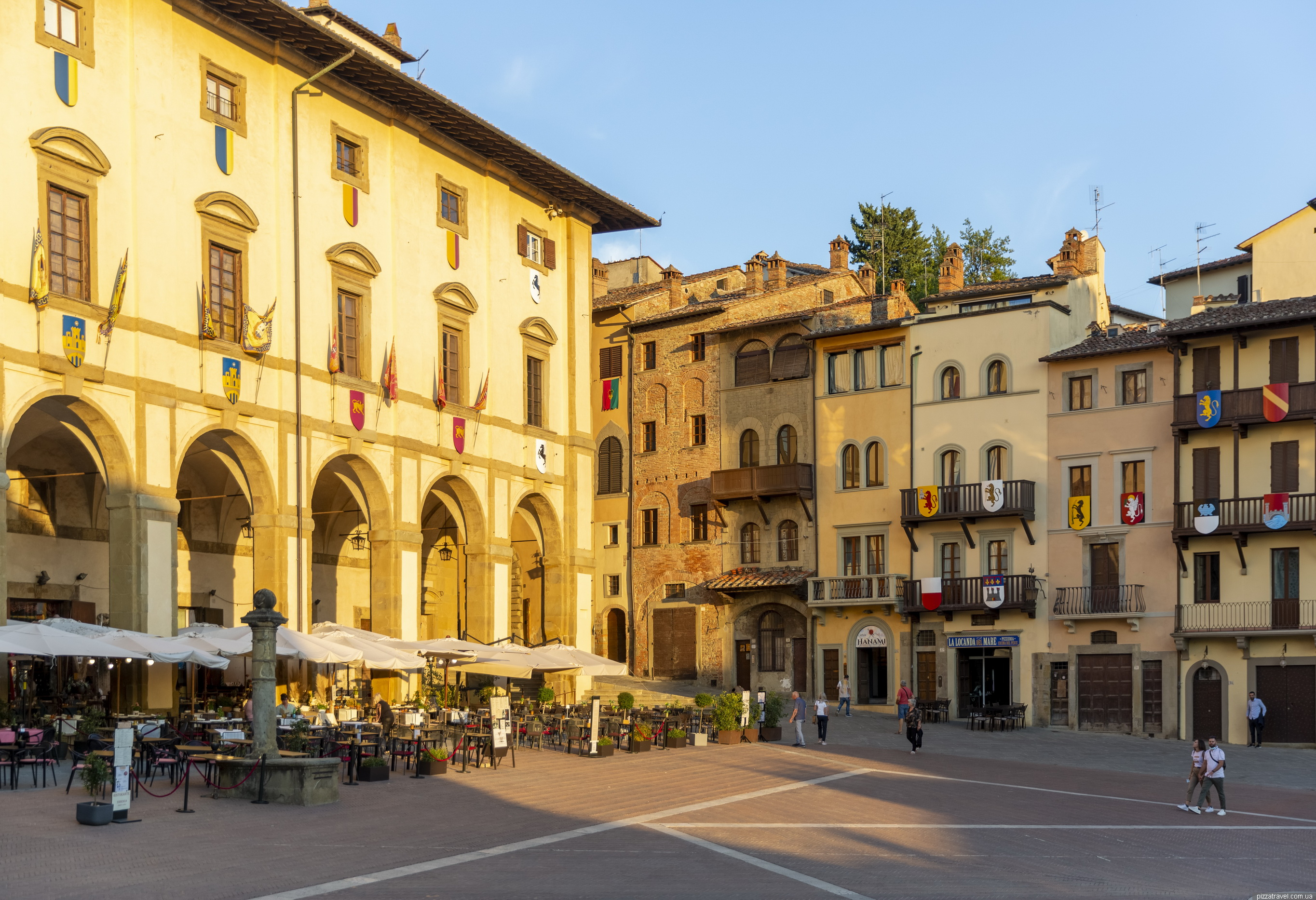 До П'яцца Гранде, яка розташована одразу за парком, потрібно трохи спуститися вниз через арку в Лоджії Вазарі, побудовану Джорджо Вазарі для Козімо I Медічі.