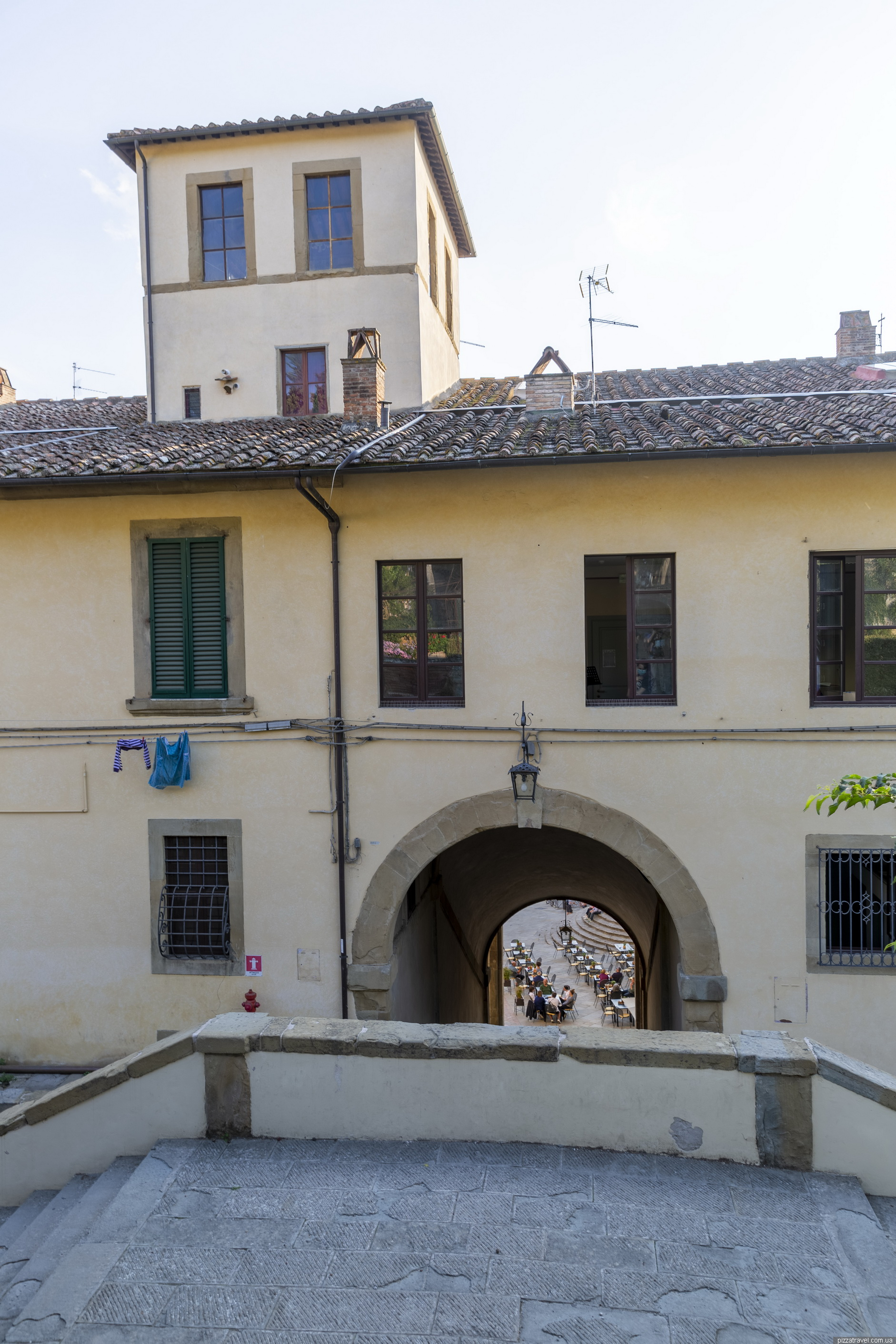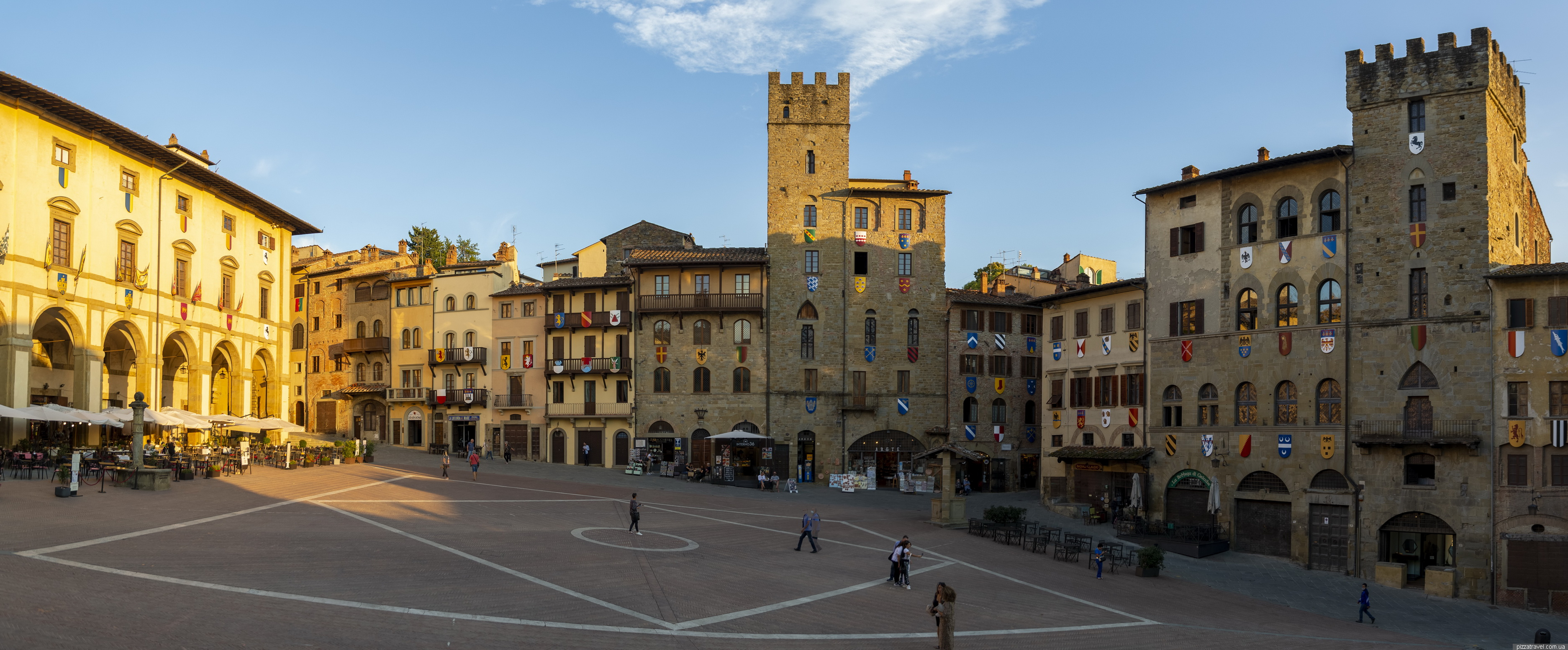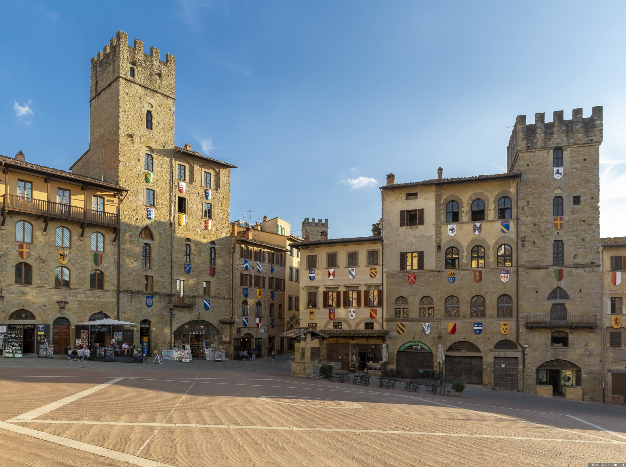 До П'яцца Гранде, яка розташована одразу за парком, потрібно трохи спуститися вниз через арку в Лоджії Вазарі, побудовану Джорджо Вазарі для Козімо I Медічі.