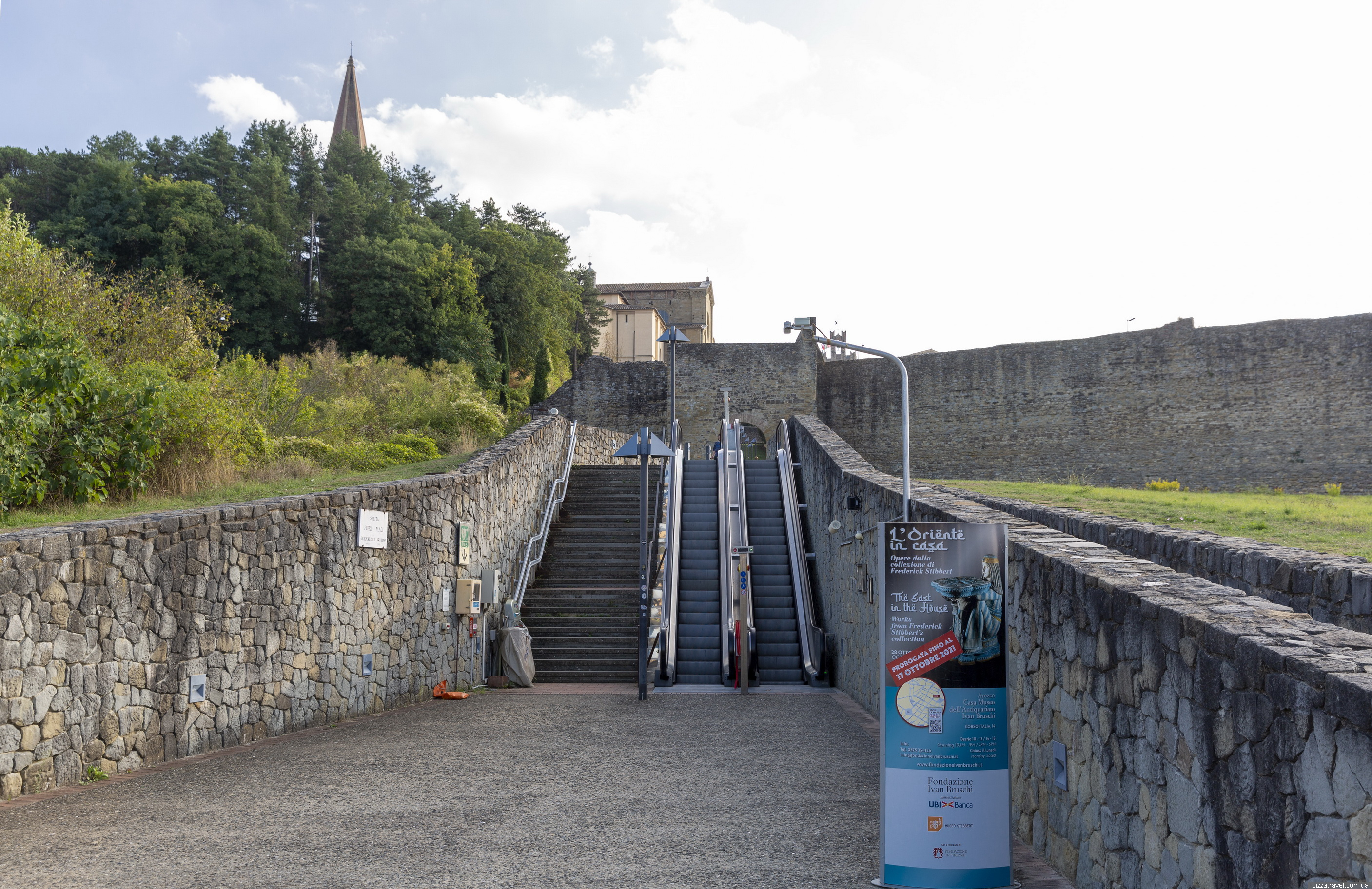 Вокзал Arezzo знаходиться практично у старому місті, але ми приїхали автомобілем. У пішій близькості від центру є величезне паркування (43.469494, 11.884316). Враховуючи, що старе місто знаходиться на пагорбі, ми були раді побачити серію ескалаторів.