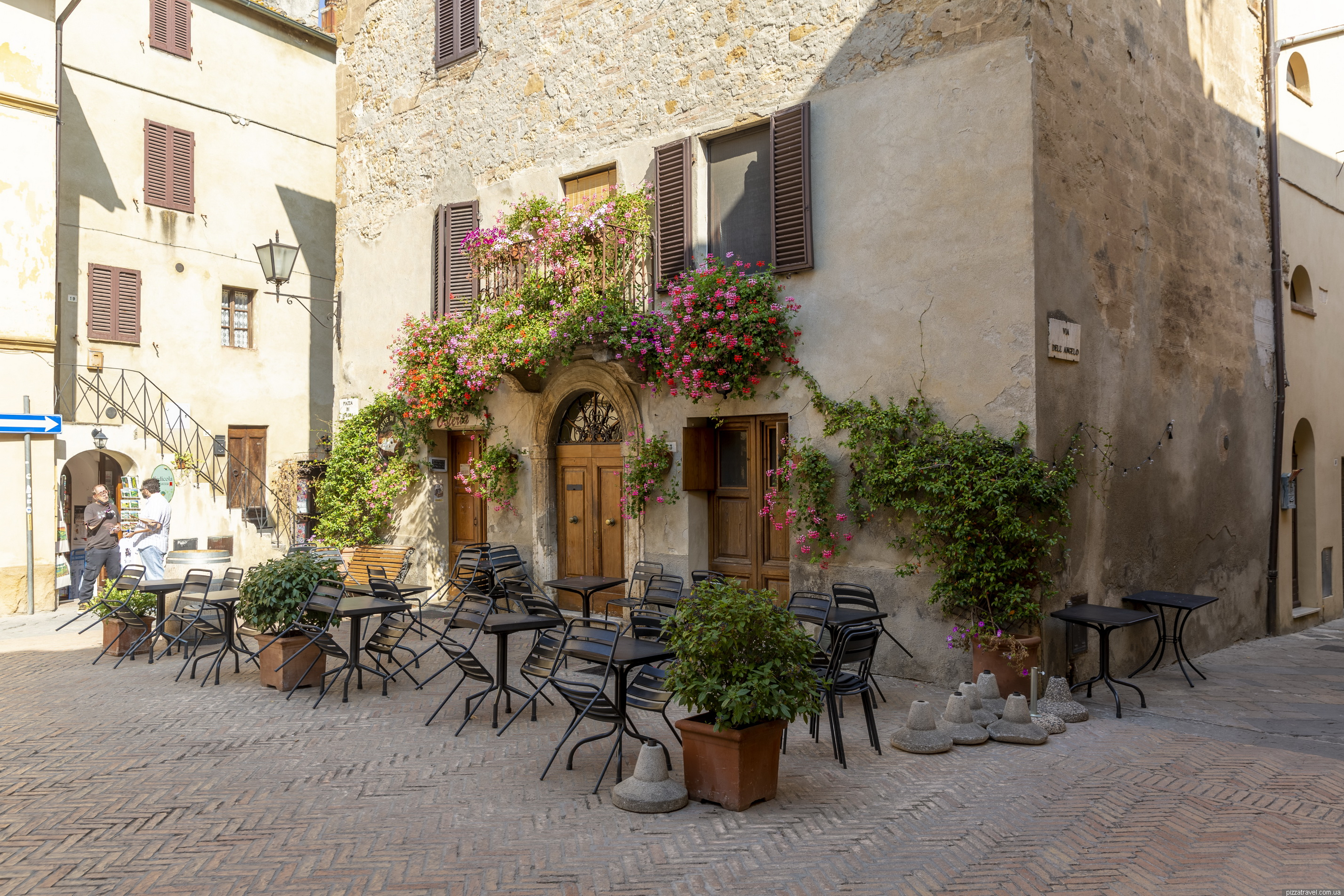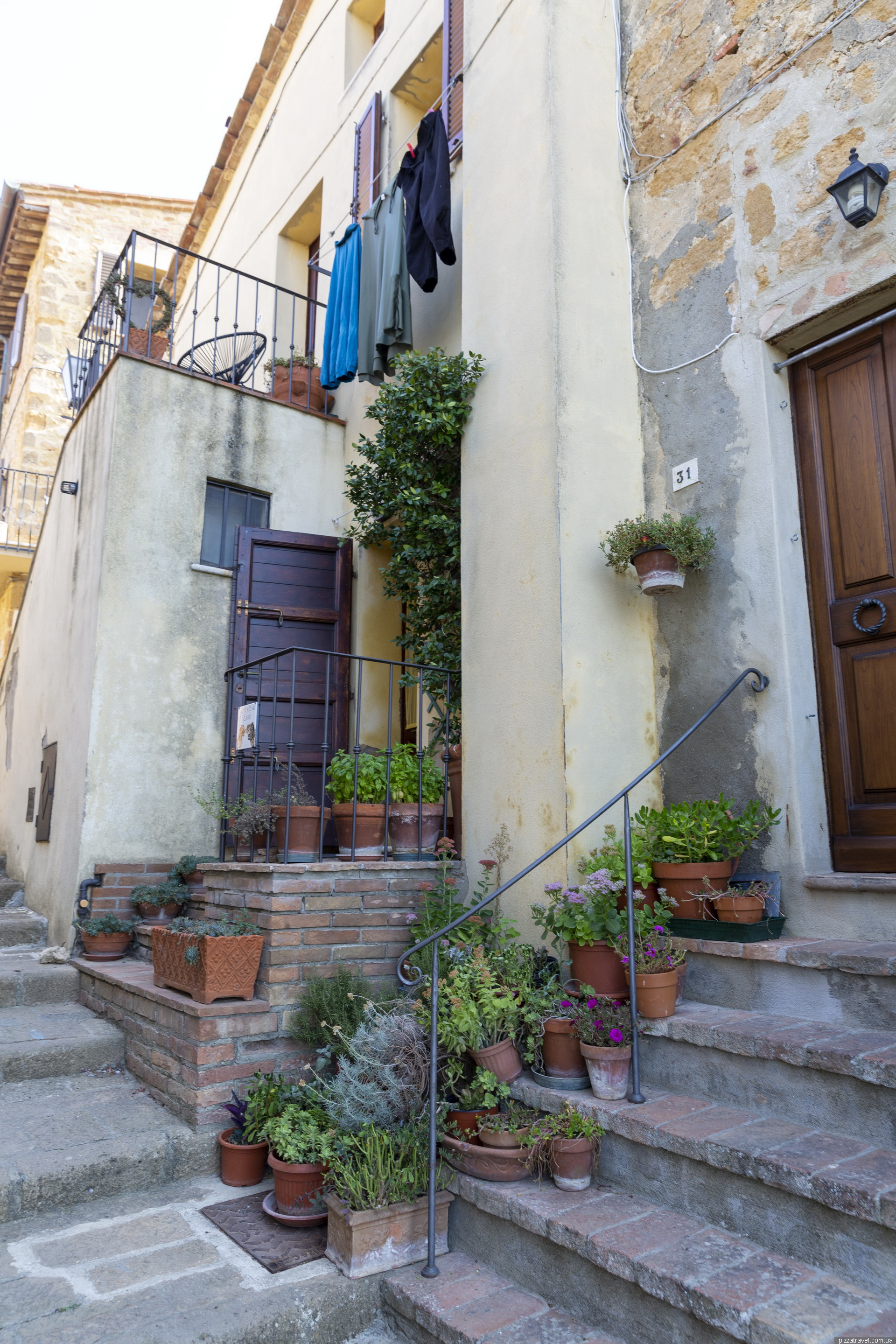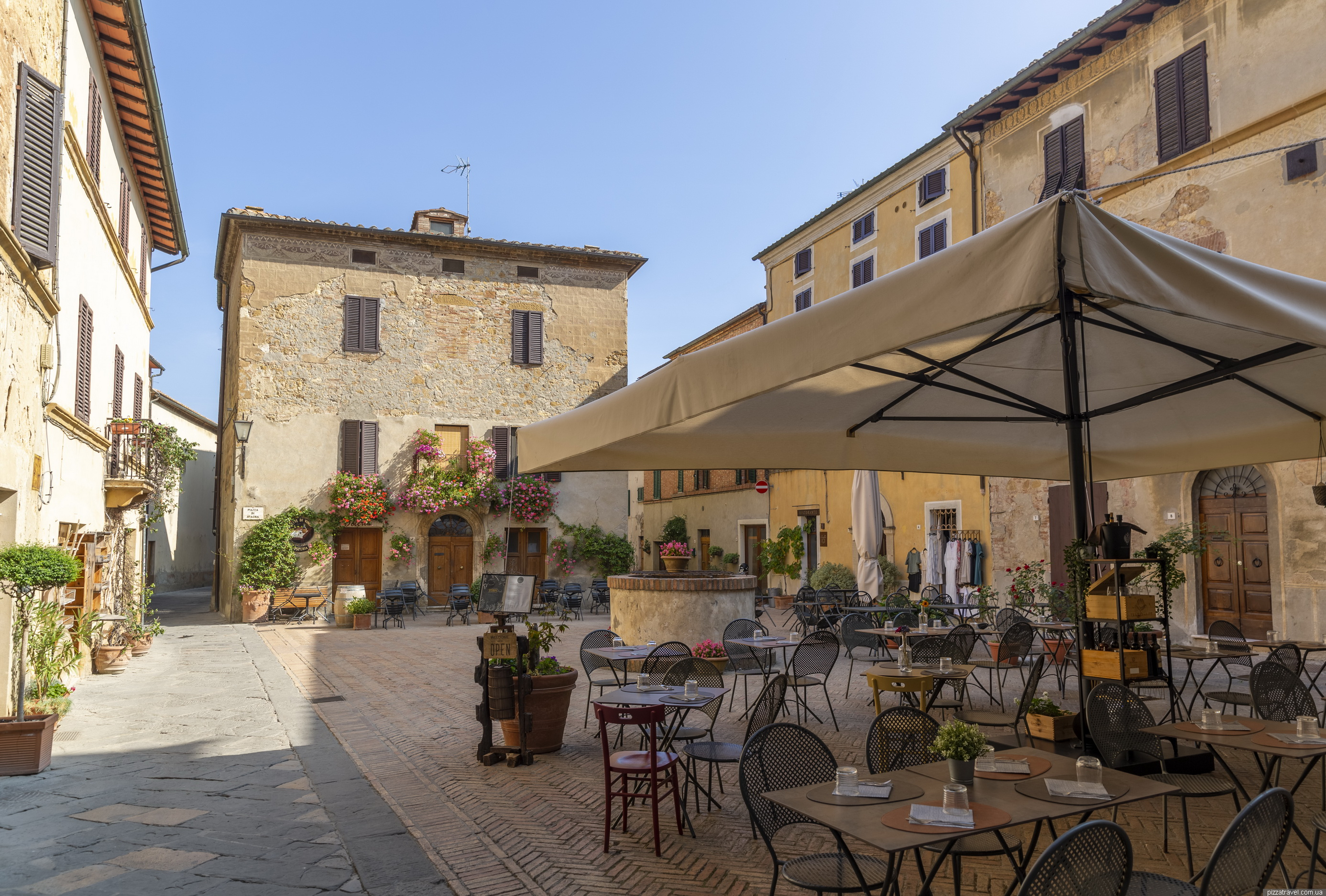 У Тоскані жити краще не в готелі, а в агрітуризмо. Це щось на зразок невеликого сільського готелю, що стоїть посеред поля. Їх повно навколо П'єнци та й по всій Тоскані. Багато з них неймовірно мальовничі, особливо в оточенні кипарисів, туристи на автомобілях зупиняються, щоб зробити фотографії, які потім стають вірусними. Ось це агрітуризмо знаходиться прямо біля П'єнци (43.083764, 11.668176).