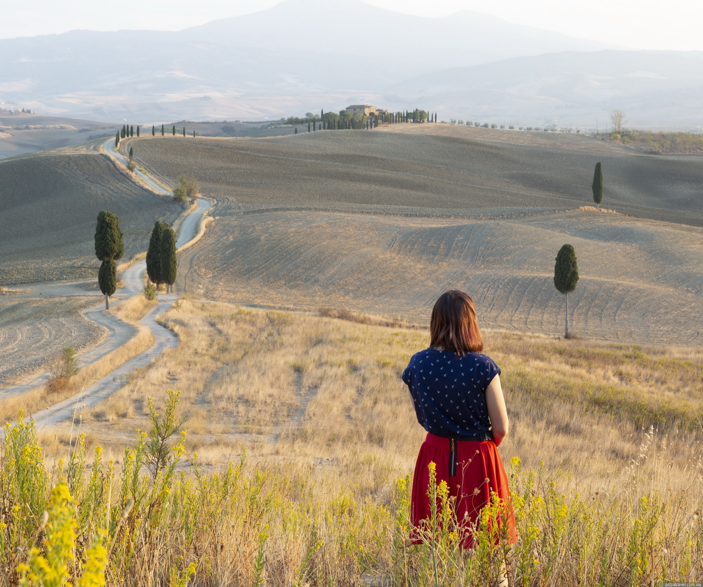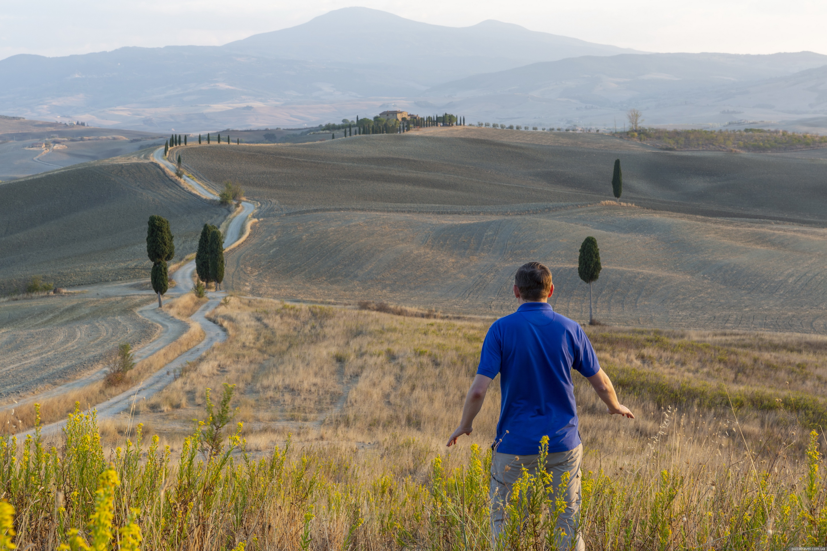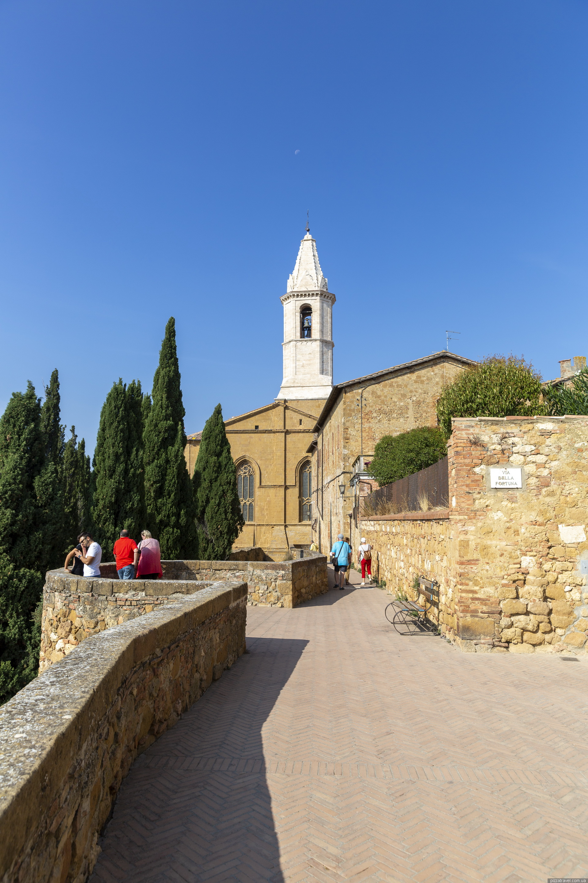 У пішій доступності від П'єнци є одне цікаве місце, називається Campi Elisi (43.075023, 11.668087), парковка тут 43.077458, 11.671416. Крім гарного виду на кипариси та долину Вал-Д'Орча, тут можна зробити таку фотографію.