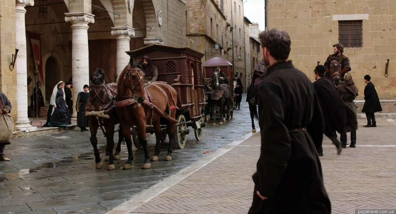 У П'єнці знімався серіал від Нетфлікс про сім'ю Медічі, і на даний момент це найкраще, що можна подивитися про Тоскану. У палаццо Пікколоміні був будинок сімейства Медічі. Насправді вони жили у Флоренції, але зараз там все дуже змінилося, тому знімали у невеликих містечках Тоскани.