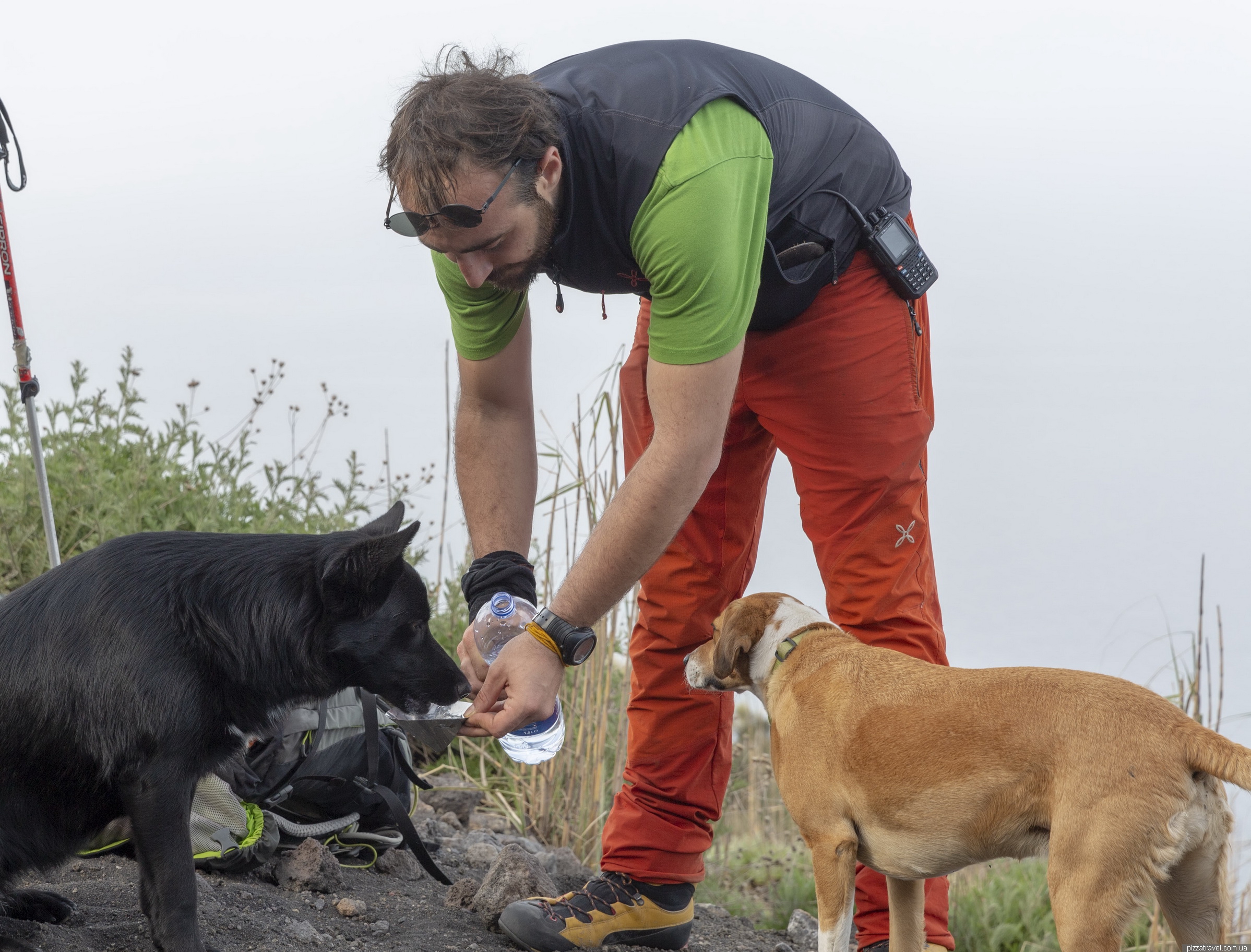 За нами ув'язалися кілька собачок і йшли до самої вершини, гід поїв їх під час зупинок.
