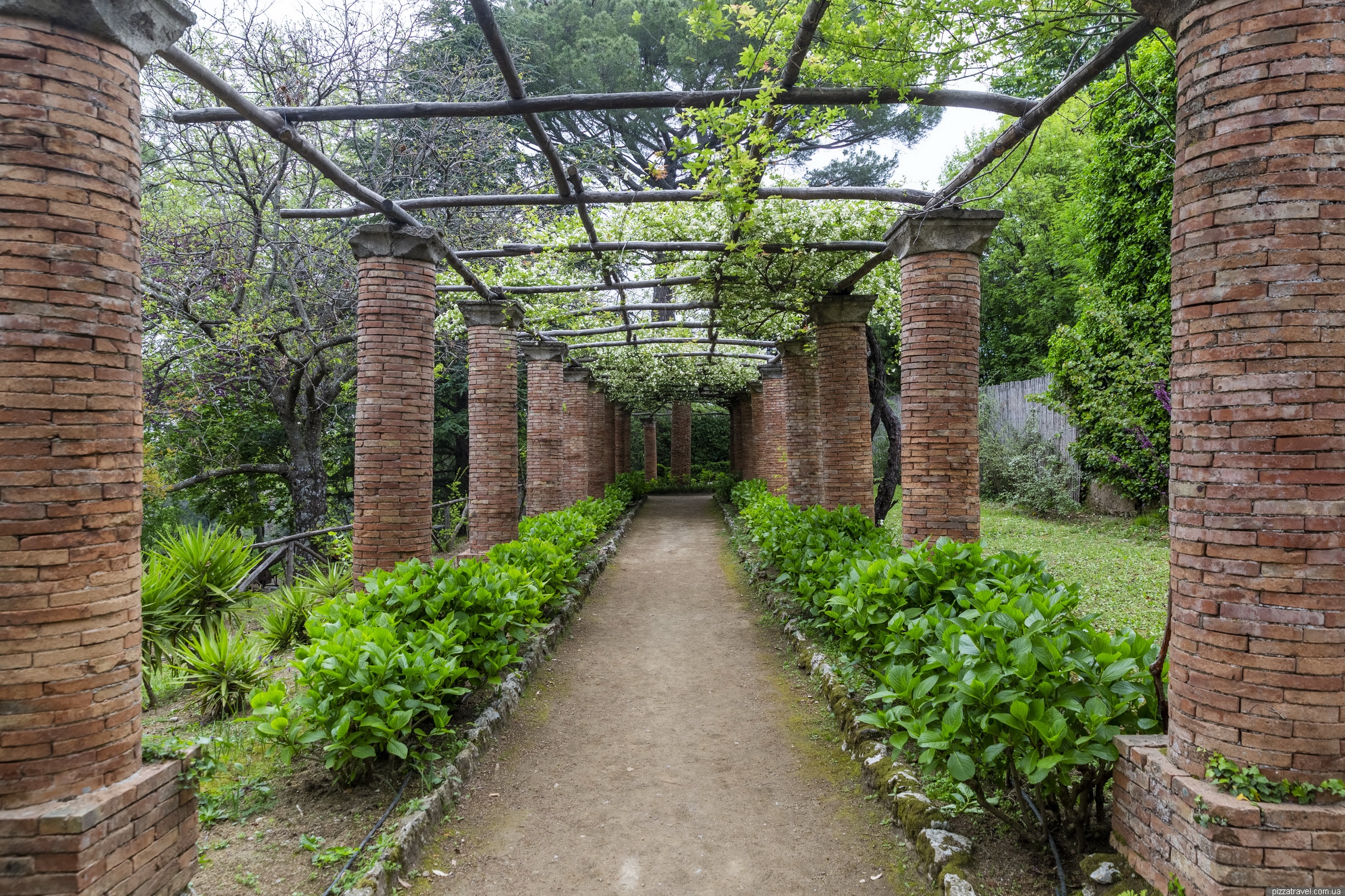 Через всі сади проходить центральна алея, яка закінчується оглядовим майданчиком Тераса нескінченності (Terrazzo dell'lnfinito).