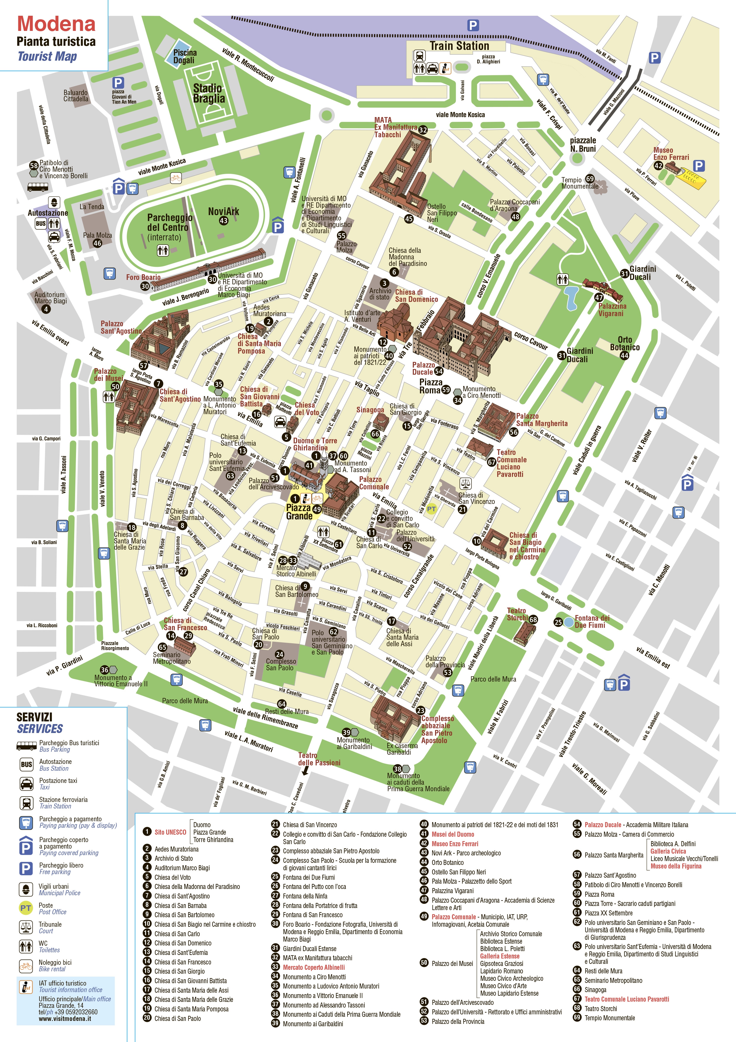 Як дістатися: Модена знаходиться в центрі Італії, є залізничний і автовокзали. Через Модену також проходить головний автобан Італії A1. Найближчий аеропорт у Болоньї (40 км).