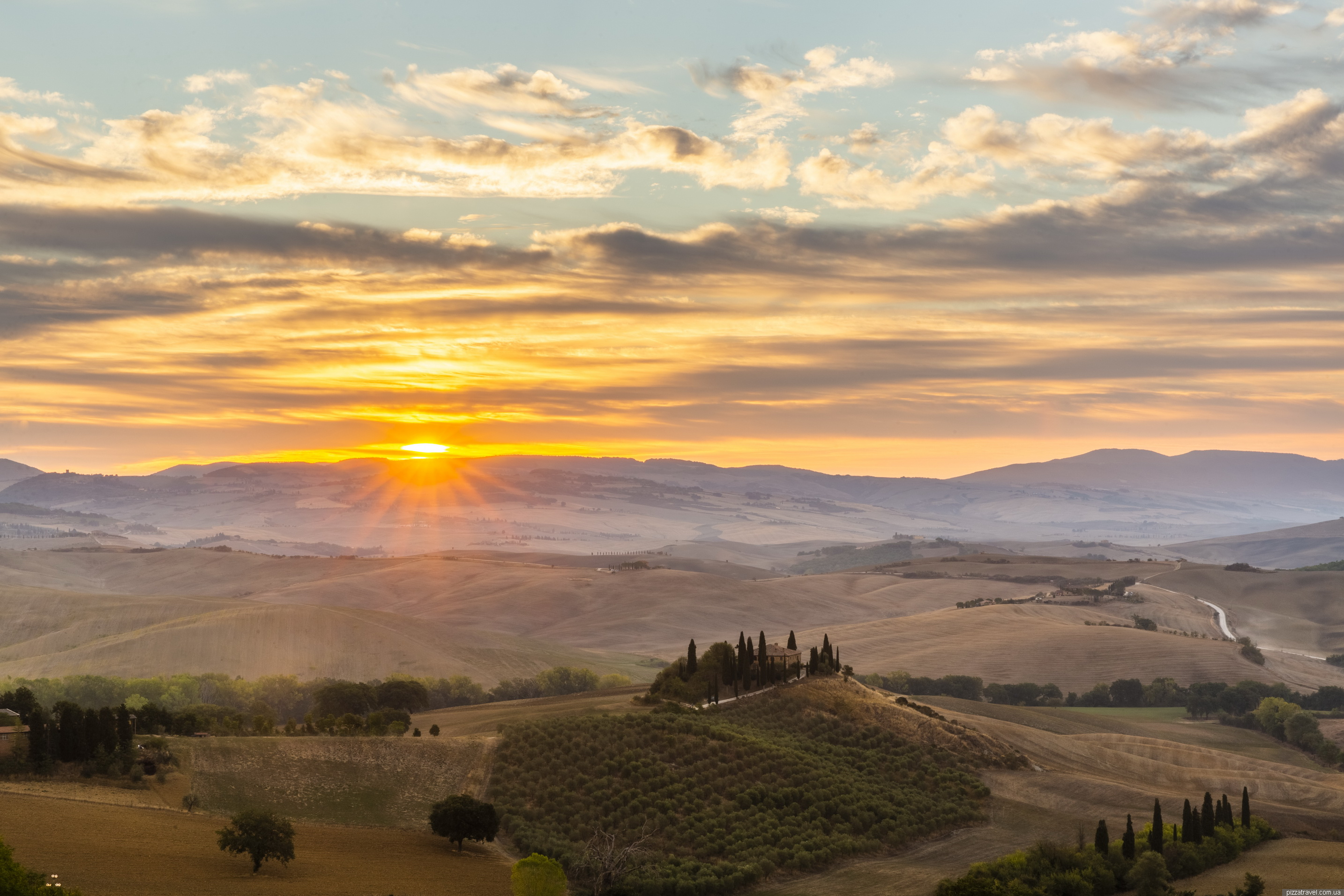 Один із відомих оглядових майданчиків на долину Валь д’Орча. Приходити сюди можна в будь-який час. Парковка тут 43.064875, 11.611200, далі потрібно трохи пройти схилом, між деревами, приблизно сюди 43.063921, 11.610503.