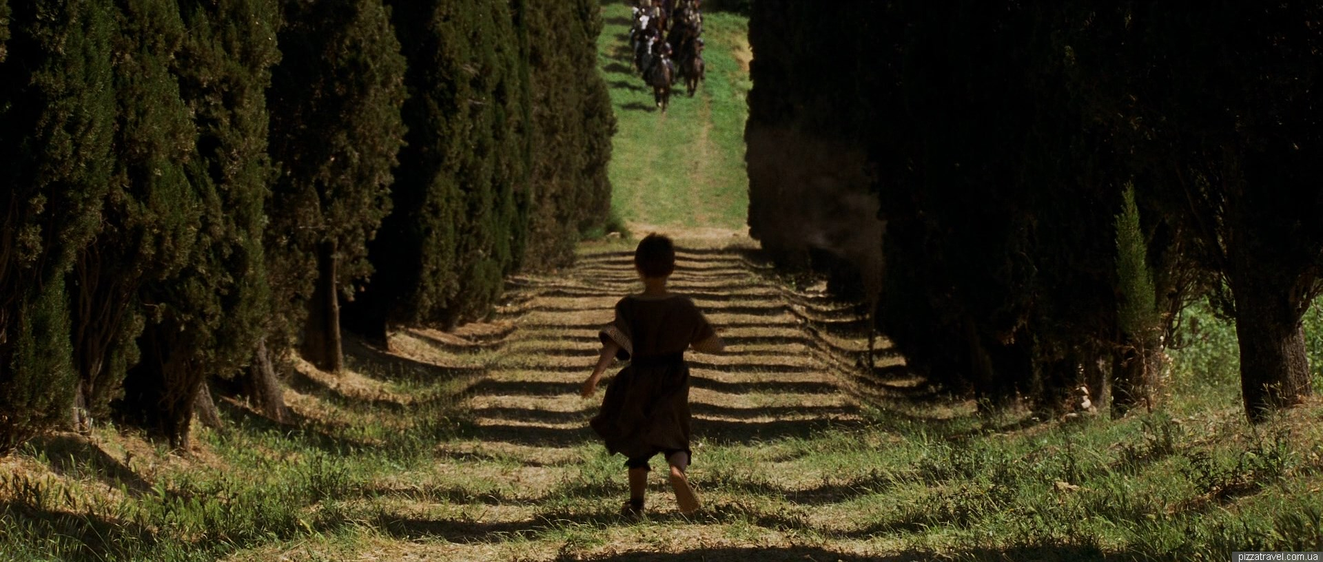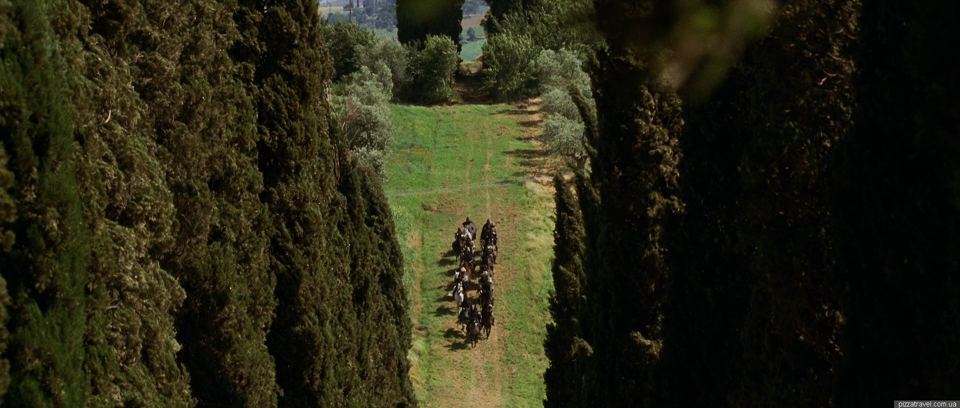 Через дорогу від паркування є ще одне цікаве місце (43.065515, 11.612022). Подивитися на нього можна тільки через паркан, але вид гарний. Тут знімали будинок Максимуса у фільмі Гладіатор (2000).