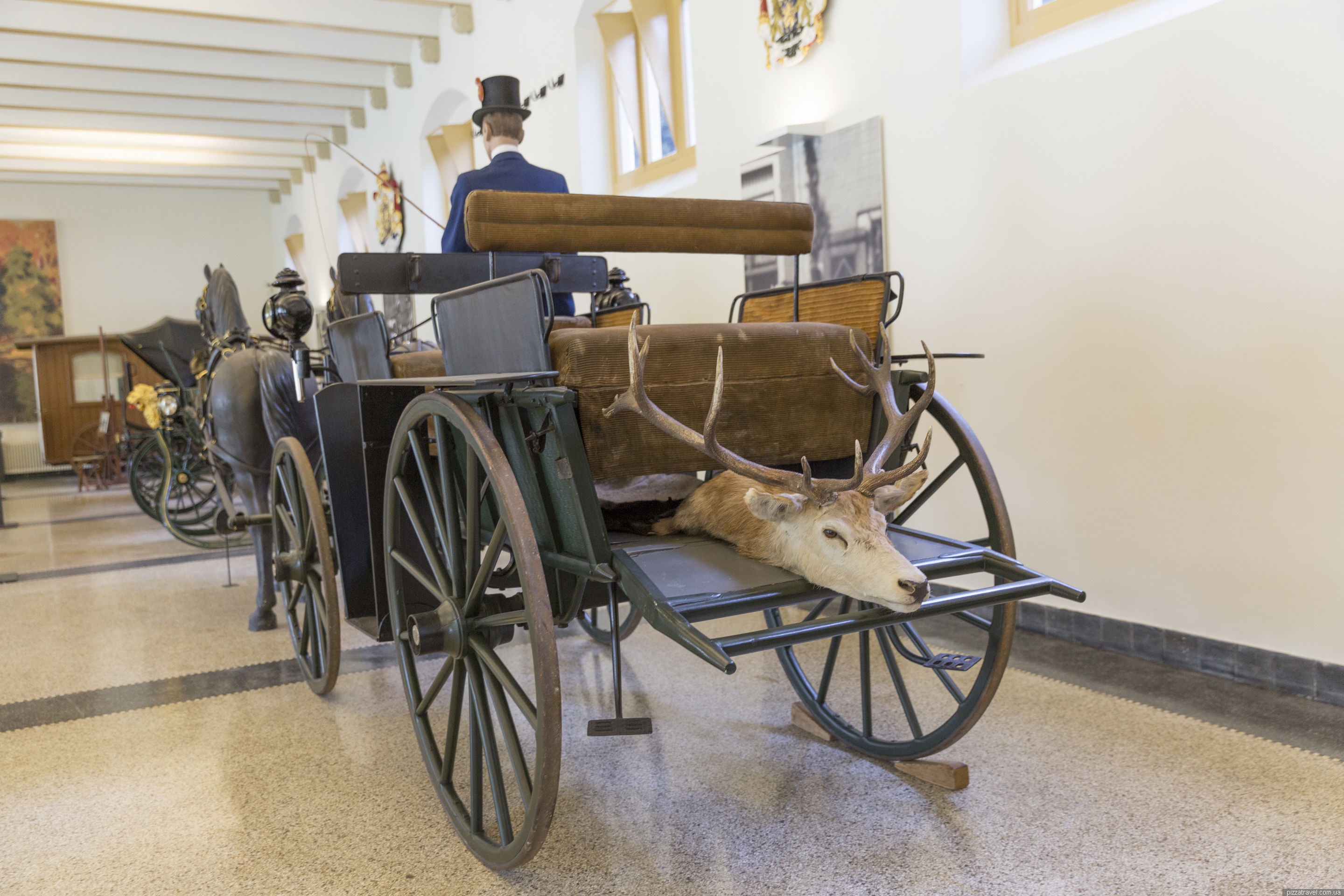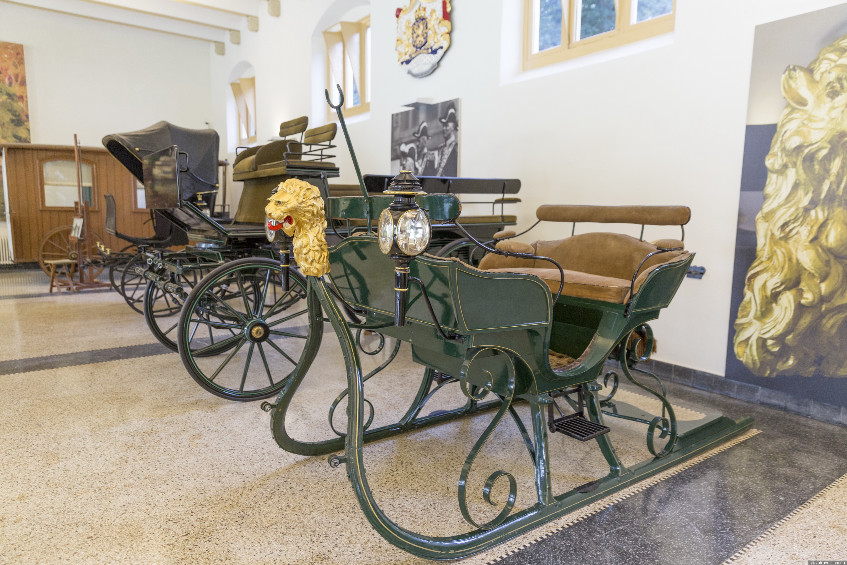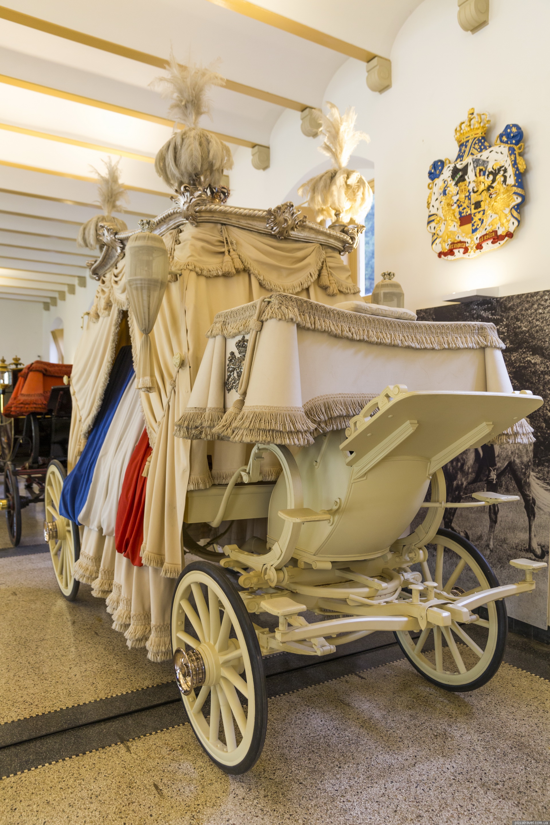На початку 20 століття автомобілі витіснили коней і стайні перетворили в гараж. Зараз в них виставлені всі історичні карети і автомобілі королівської сім'ї.